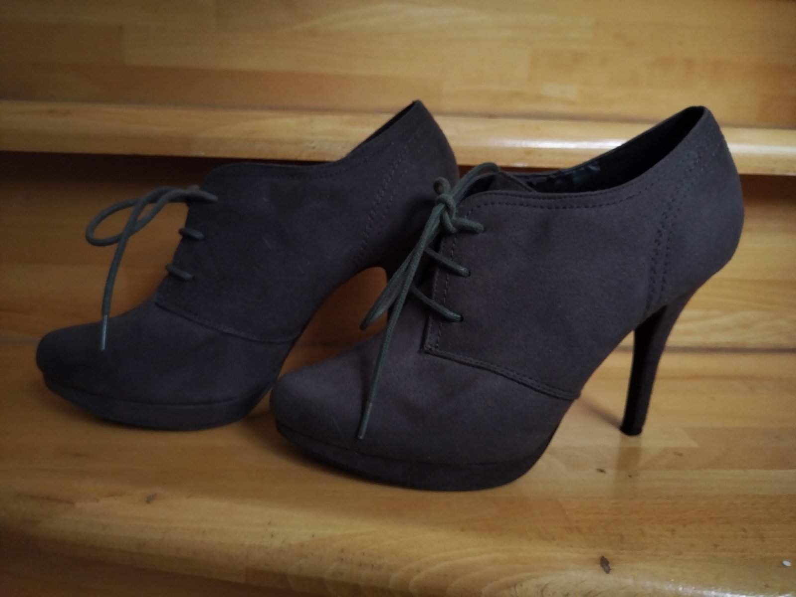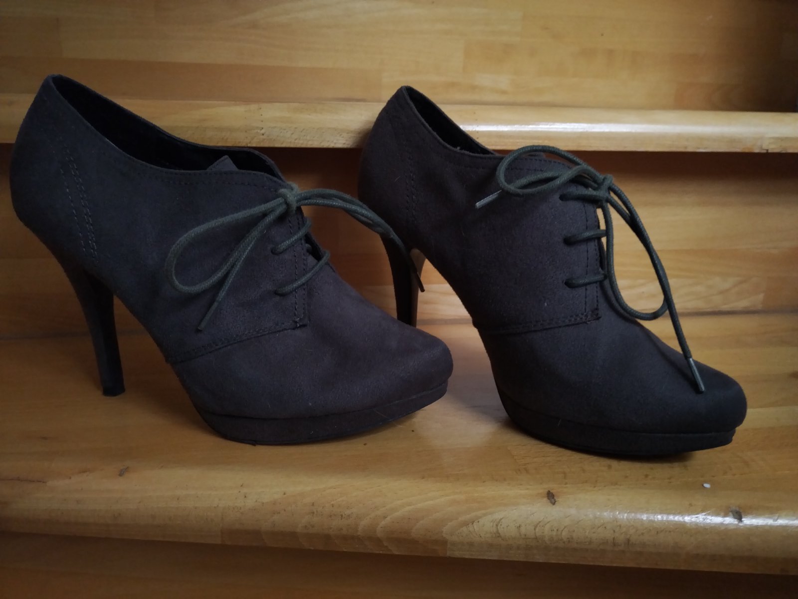Malo nosene, dlho boli odlozene v krabici. Opatok 10.5 cm. Velkost 39, dlzka vnutornej vlozky cca 25 cm.