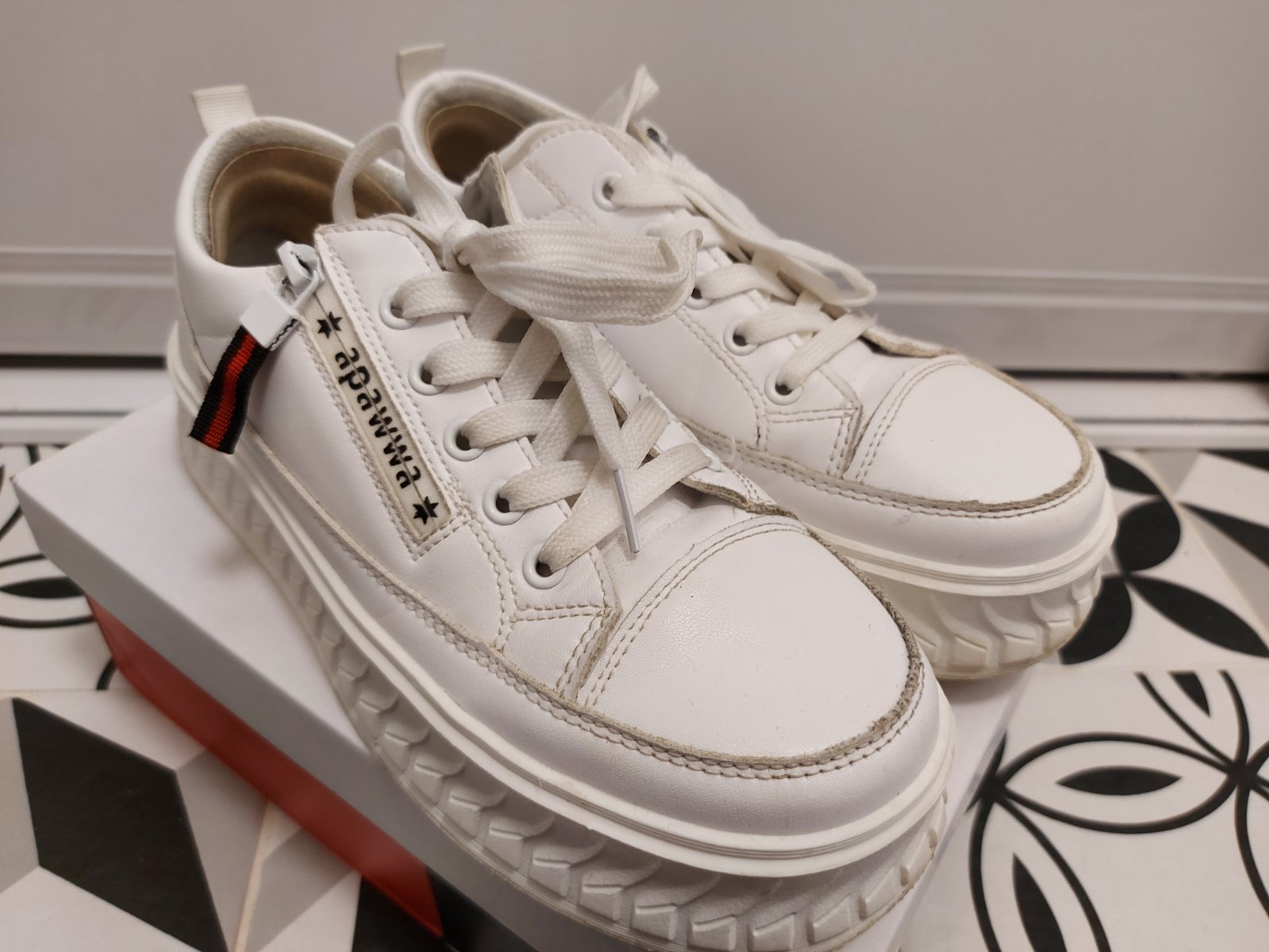 Kožené tenisky s hrubšou podrážkou / platformou, na šnúrky, dajú sa obúvať aj bez šnurovania, majú zips.