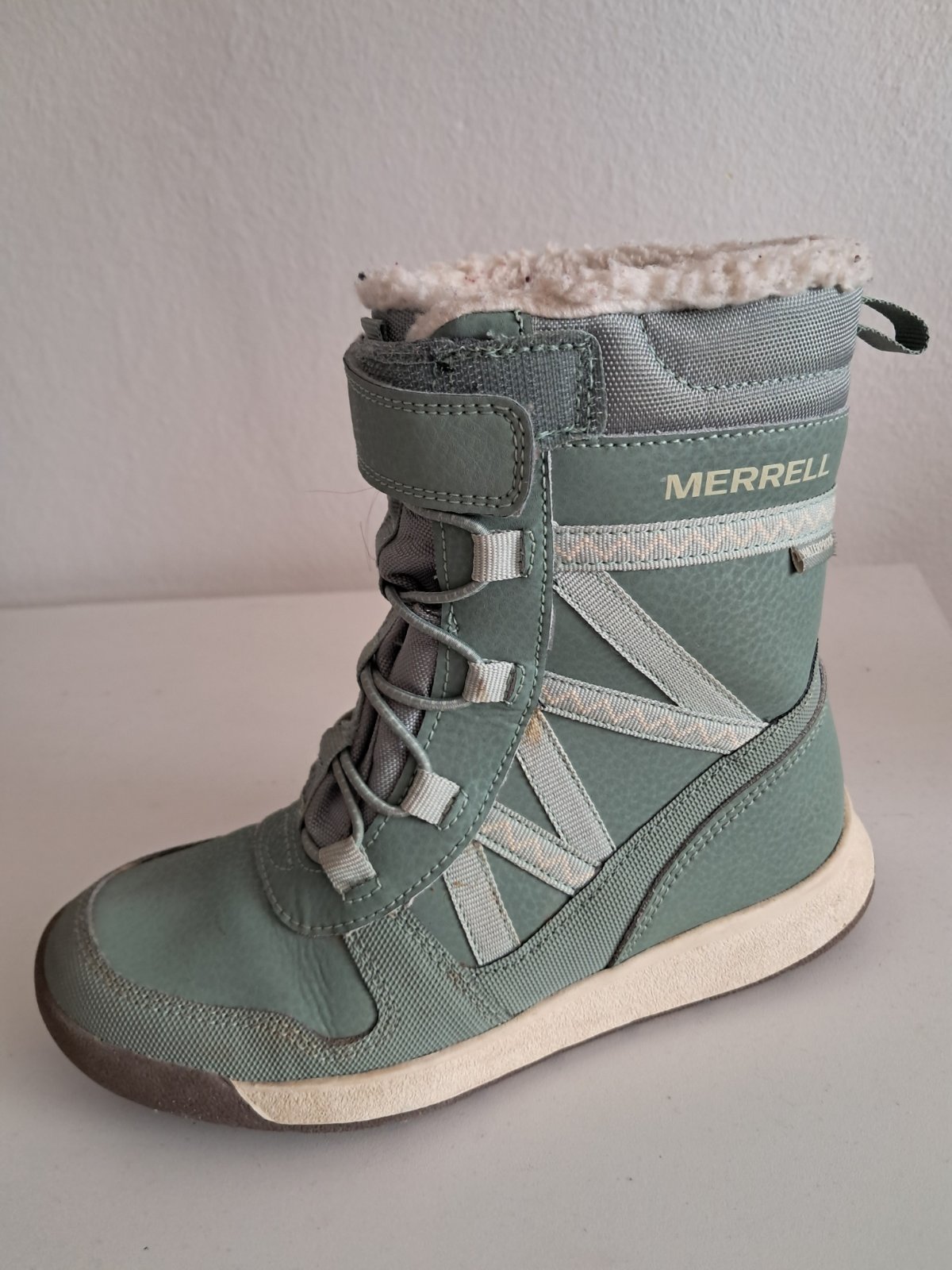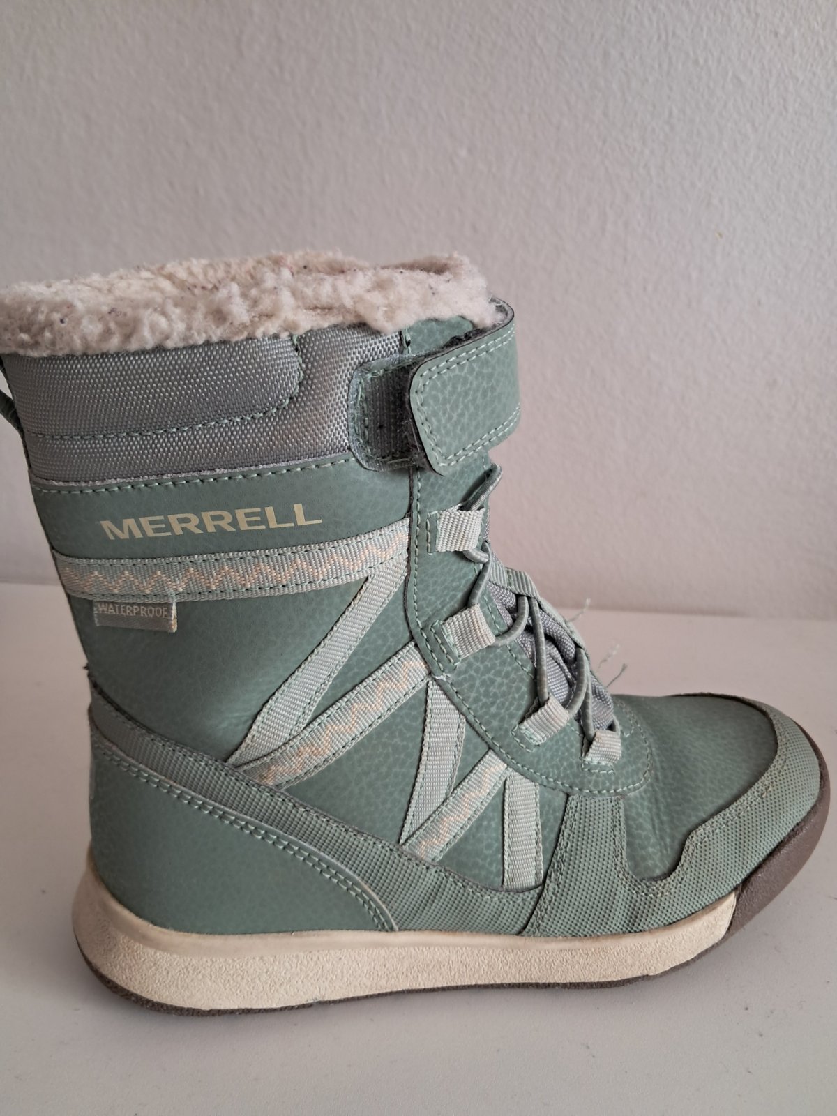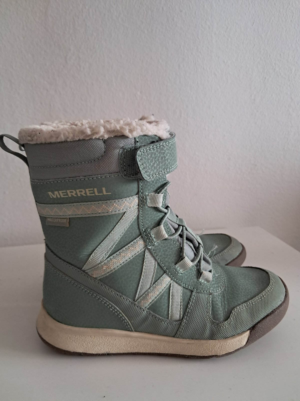 Predám detske zimne vysoke topanky zn. Merrell Snow Crush 2.0 WTPF po dcére kupované nové pred 2 rokmi, žiaľ už sú malé. Veľmi dobrý stav, riadne pofotený. V prípade záujmu pofotim ešte detailnejšie. Zimné topánky sú vo vnútri zateplené umelou kožušinkou. Spokojnosť s nimi 👍👌