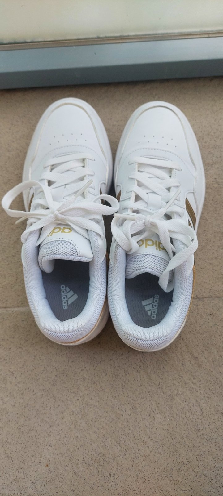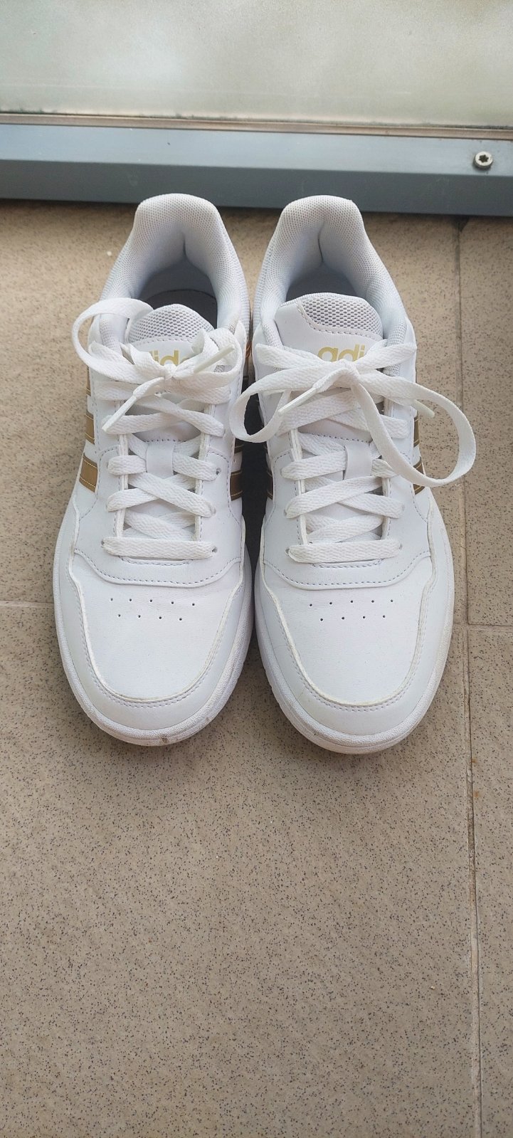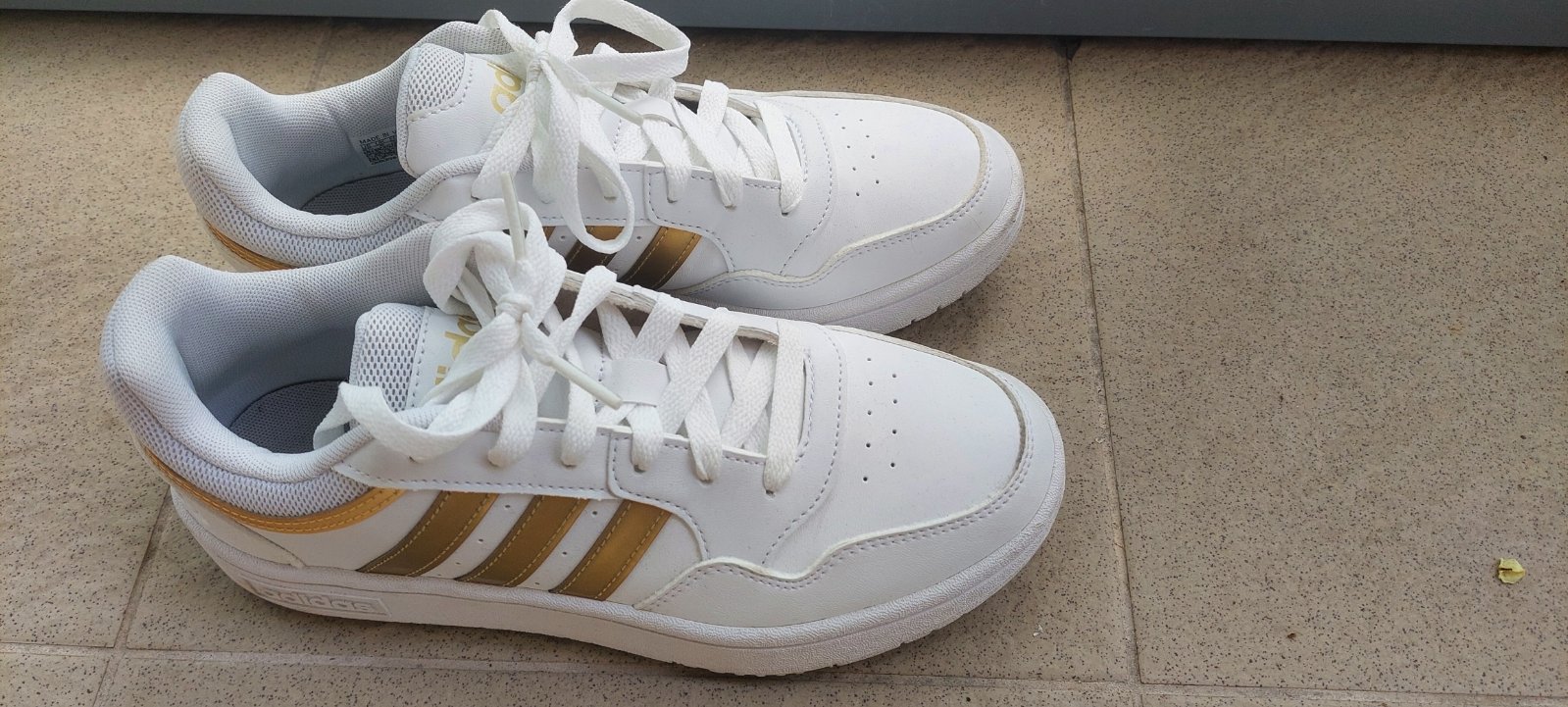 Biele tenisky so zlatými pásikmi, obuté presne raz (dcére sa nepáčili), takmer ako nové.