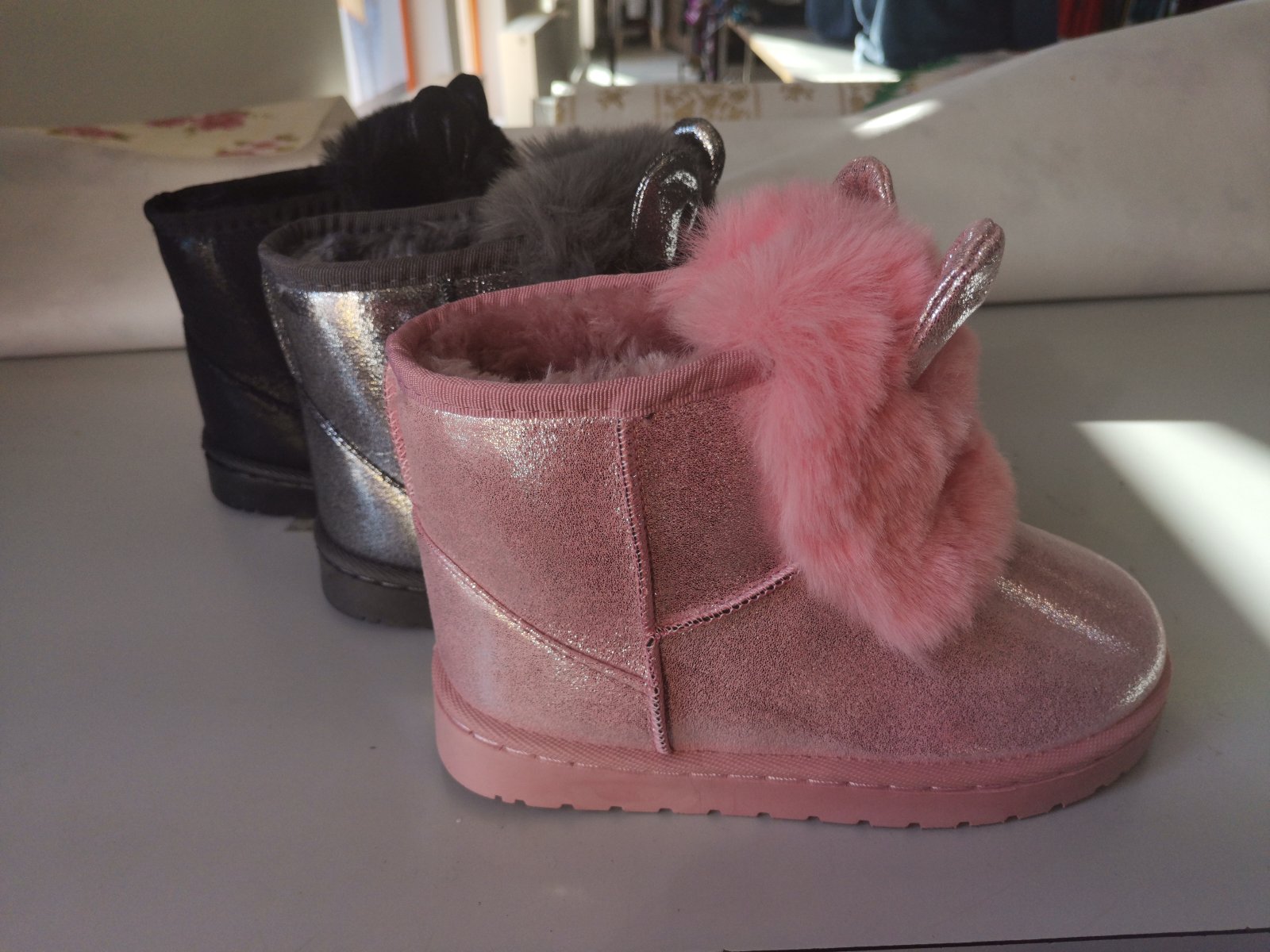 Dievčenské zateplené čižmy s uškami č.32,34