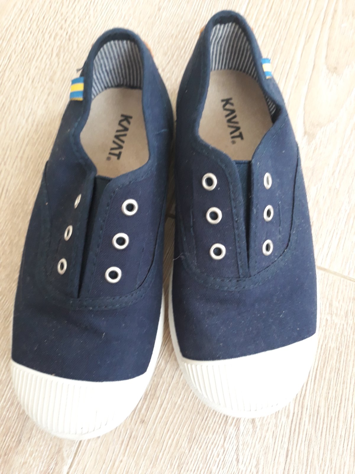 Predám použité detské plátenky po 1 dieťati vo veľmi dobrom stave (viď foto). Podrážka je z gumy, šnurovanie je skôr ozdobné, sú veľmi pohodlné a ľahké. Materiál tenisky má vzhľad rifľoviny. V prí...