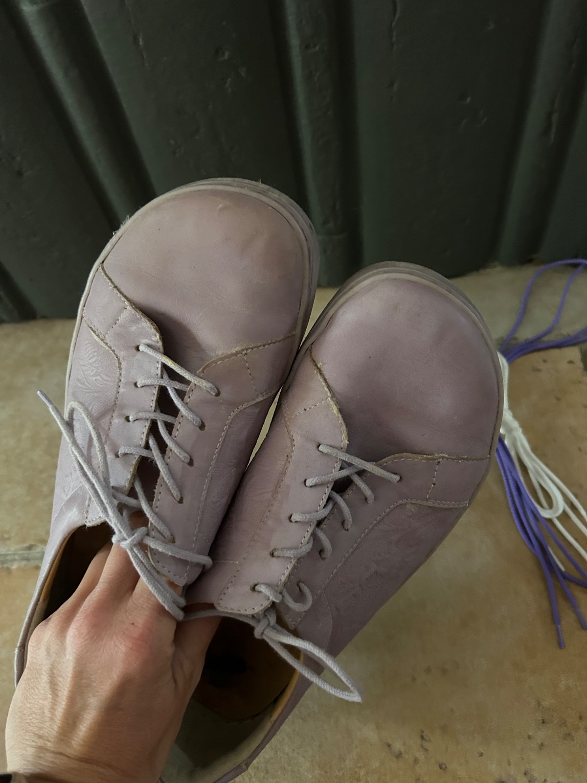 Barefoot kozene tenisky zn. Peerko, fialove s 3 parmi snuriek. Biele a tmavofialove su uplne nove. Pouzivane jednu sezonu. Pekny stav bez poskodenia.