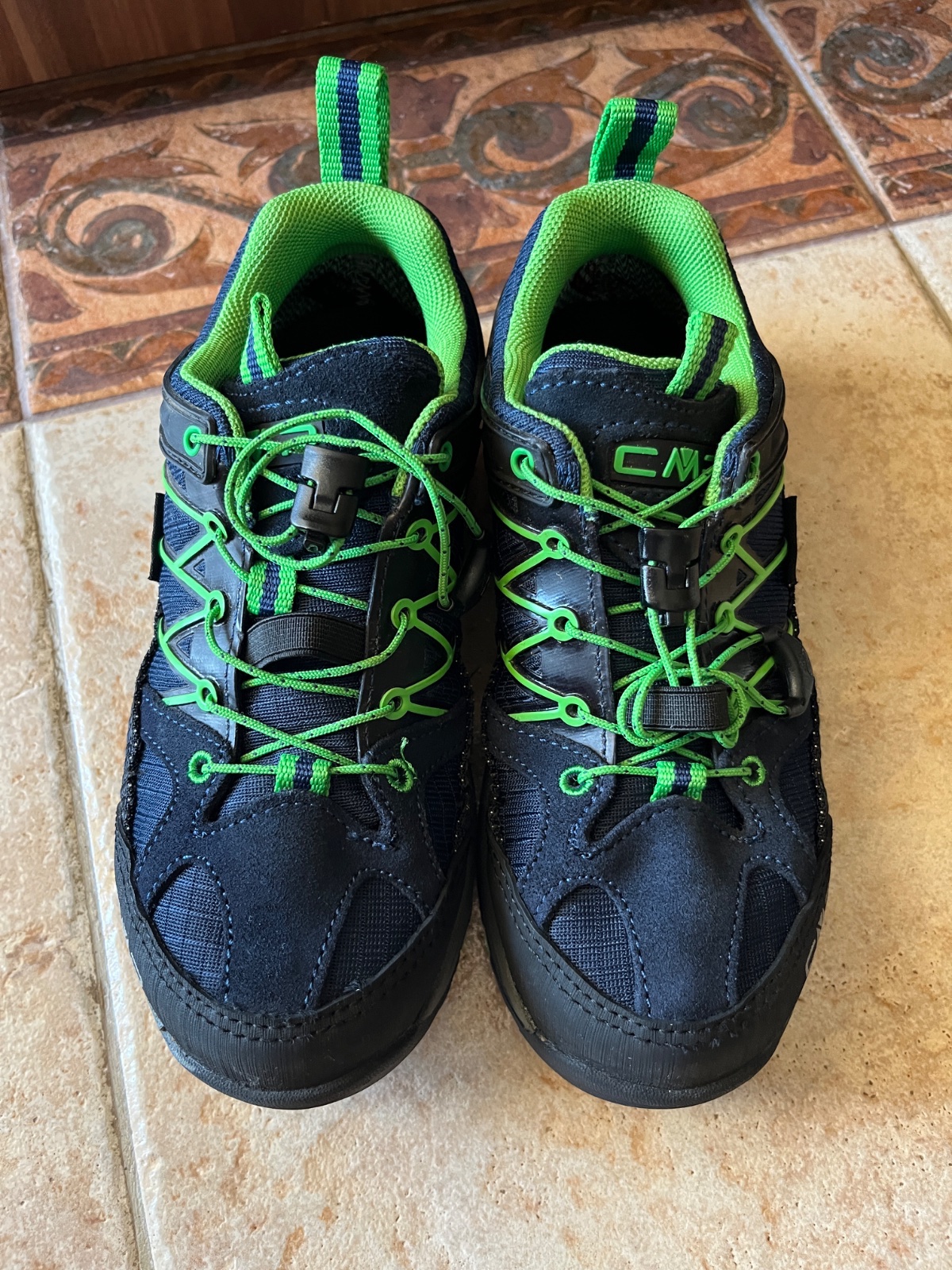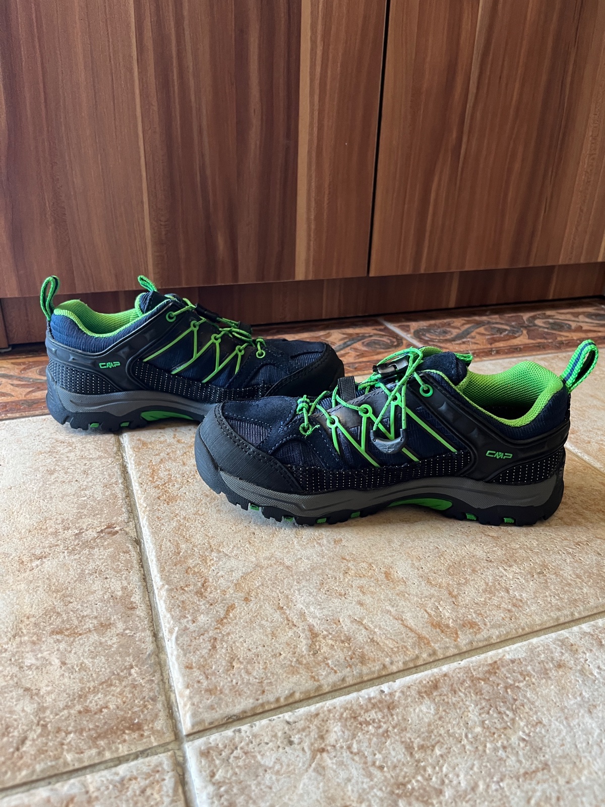 Topánky sú turistické, pevné. Sú nosené, ale podrážka nie je zdravá, iba vyťahaná farba. Bez poškodenia.