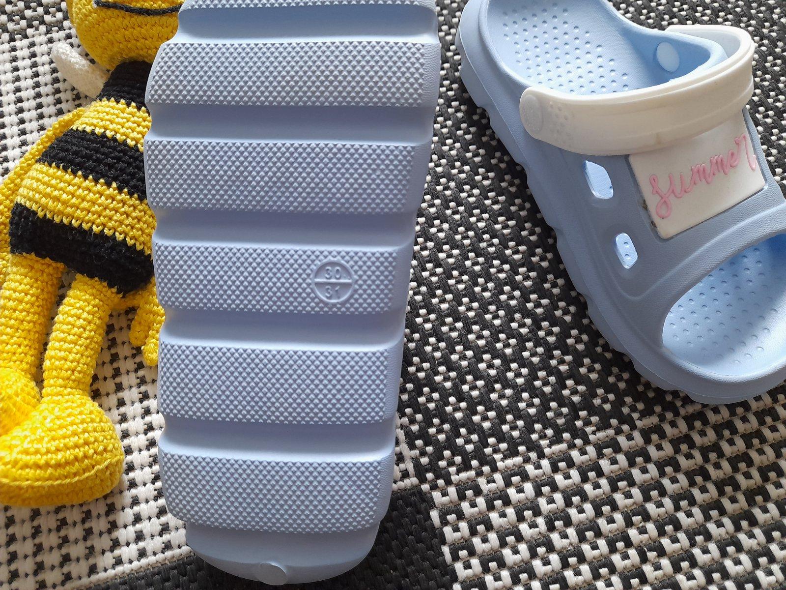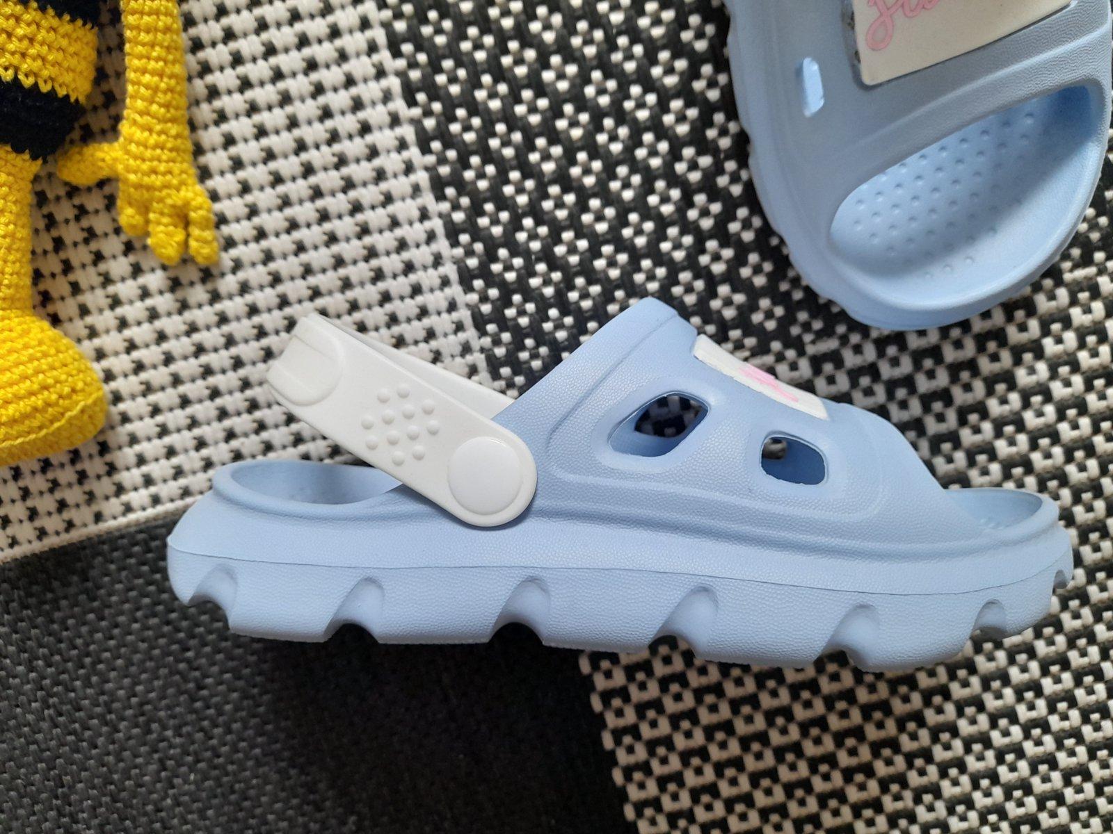 Jednoduché modré žabky. Údaj o veľkosti je už nosením ošúchaný, dcéra nosila ako 31/32 - v prípade záujmu premeriam. Sú nosené, v super stave. Kuk na všetky moje inzeráty, príp. pozrite aj inzerát...