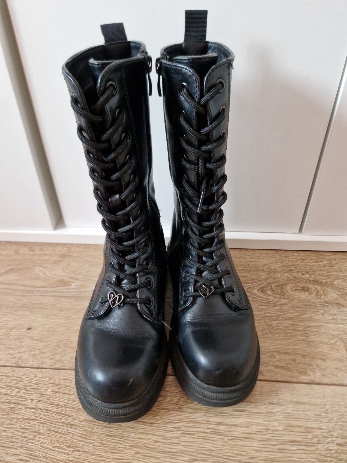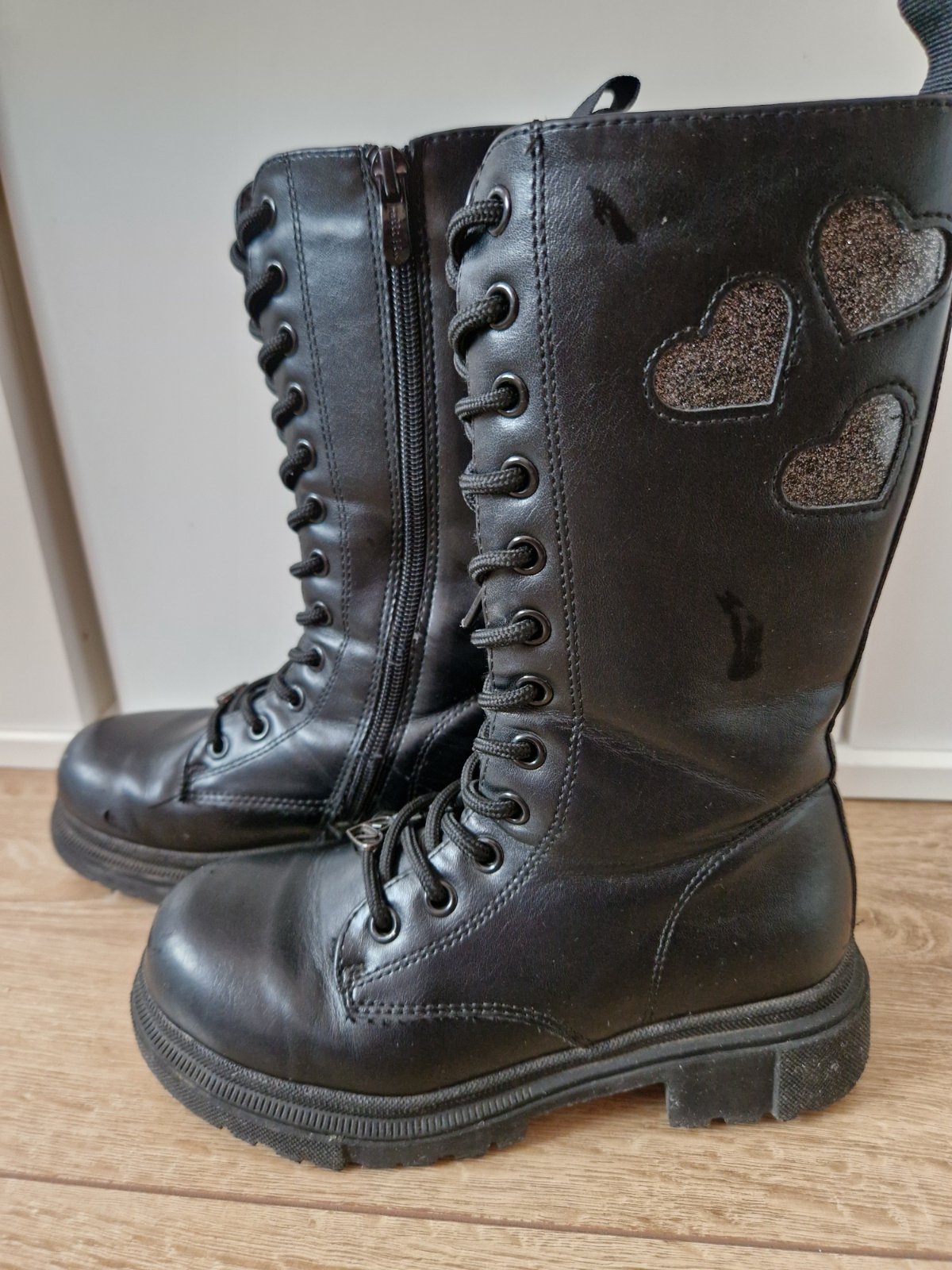 Zateplené členkové čižmy. Bez poškodení. Zapínanie na zips a šnurovanie.