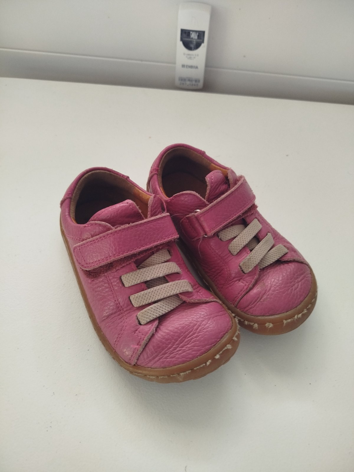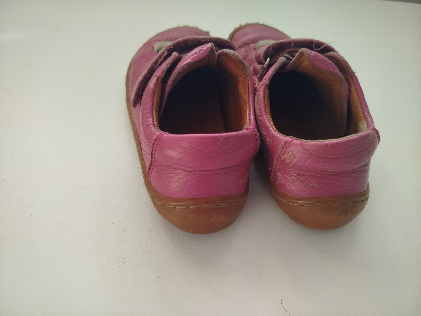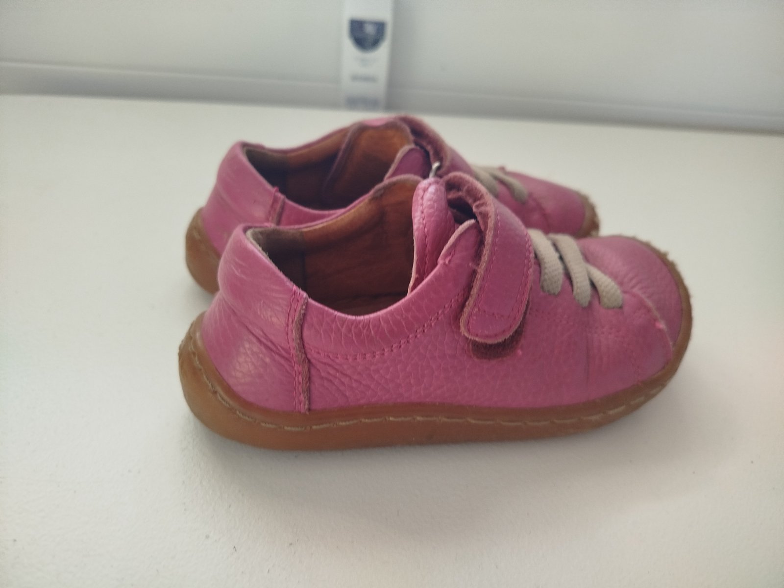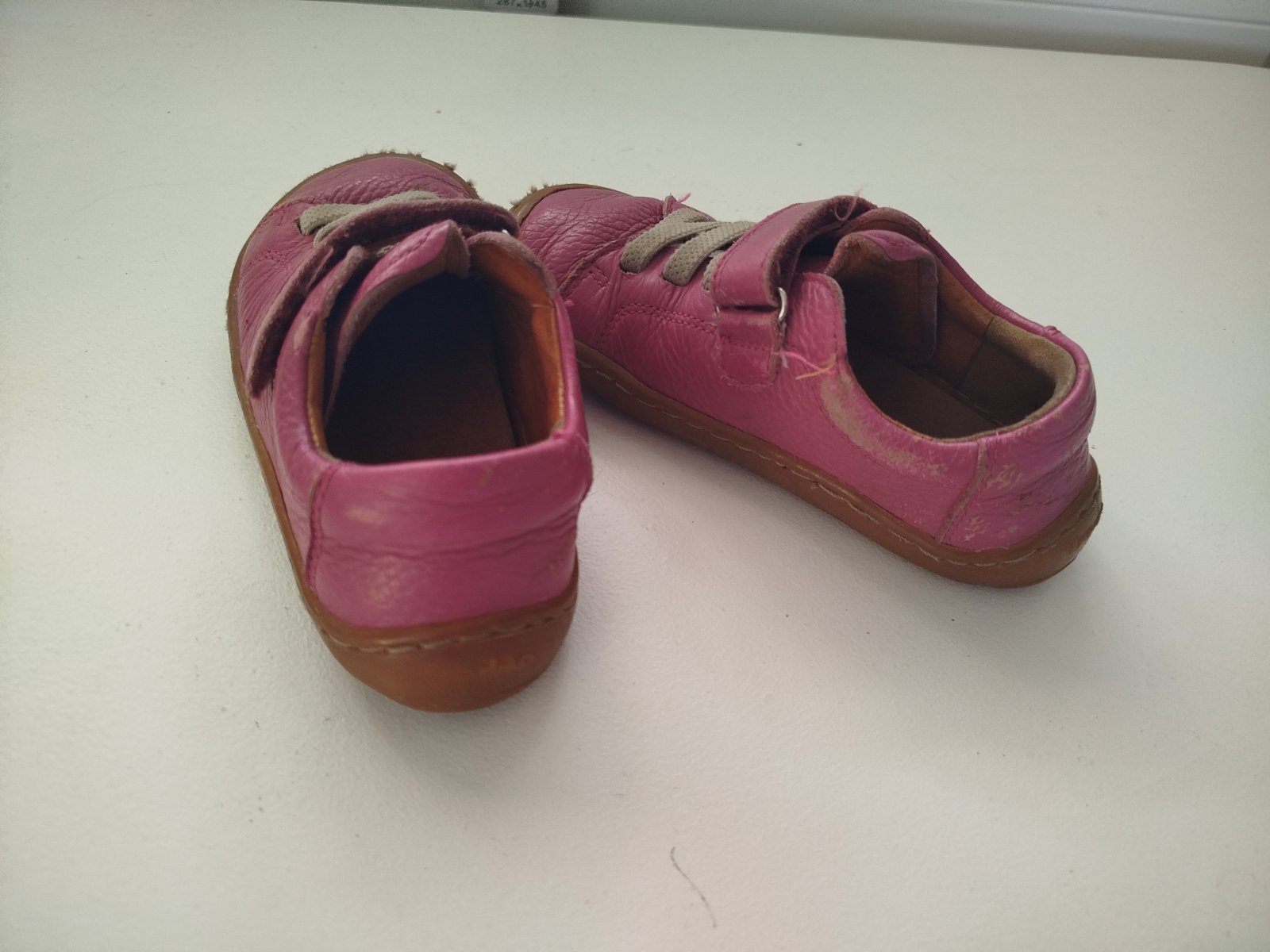 Kožené barefoot tenisky v dobrom stave. Nezoslapane podrážky. Vnútorná dĺžka cca 17,2 cm (nafotena). Na jednej topánke ošúchané koža z vnútornej strany (nafotené).