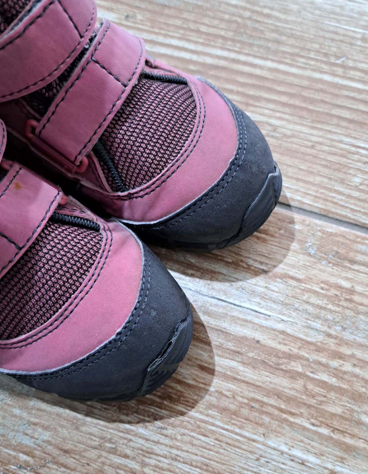 Na bokoch popraskaná koža,noseniu to nebráni,ešte poslúžia.Viď.fotky.