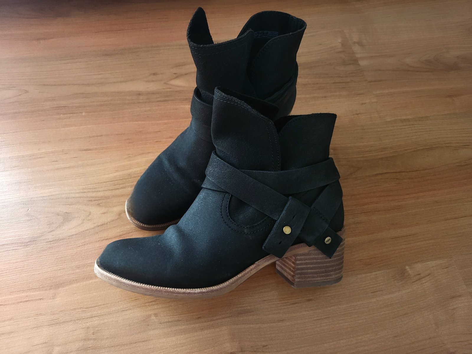 Krásna tmavo hnedá farba, ako nové. Originál, ľahké, krásne . Uvedená veľkosť 36 odporúčam na 35-35,5. Na užšiu nohu.