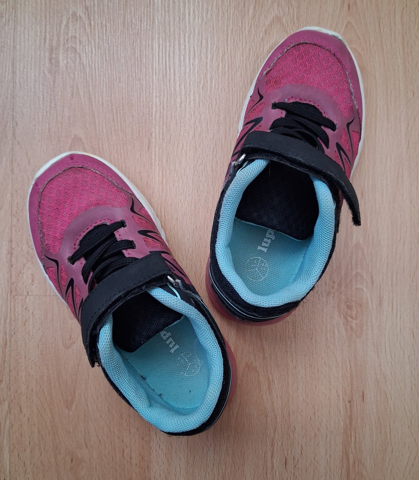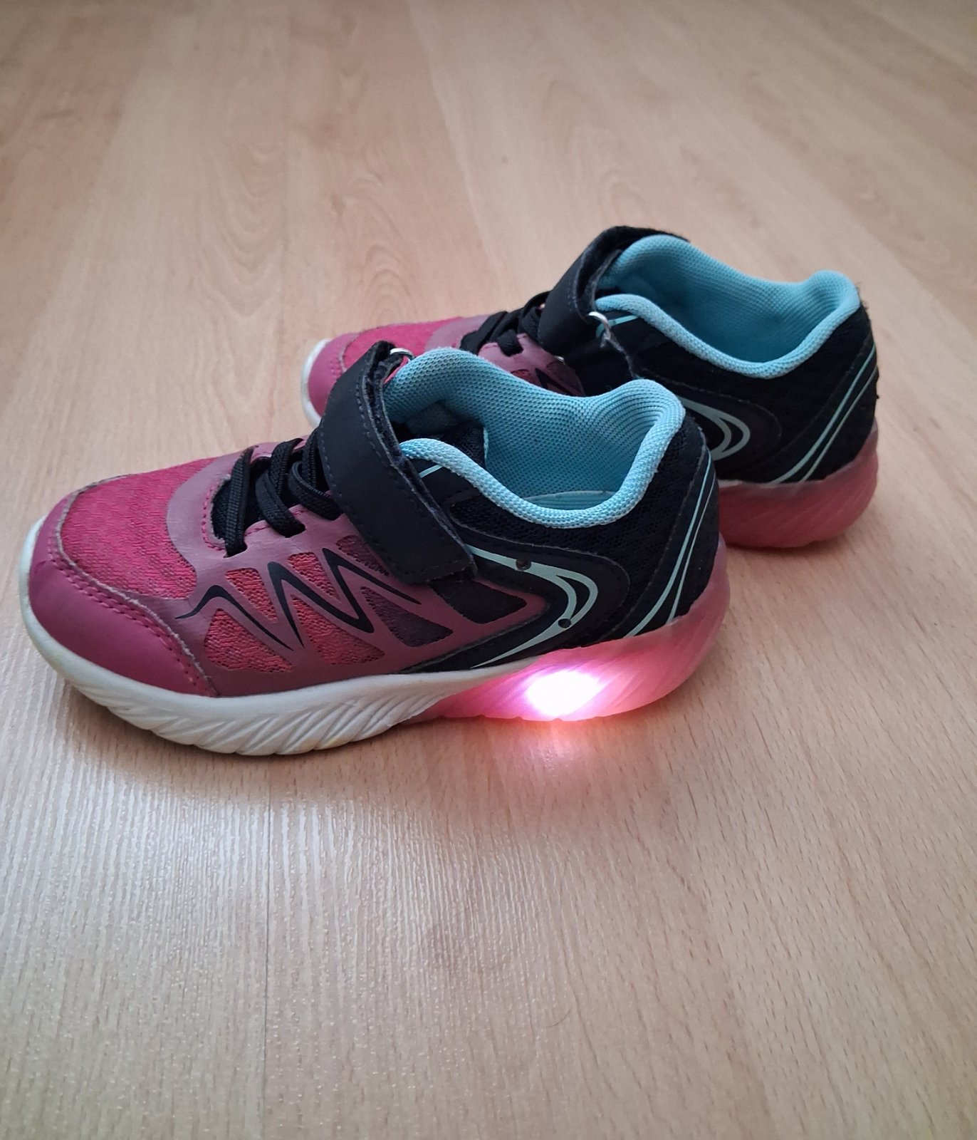 Svietiace tenisky lupilu veľ. 27 VD 17 cm. Dcéra šuchla ľavú špičku je to na foto, ale nenáročnej maminke ešte poslúžia. Cena 3 eurá