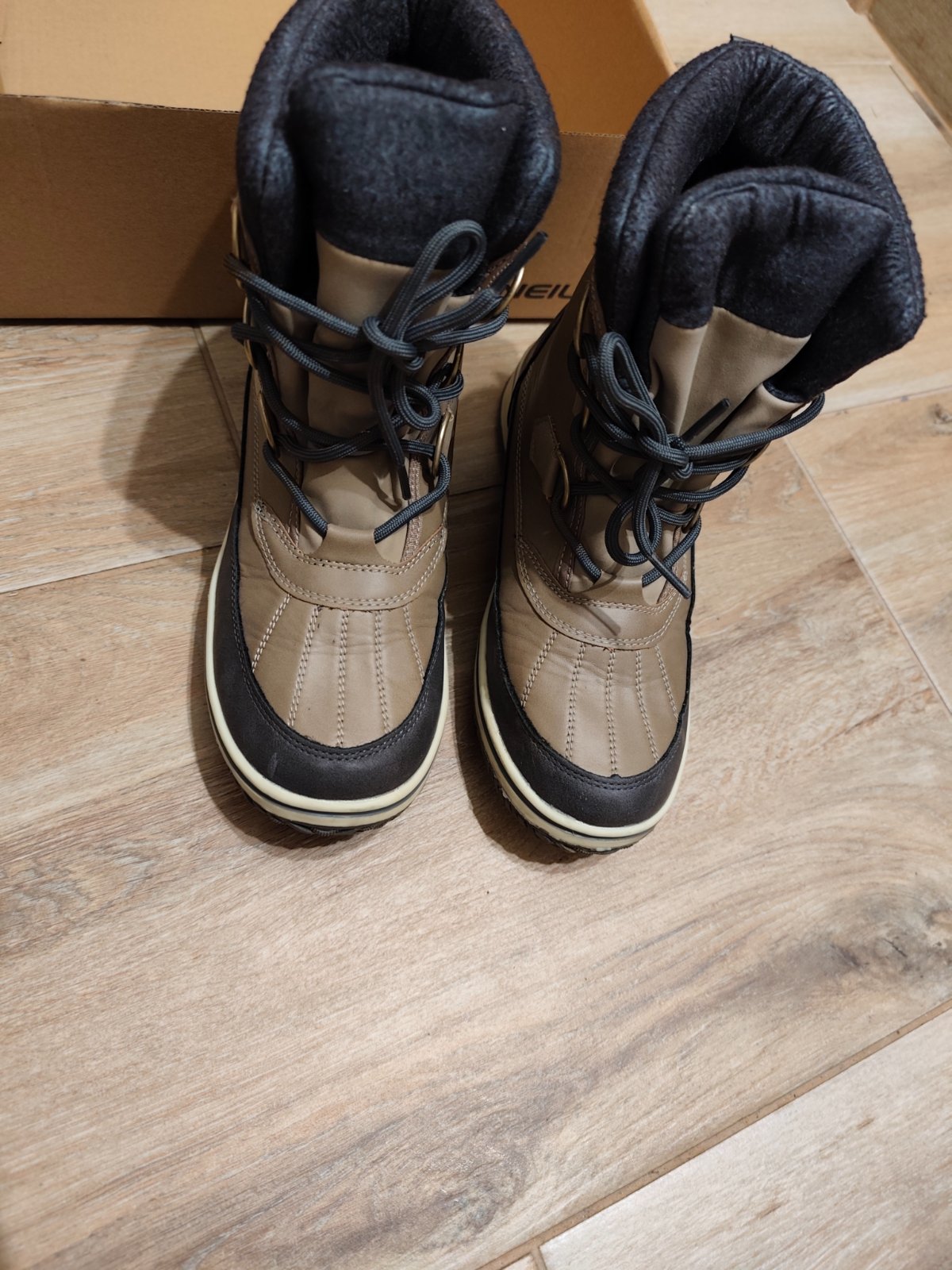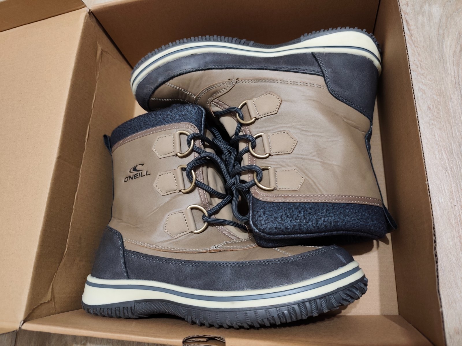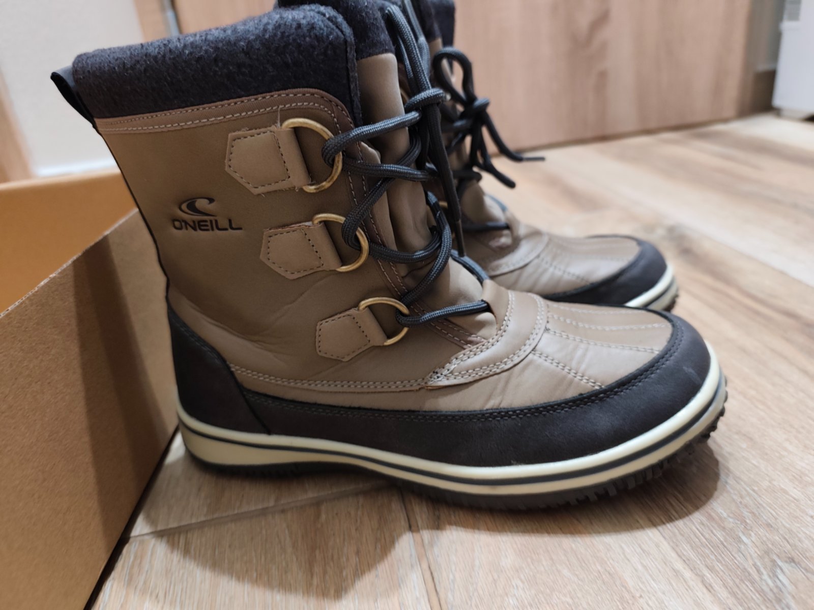 Dva krát obuté, Snehule z kolekcie O'Neill. Model vytvorený spojením syntetickej a textilnej látky.