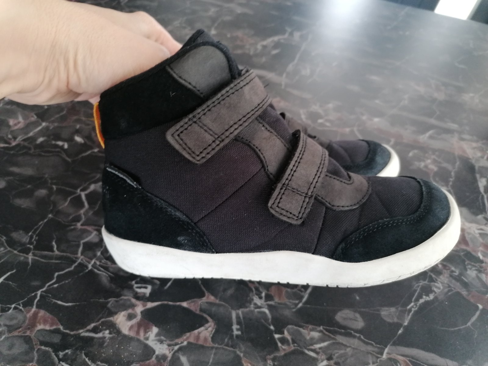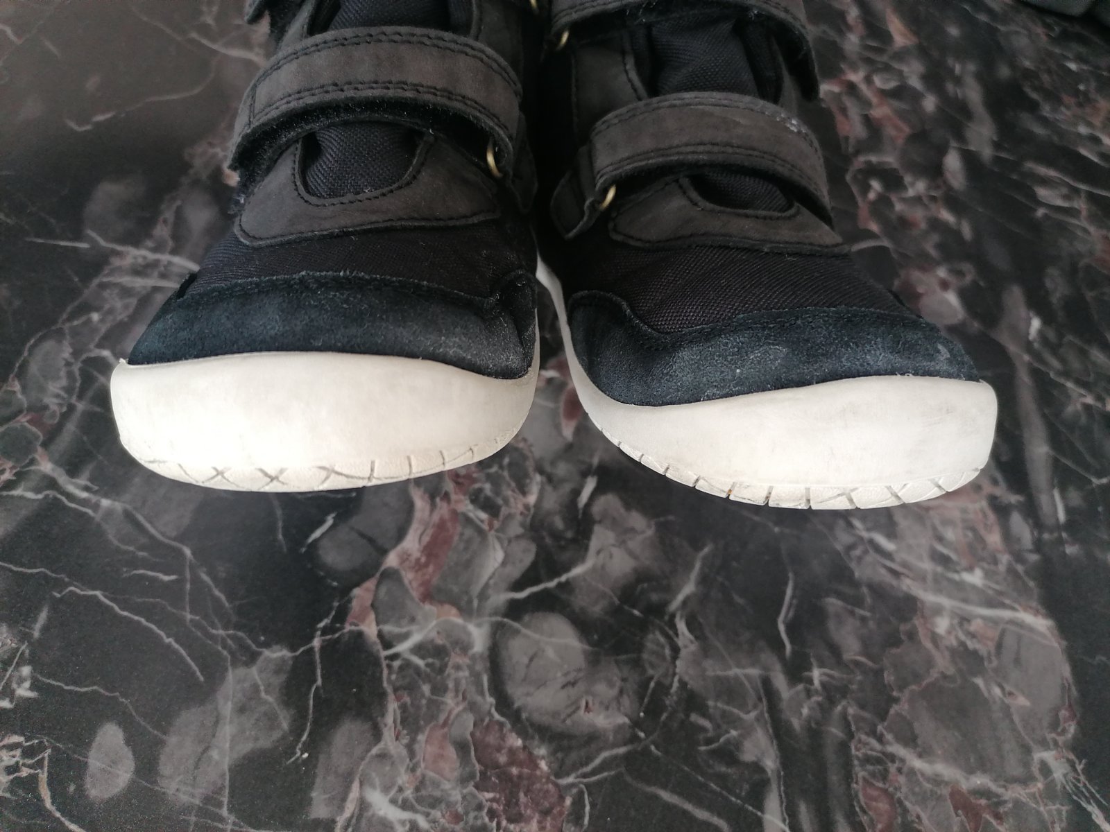 Málo nosené. Na pravej topanke je mini záder na látke. Je to len povrchové. Nemá vplyv na funkčnosť.