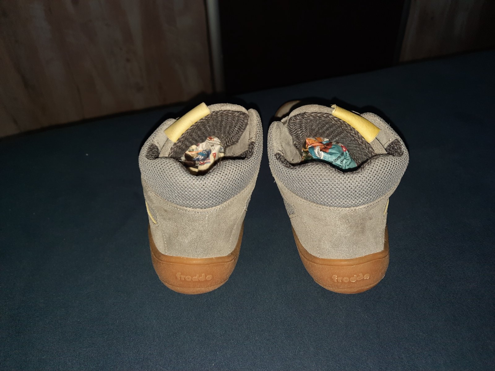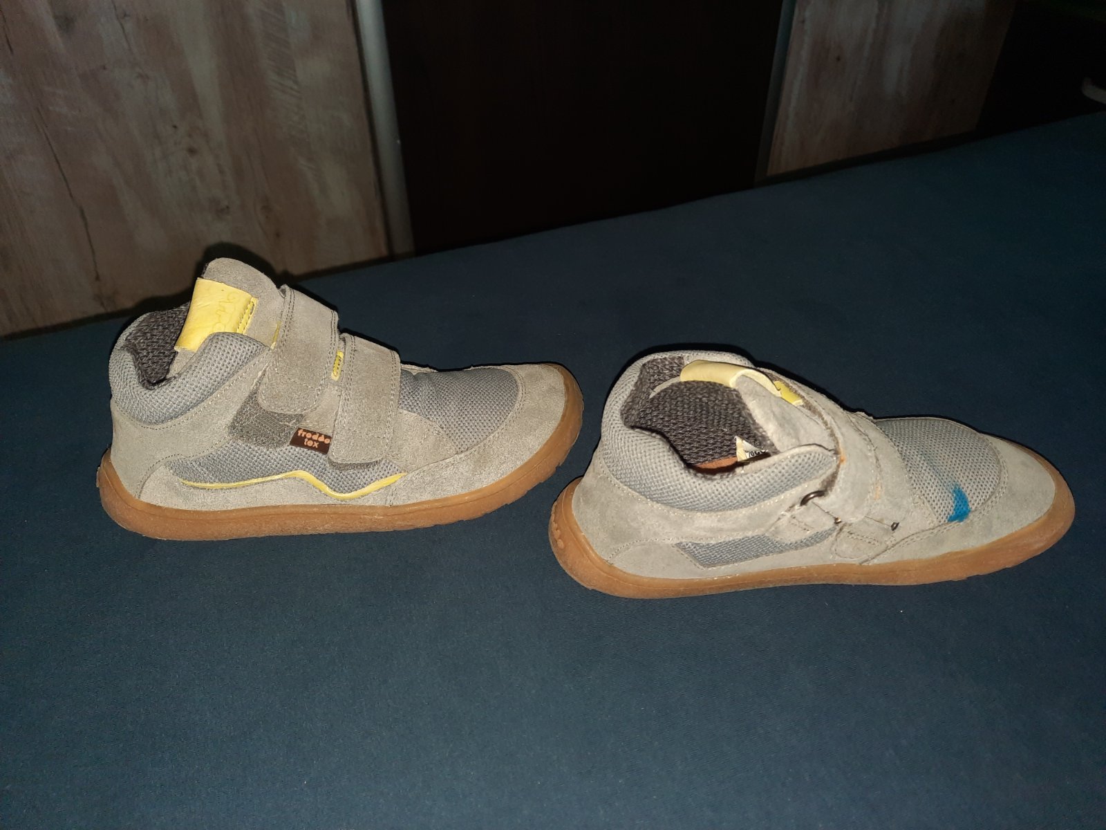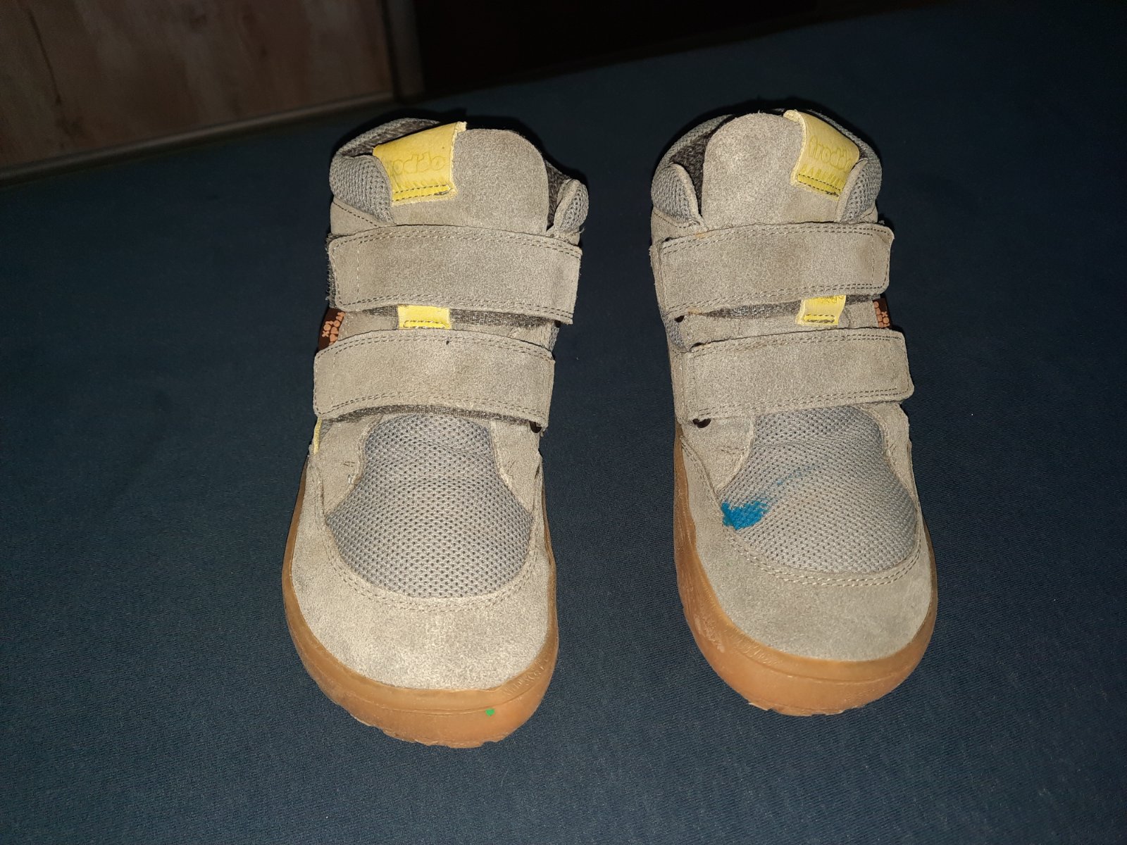 Na ľavej topánke modrý fľak od farby (mne sa nedalo vyprať)