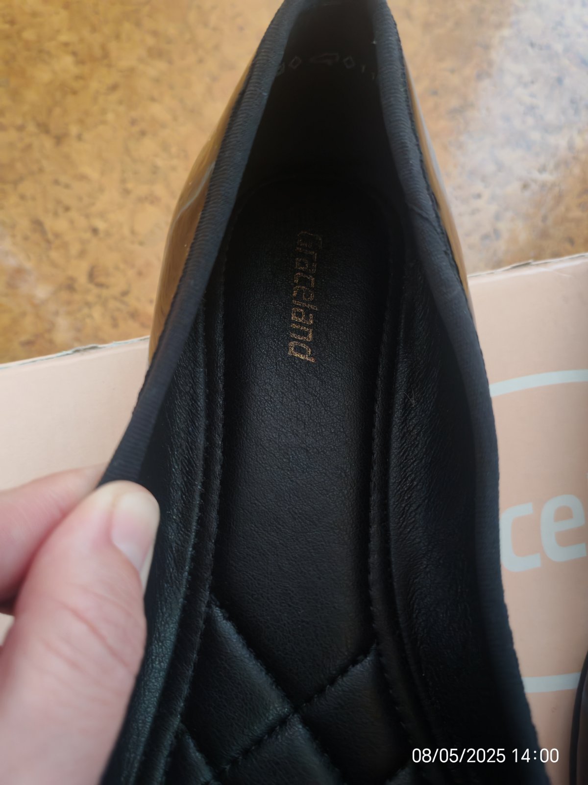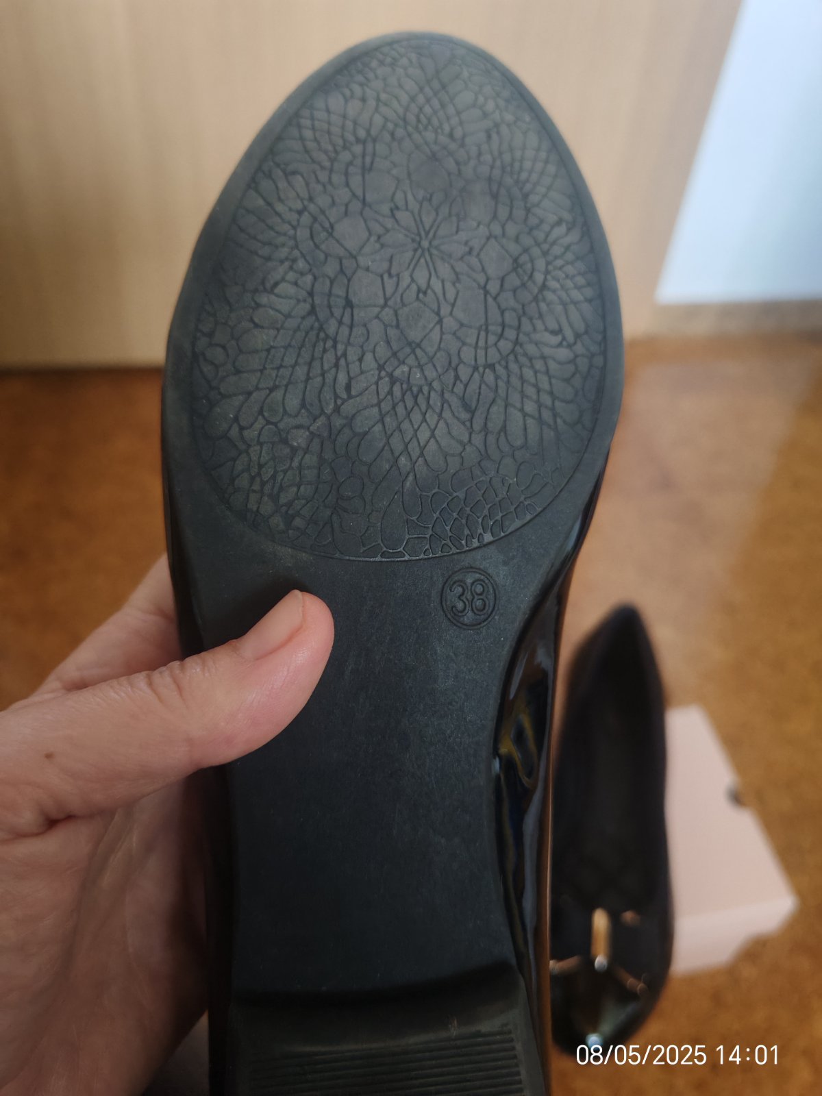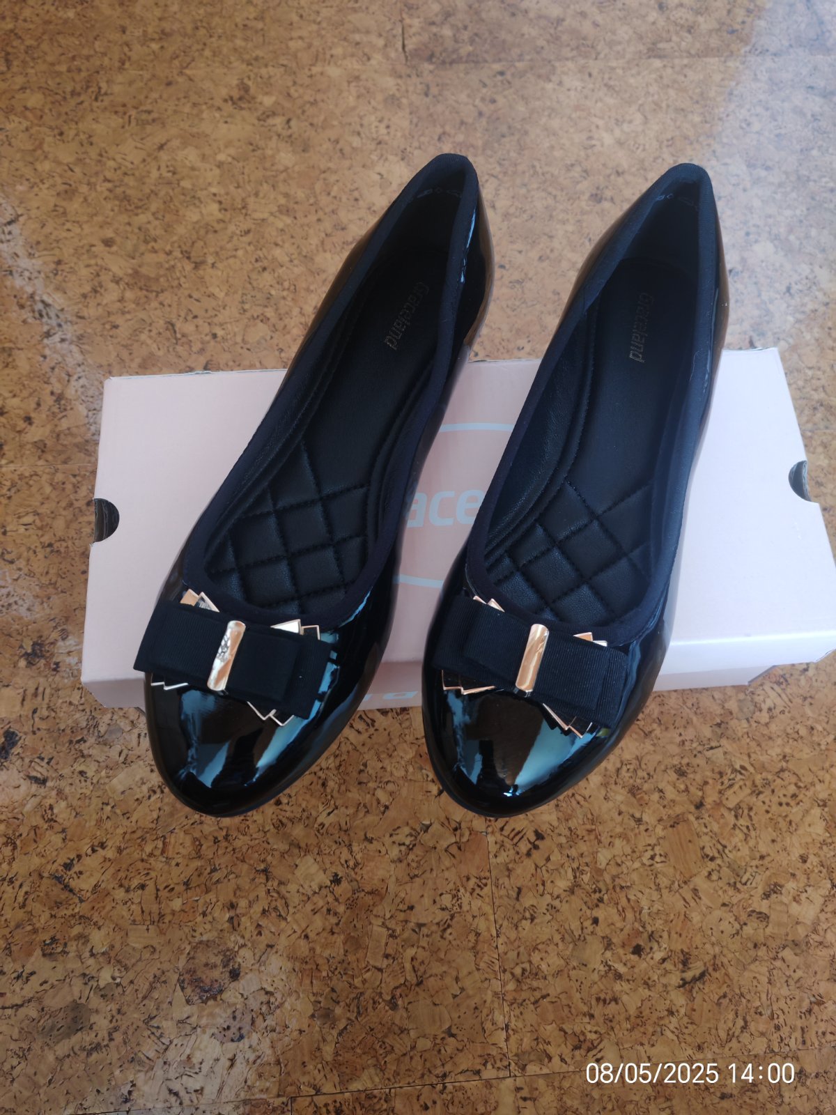 neznosené textilné balerínky,veľmi pohodlné, s jemnými lurexovými trblietkai,ktoré lámu svetlo - nie velmi výraznými, vhodné aj na spoločenskú udalosť,vn. dlžka = 24 cm