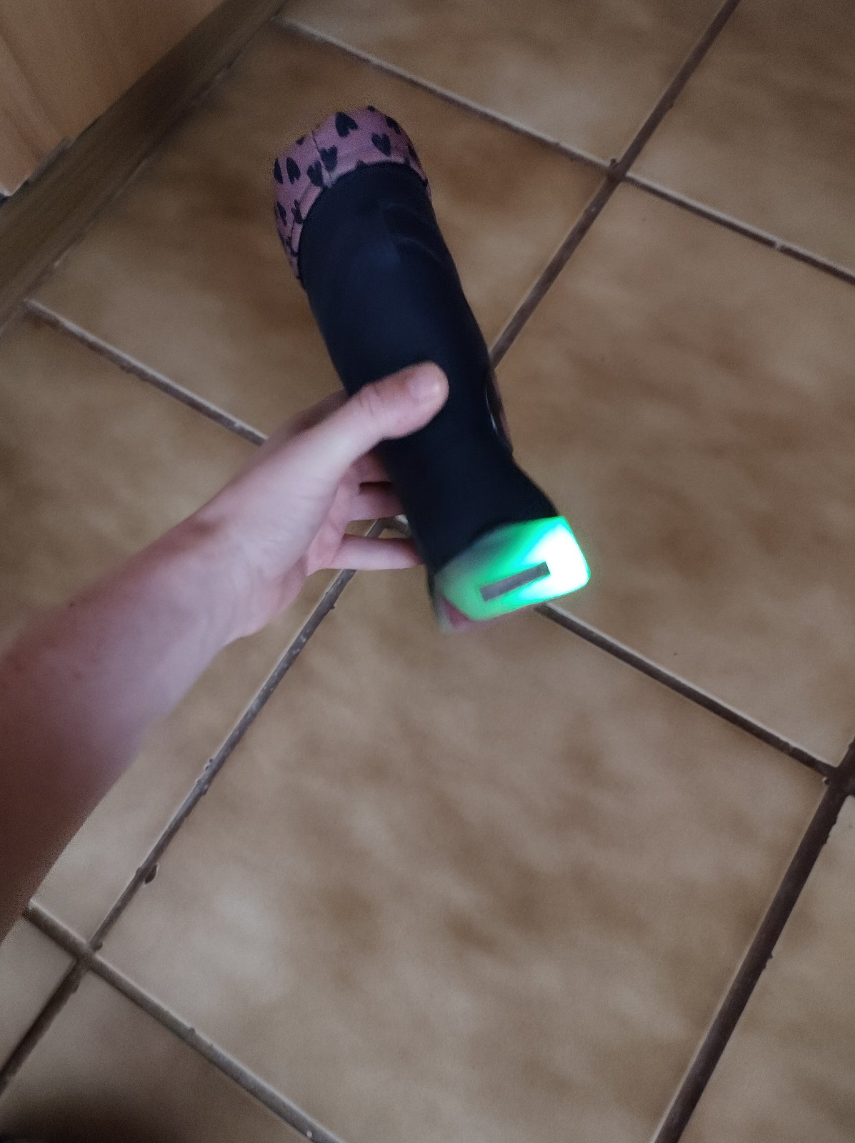 Svietiace (blikajúce) gumáky, nosené jednu jeseň, miestami šmuhy, inak vo veľmi peknom stave. Majú zateplenú vložku, ktorá sa dá vybrať, majú reflexné prvky.