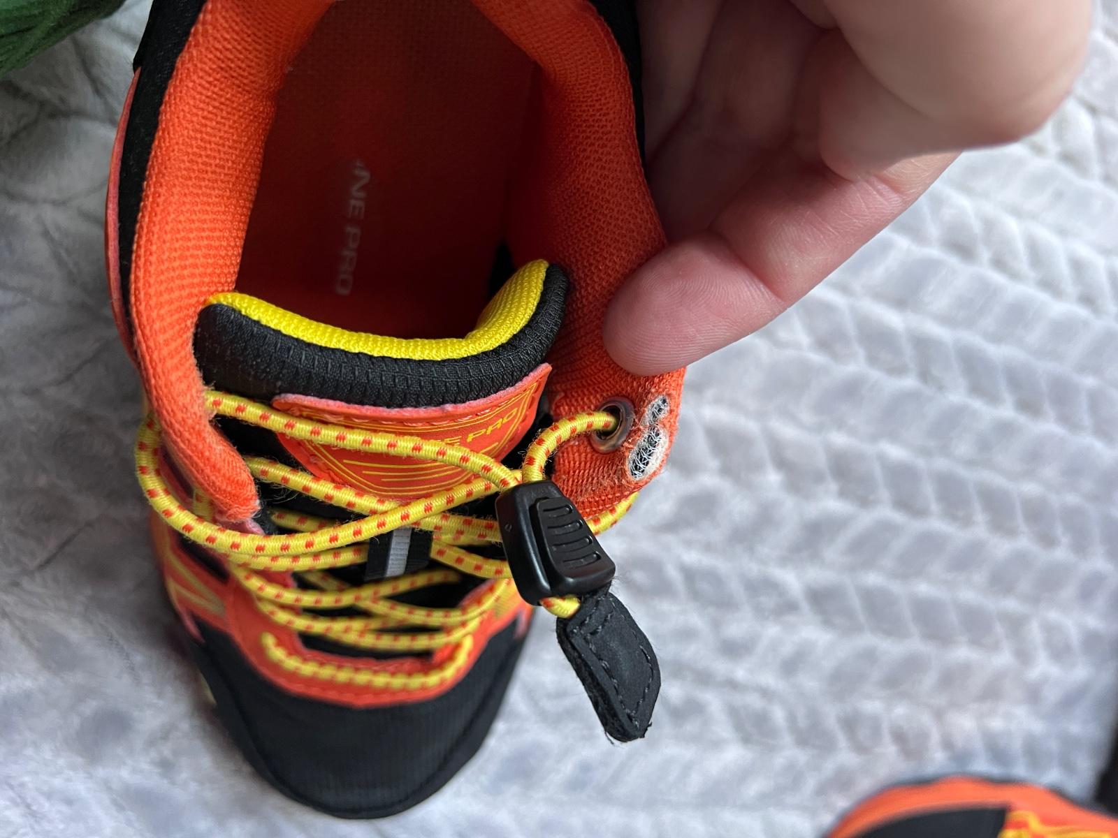 Nosené len synom necelý mesiac, výborný stav - aj podrážka, vnútorná plocha a krásne sú aj zvonku. Farba sýta ,nevyblednutá. Jediná chybička krásy je jemne zodratá vnútorná časť tenisky pri jazyku (to zodrala spodná časť nohavíc), inak bez poškodení.