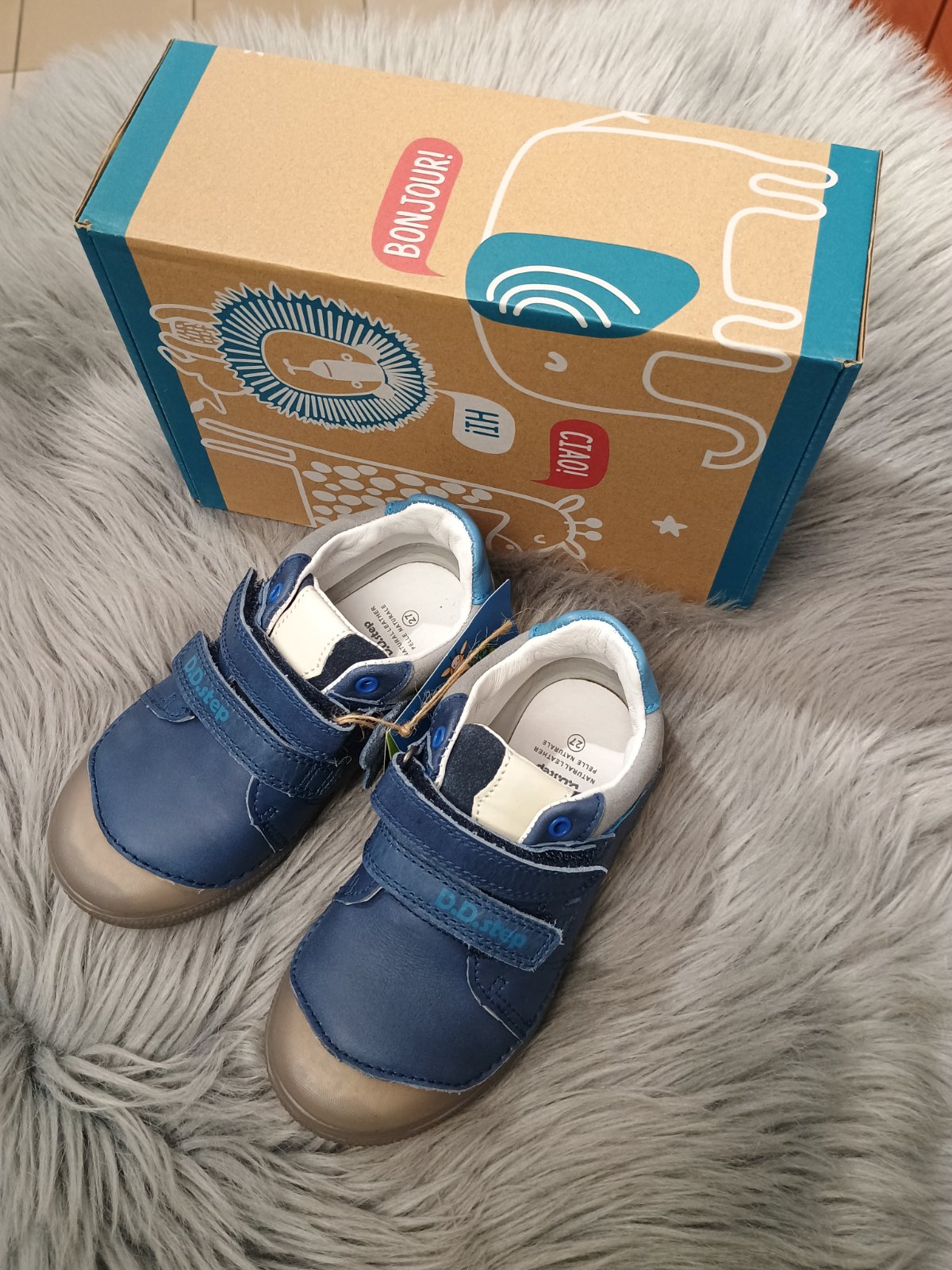 Štýlové chlapčenské celokožené topánky od značky D.D.Step, ktoré majú štýlový farebný zvršok a flexibilnú podrážku, ktorá svieti. Zapínajú sa na suchý zips, takže sa ľahko obúvajú. Majú tvarovanú stielku, ktorá je pohodlná. Obuv je odľahčená a pri prstoch širšia.