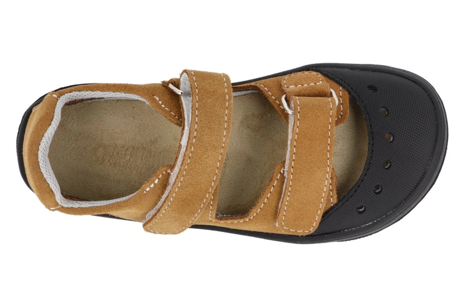 SkladomKožené barefoot sandále s textilnou podšívkou.