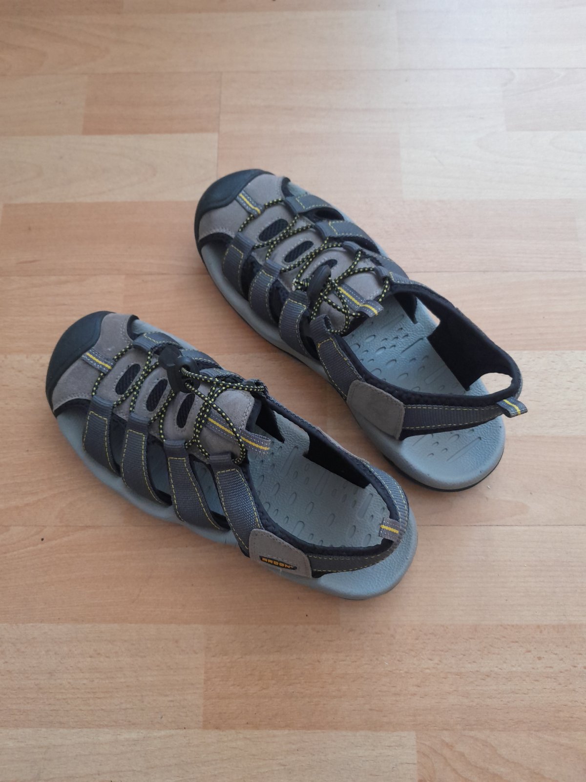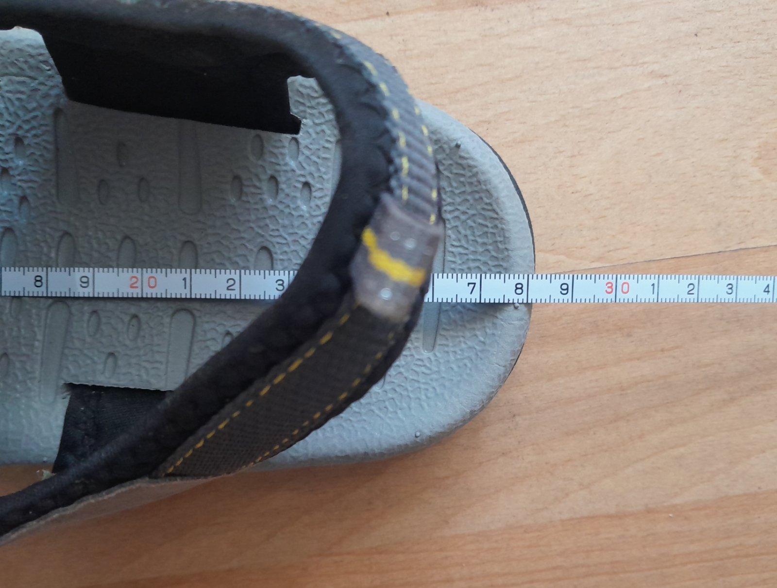 farba je taka tmavosiva, skoro cierna, sietovina je cierna. Sandale su nosene, ale neschodene. Suche zipsy drzia, guma pruzi. Vn. dlzka od spice po kraj na pate 25,7cm