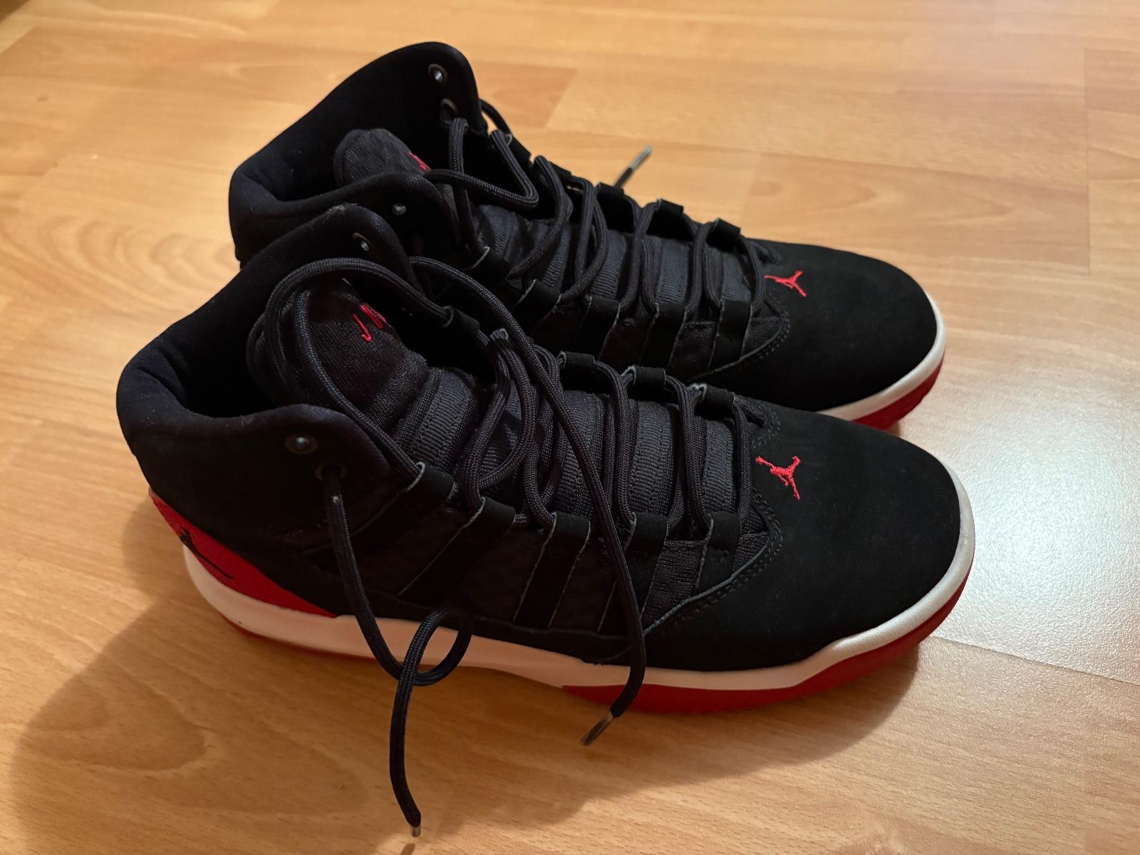 Predám veľmi zachovalé tenisky Air Jordan čiernej farby s červenými detailami. Originál. Cena aj s poštovným.