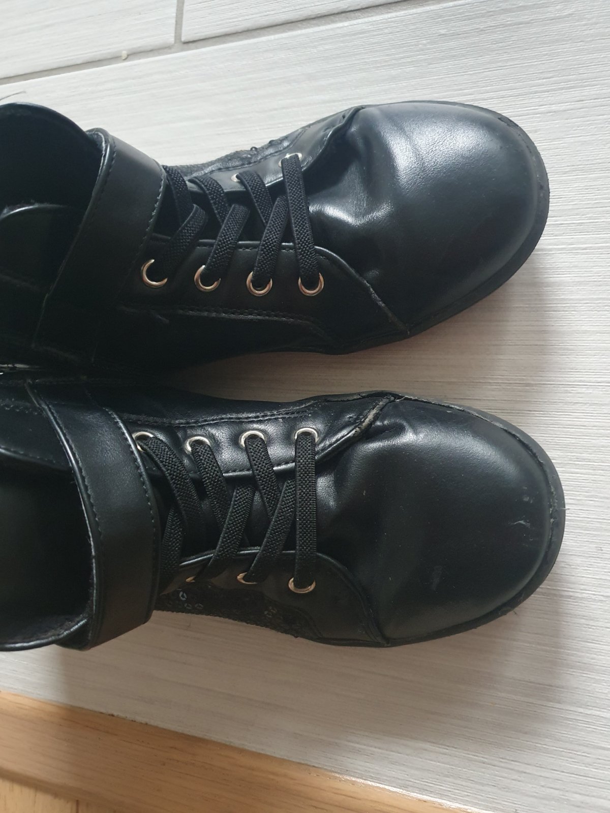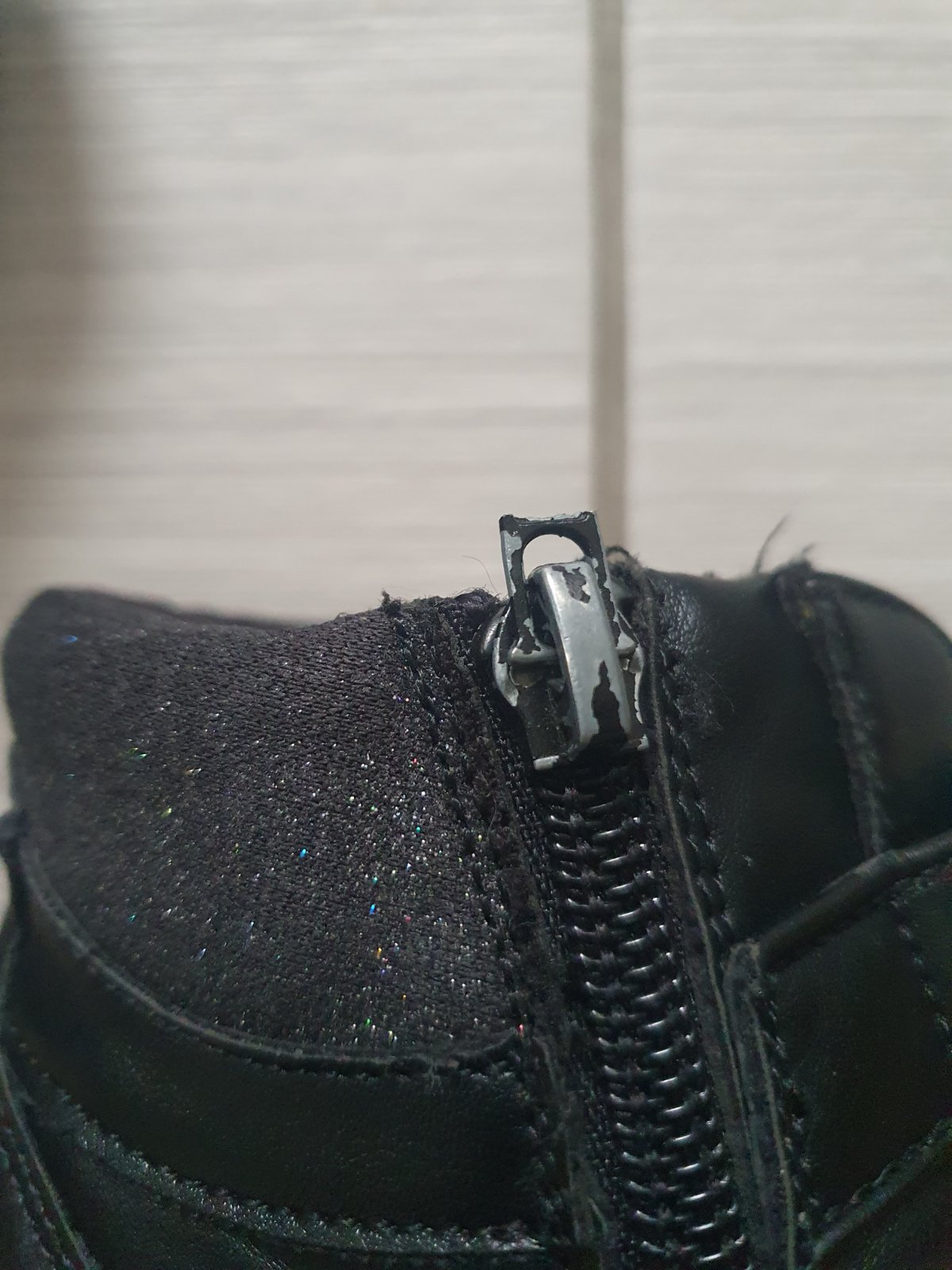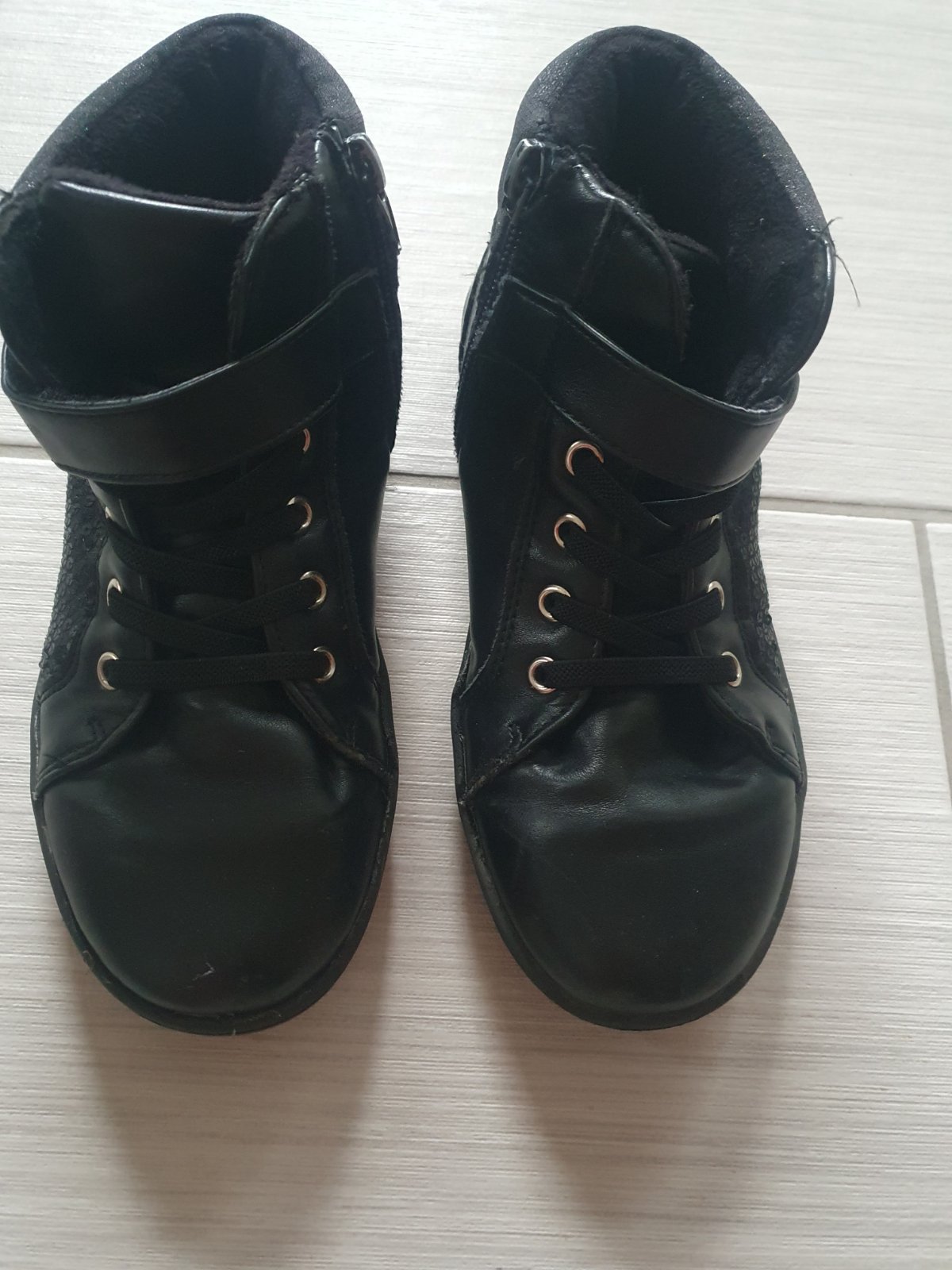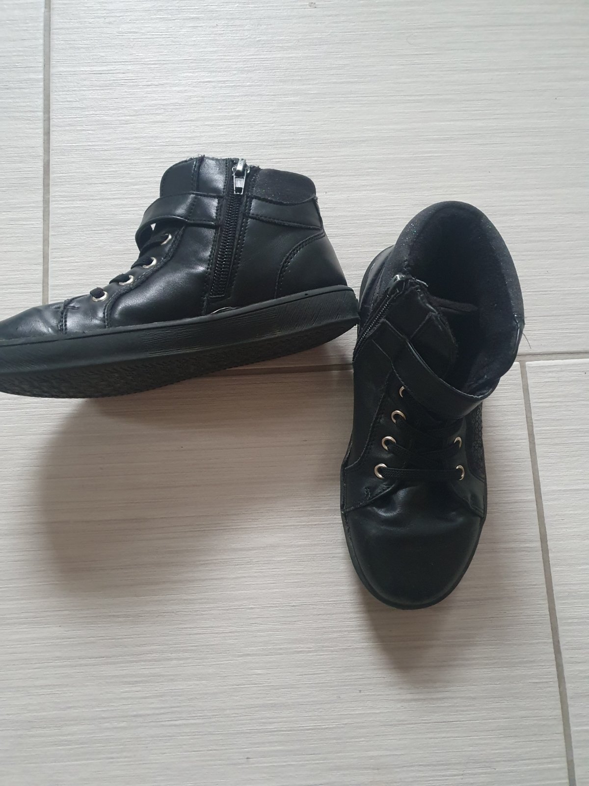 Perfektné topánky na prechodné obdobie.Vnutro trošku zateplené,zboku zips.Jediná chybička,na zipse ulomeny kusoček kde sa drži bežec.(vid foto) ale zapinať sa da uplne fajn.