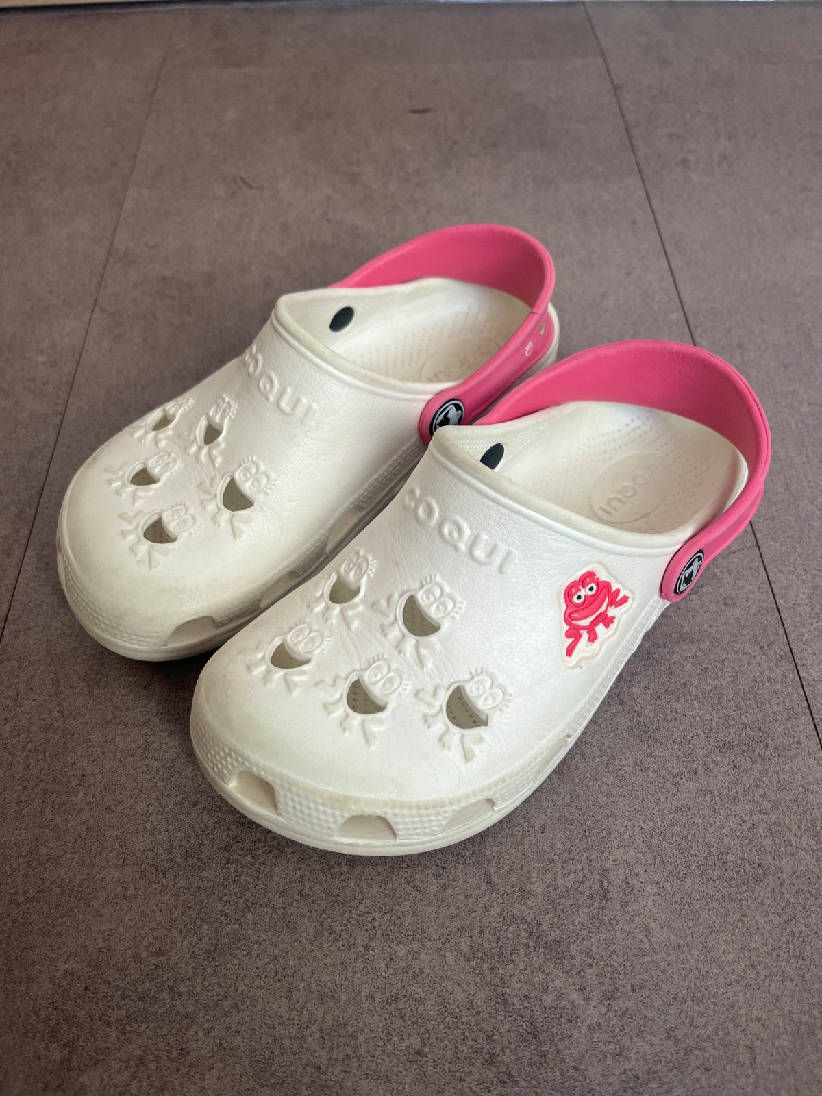 Predám šľapky v peknom nosenom stave používané len ako prezuvky v škole, veľkosť 32/33.Jeden smajlík je stratený.