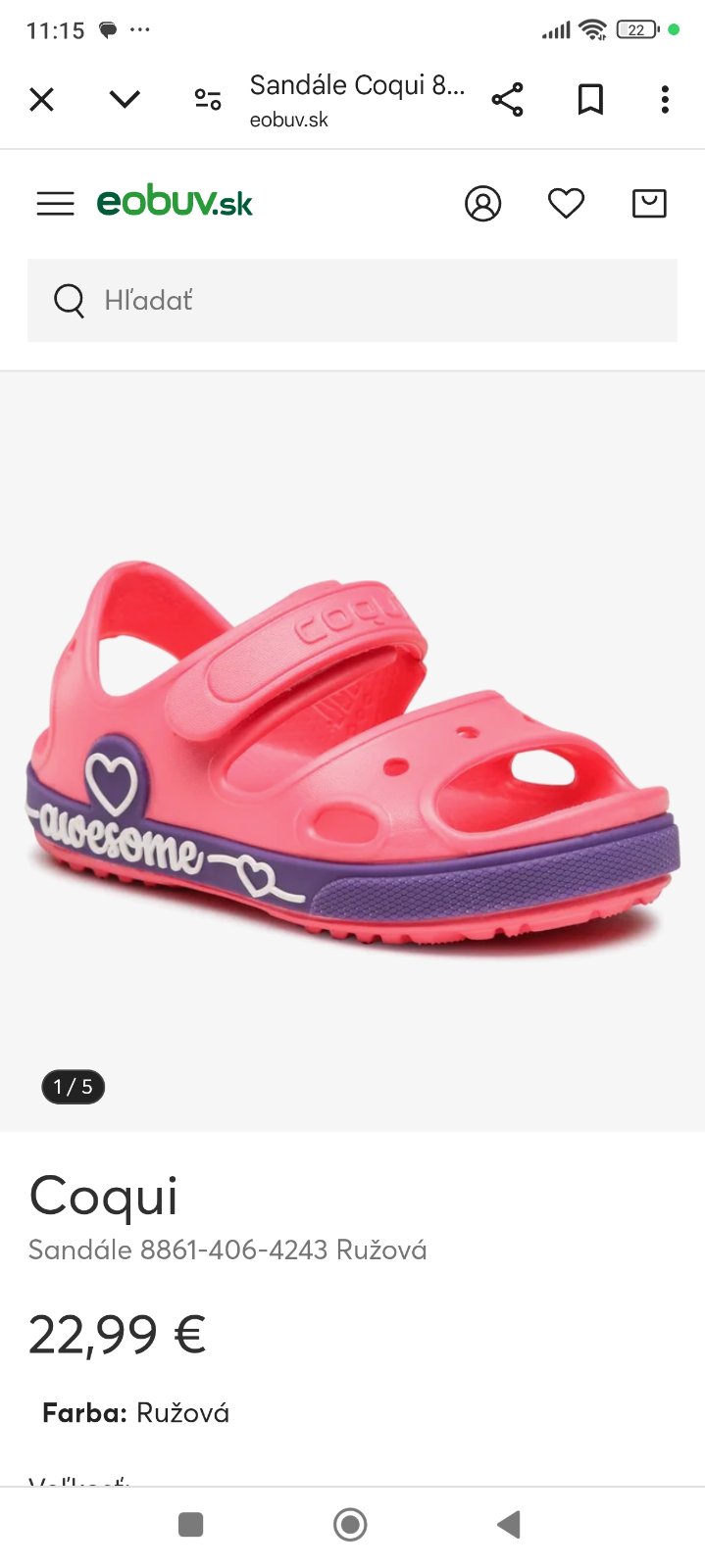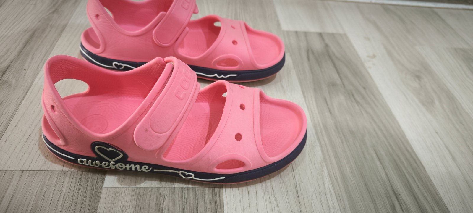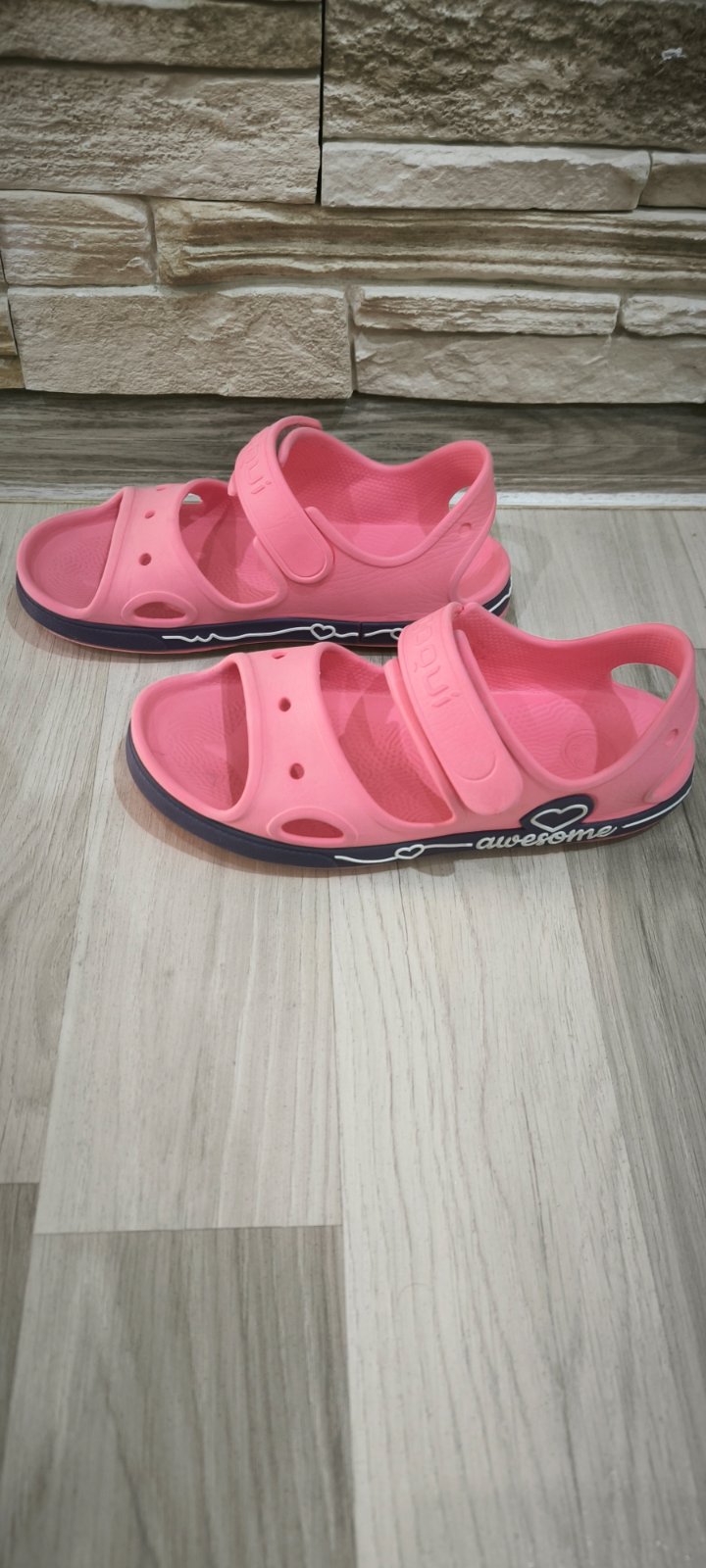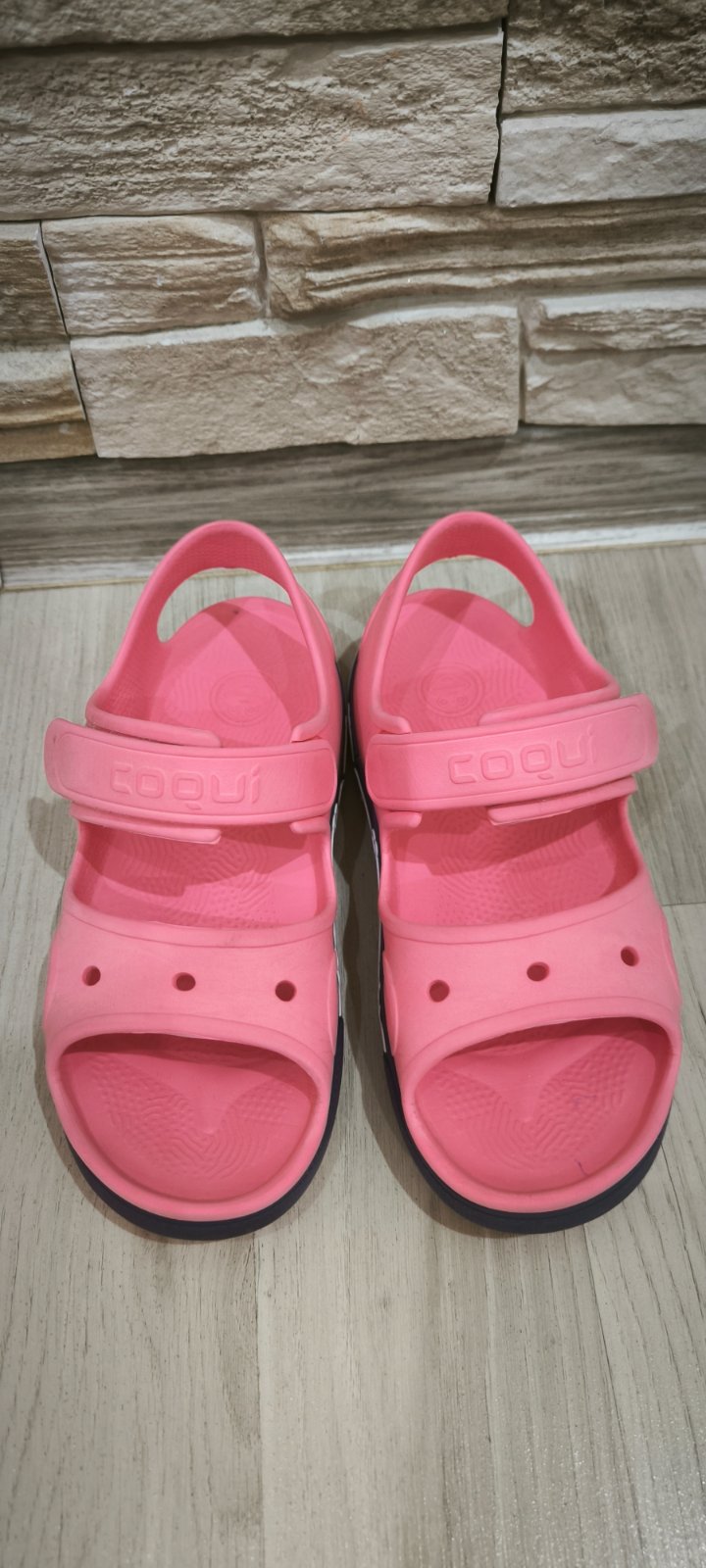 Predám gumenné sandále značky Coqui. Veľkosť 34/35. Sú super k vode, rýchlo sa uschnú, aj na bežné nosenie. Je tam lepka na napasovanie na nohu, plne funkčná,dobre lepí. Pekný stav. Priložila som aj fotky z internetu, aby bolo lepšie vidieť farbu, výrobca udáva "Dark Pink".