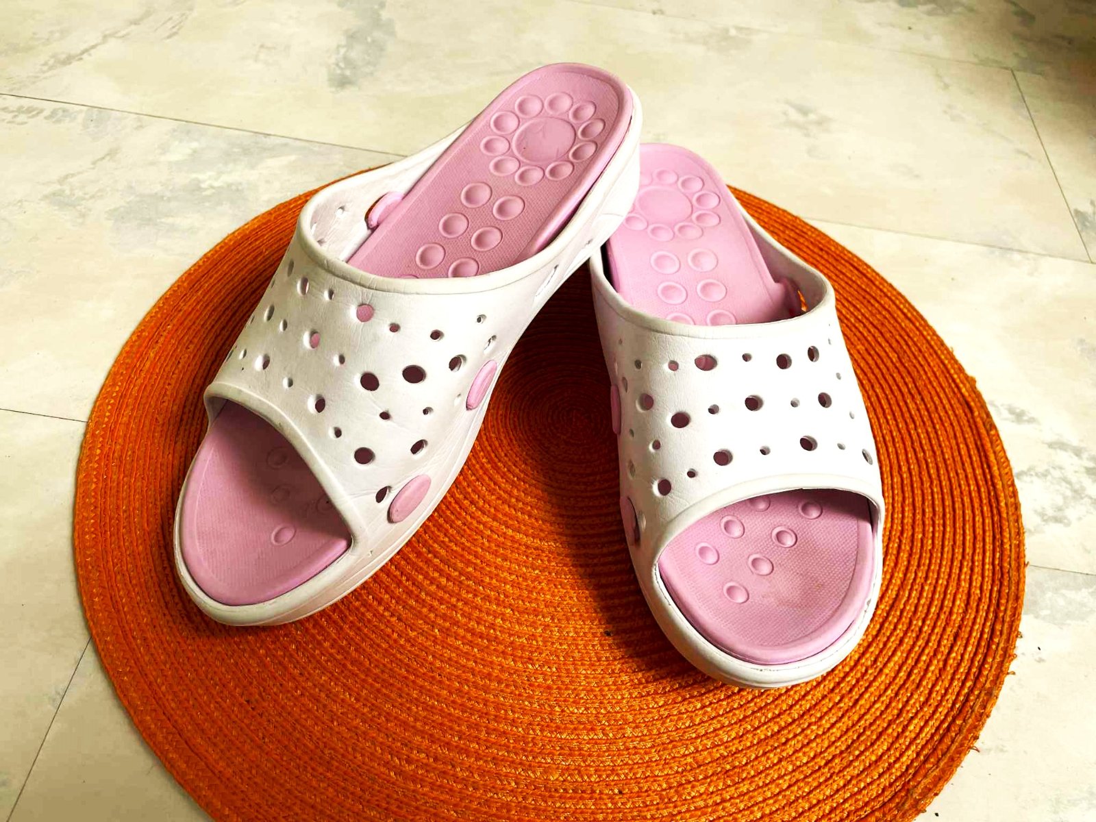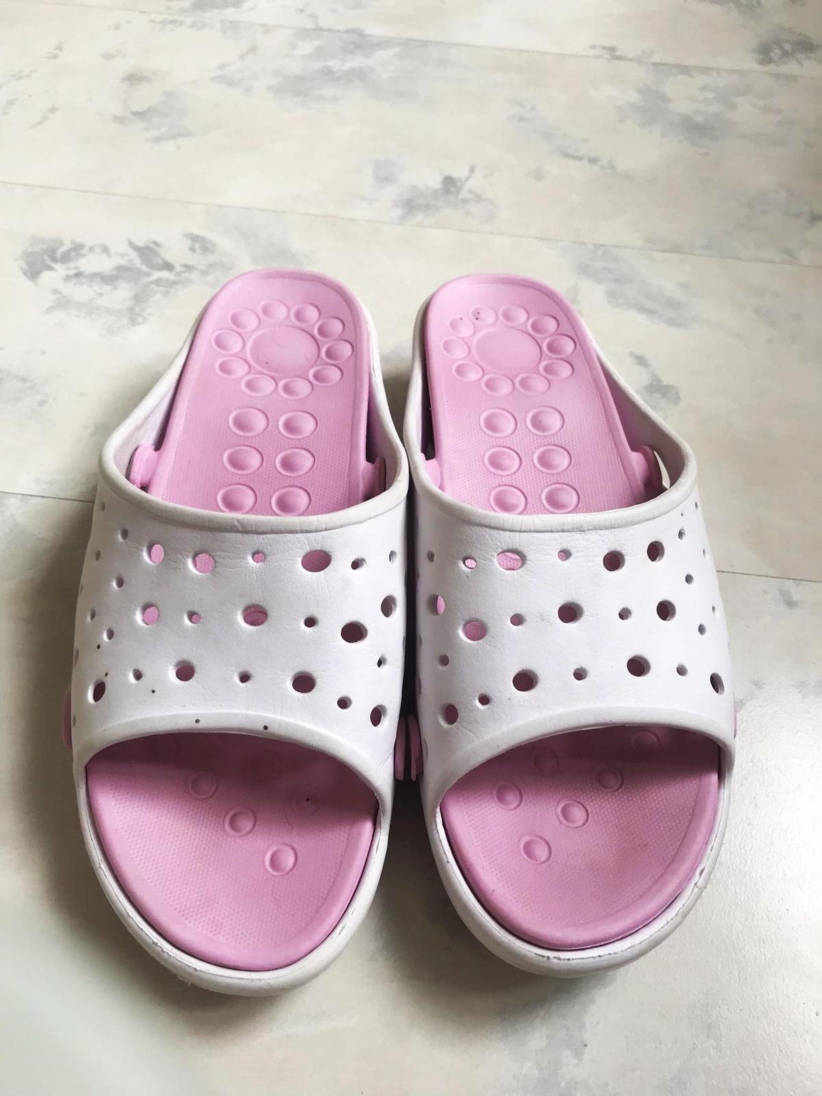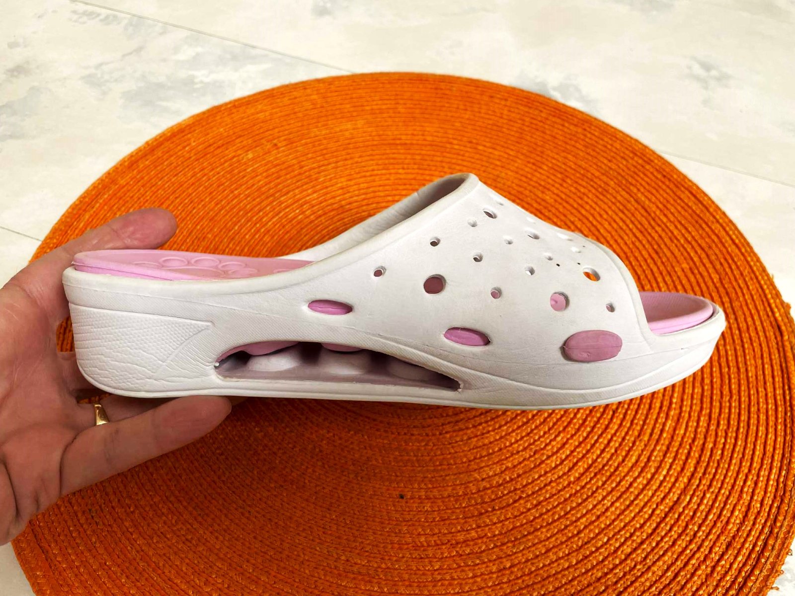 ľahké šľapky,neznosené,vhodné aj ako obuv pre zdravotníkov,alebo domáca obuv,aj na širšiu nohu,vn. dlžka je 24 cm.podpätok = 4 cm,vpredu biela časť = 2 cm