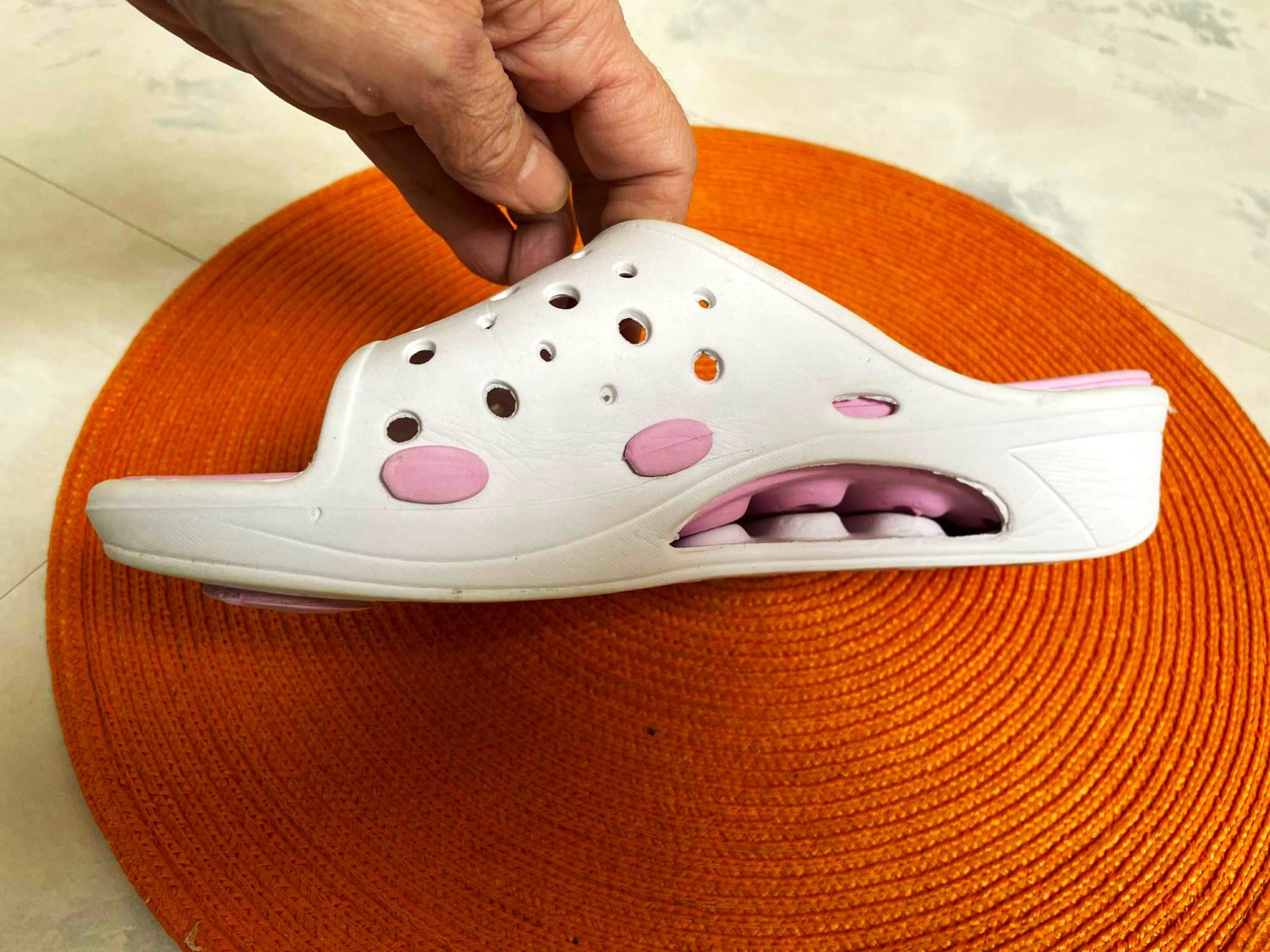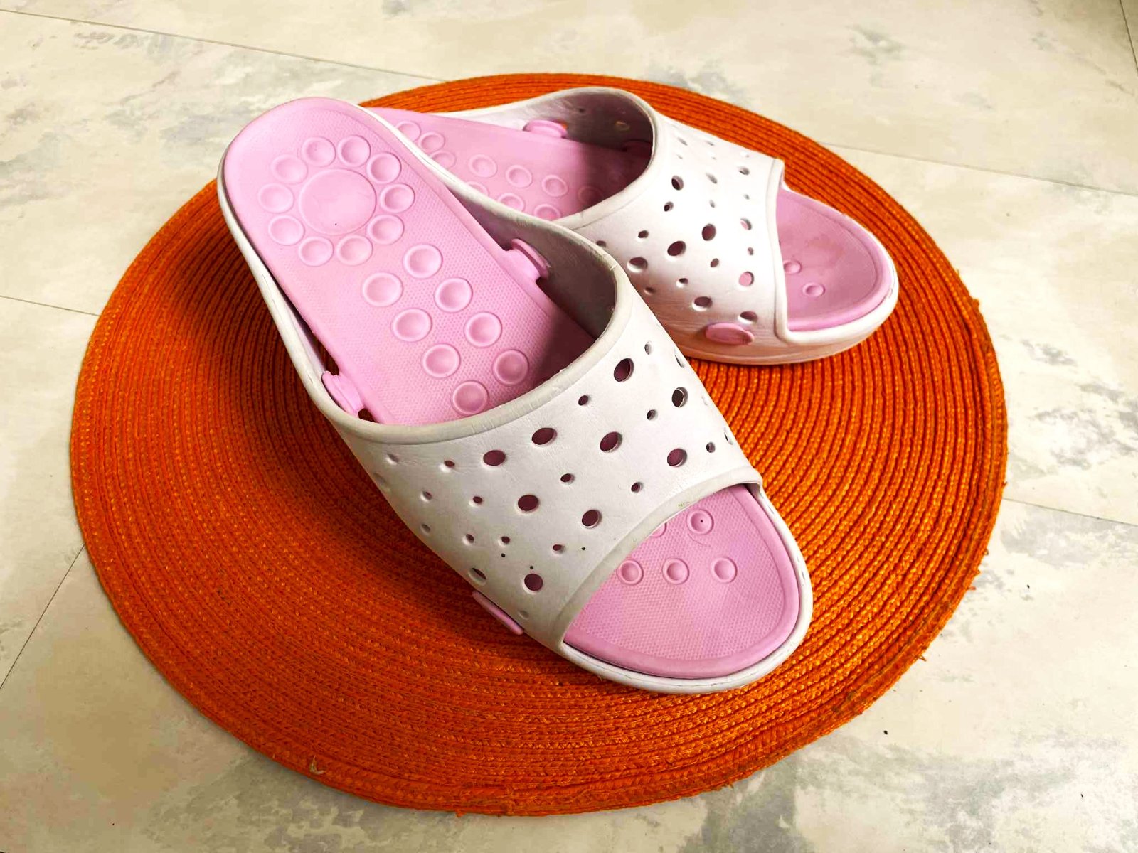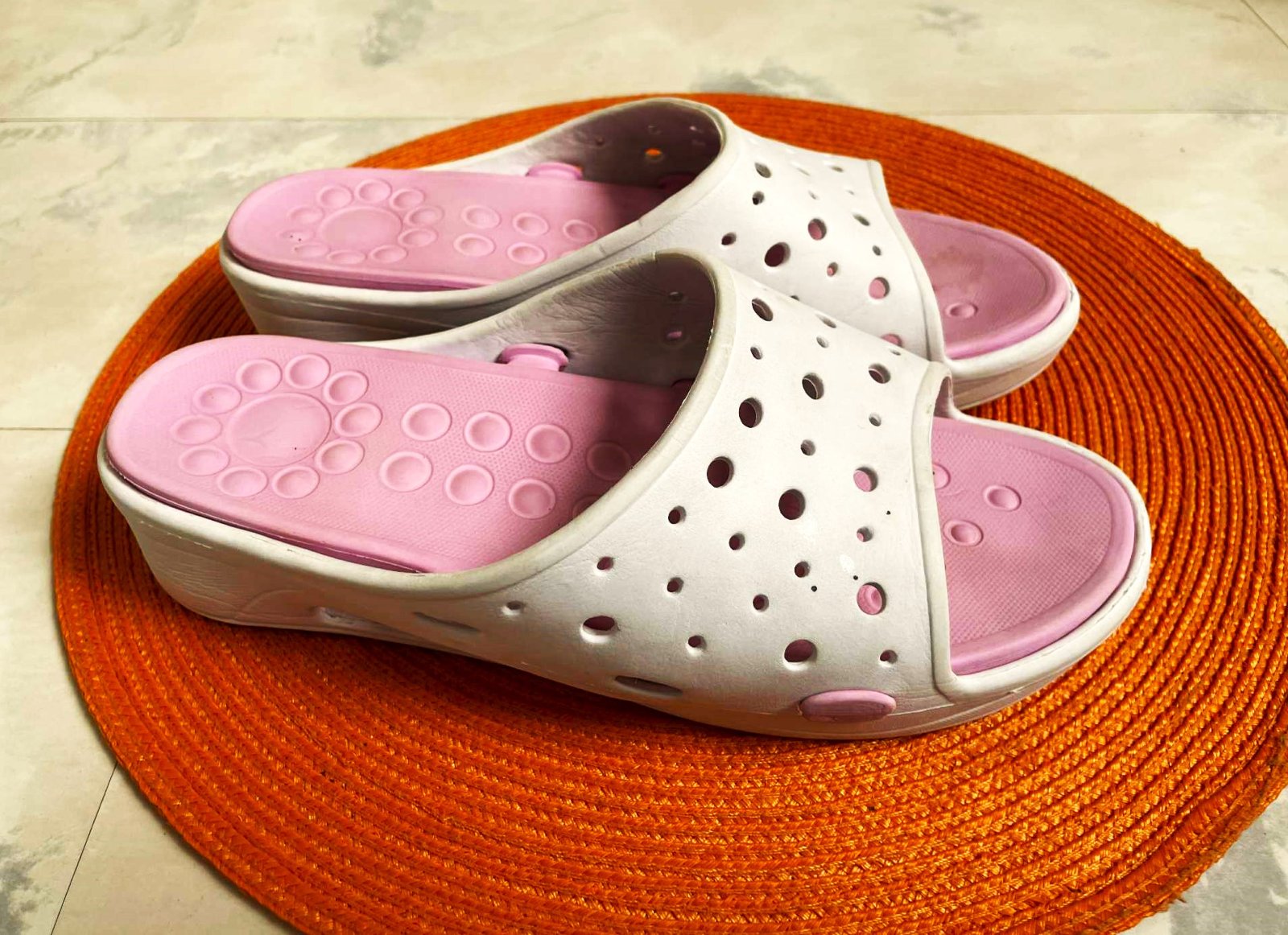 ľahké šľapky,neznosené,vhodné aj ako obuv pre zdravotníkov,alebo domáca obuv,aj na širšiu nohu,vn. dlžka je 24 cm.podpätok = 4 cm,vpredu biela časť = 2 cm