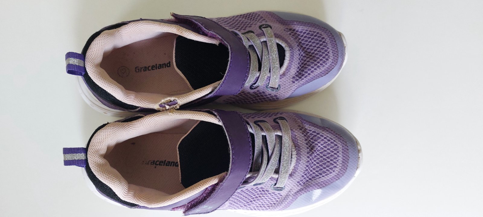 Tenisky sú na doma, v zachovalom stave. Poškodenia viď na fotkách.- oškretá špička a zobratý vnútorný bok.