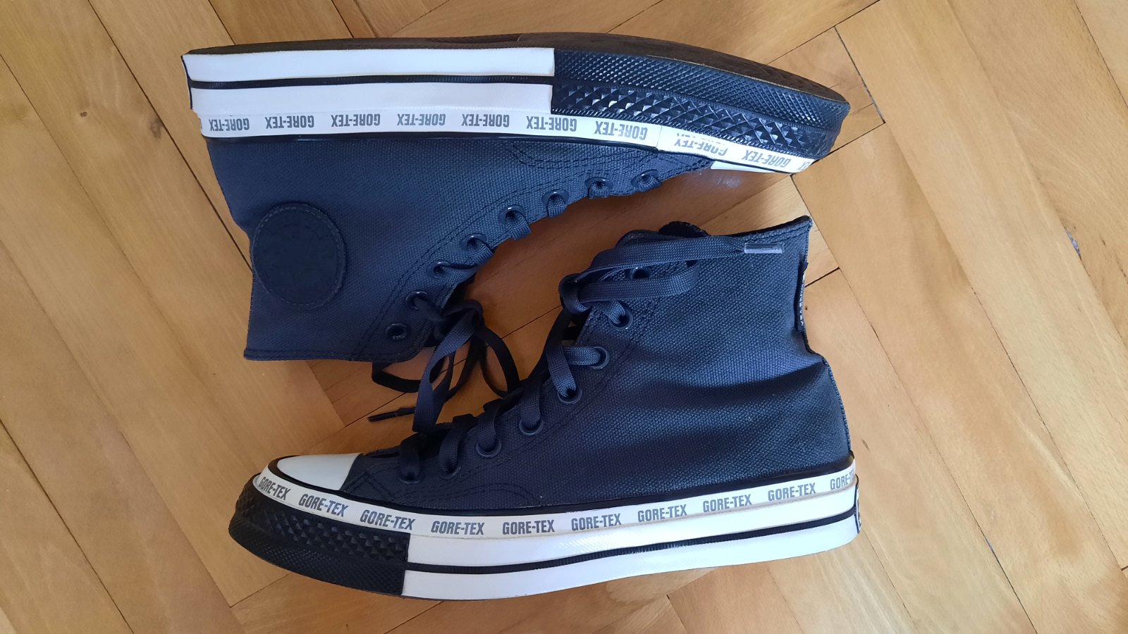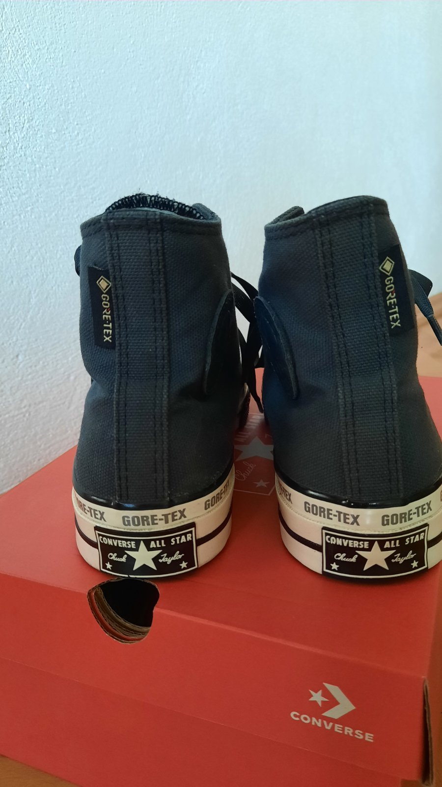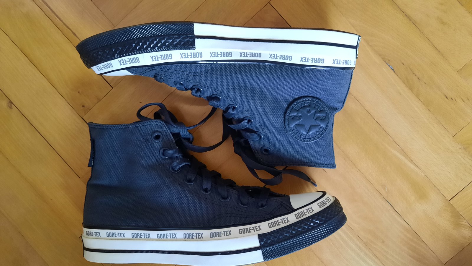 Unisex converse goretex, obuté 2x, nesadla veľkosť. Veľkosť je 39,5 je na užšiu nohu. Popis o nich a aj zmeranie je na fotkách. PC 110€. Farba je tmavo šedo čierna.