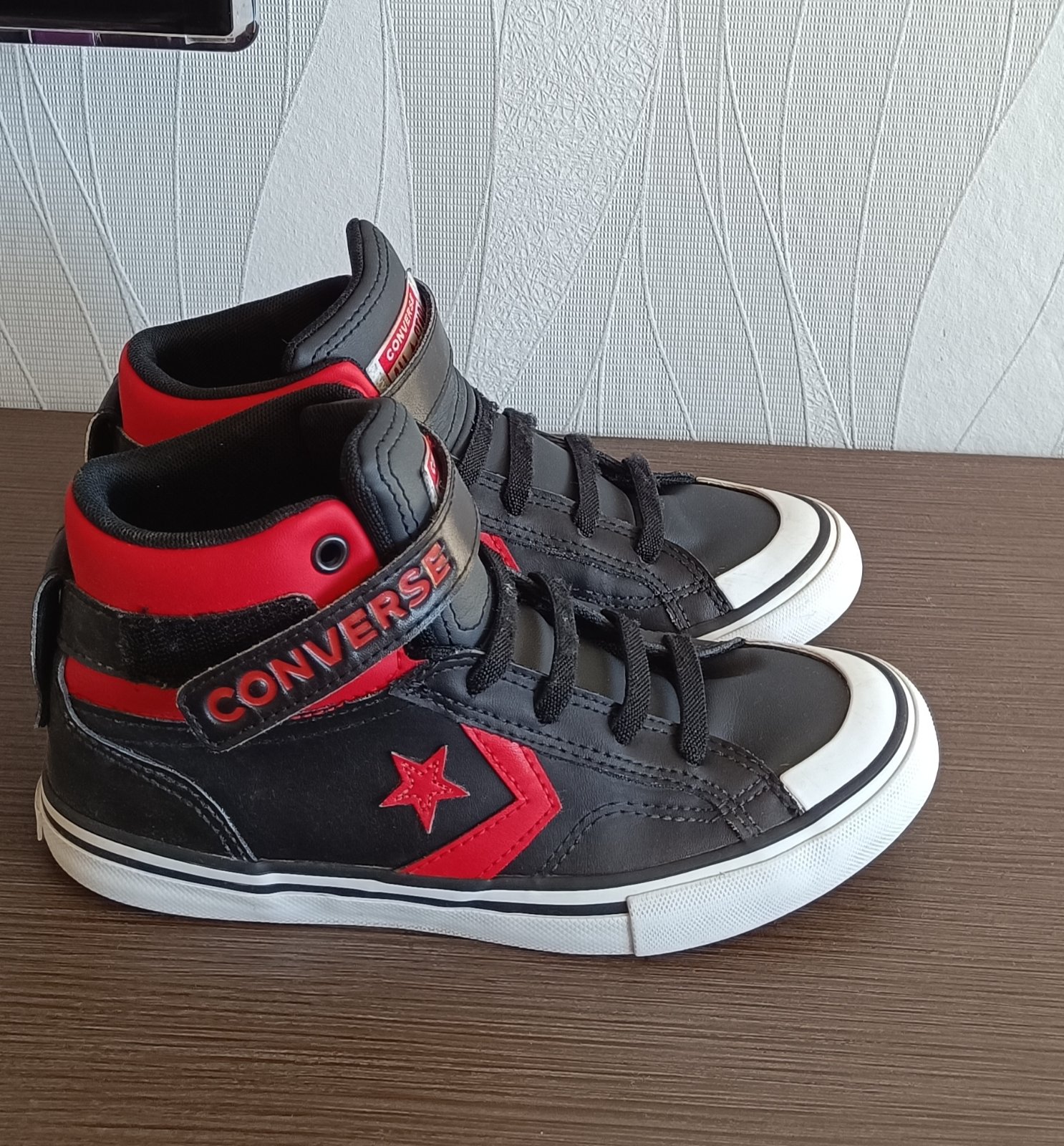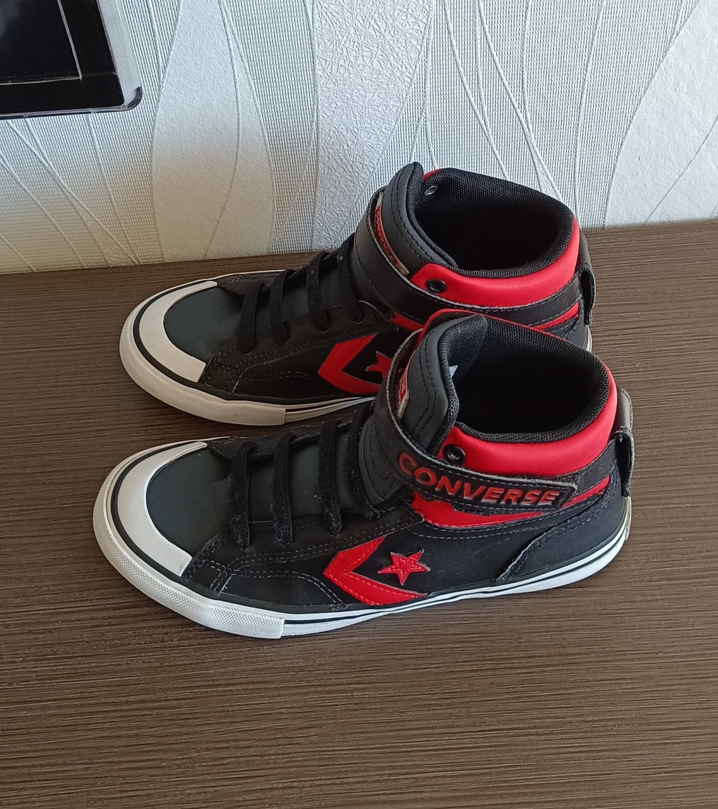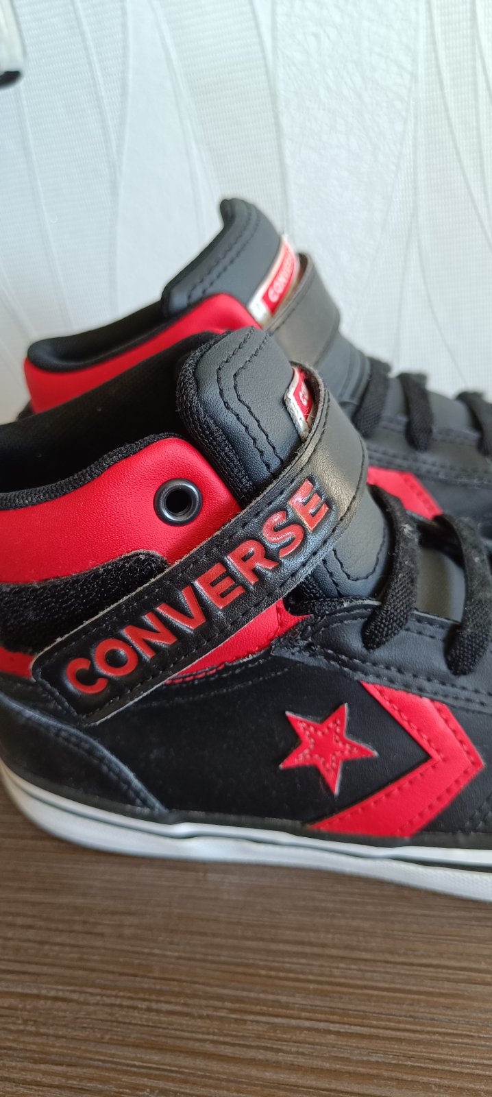 Converse Pro Blaze Strap má siluetu inšpirovanú športovými detailmi a je určená len pre deti. Farby inšpirované univerzitným štýlom vynikajú na klasickom zvršku z kože a plátna, ktorý zvýrazňuje nápis Star Chevron a nápis Converse. Pevné, elastické šnúrky sa spájajú s remienkom na členku pre jednoduché obúvanie a vyzúvanie, vďaka čomu si topánky môžete prispôsobiť strih počas nosenia. Polstrovaný jazyk a golier poskytujú väčšie pohodlie a gumená ochrana prstov chráni pred nárazmi na ihrisku.
