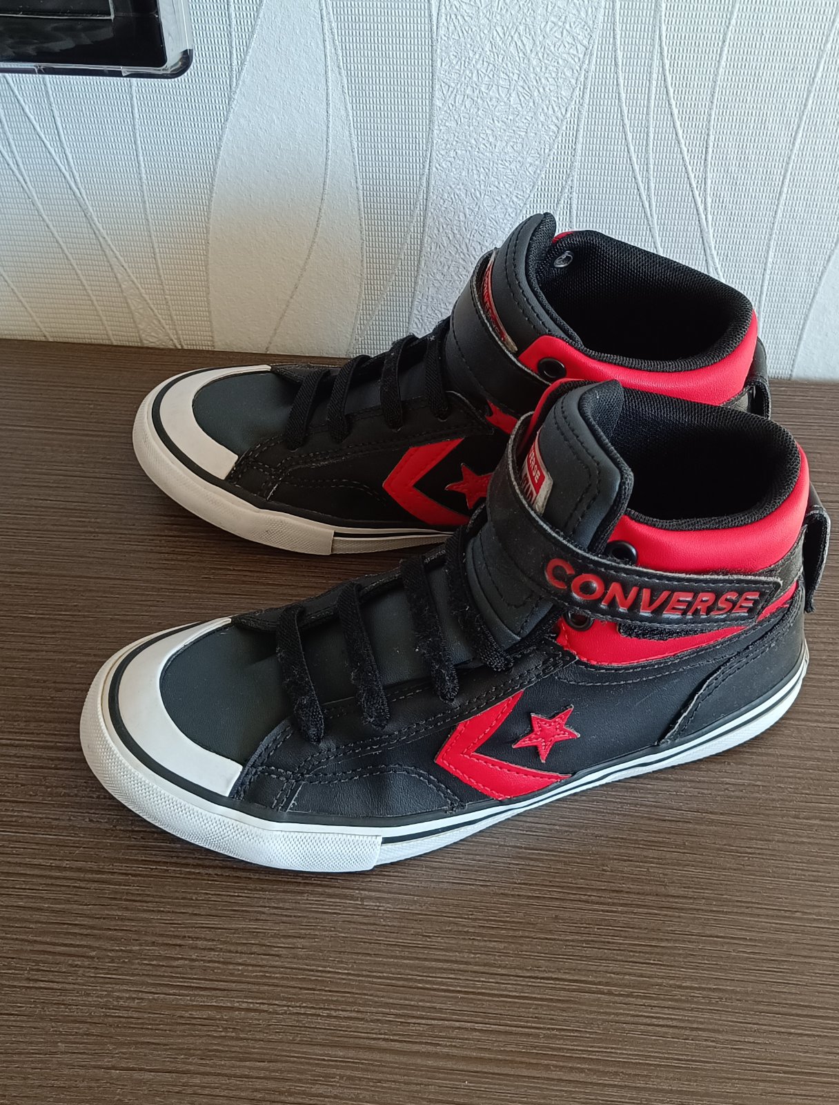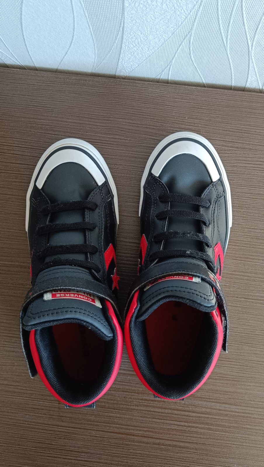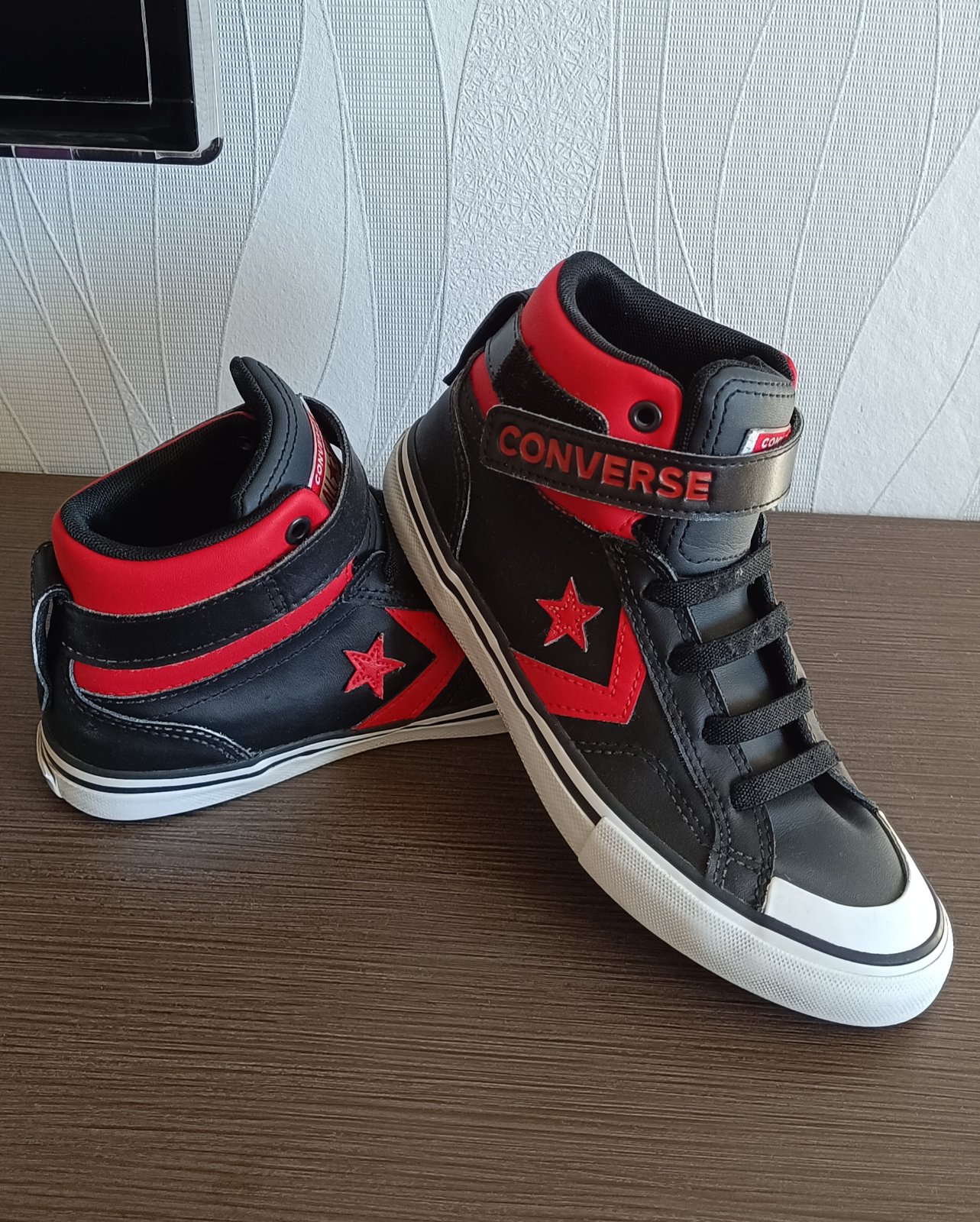 Converse Pro Blaze Strap má siluetu inšpirovanú športovými detailmi a je určená len pre deti. Farby inšpirované univerzitným štýlom vynikajú na klasickom zvršku z kože a plátna, ktorý zvýrazňuje nápis Star Chevron a nápis Converse. Pevné, elastické šnúrky sa spájajú s remienkom na členku pre jednoduché obúvanie a vyzúvanie, vďaka čomu si topánky môžete prispôsobiť strih počas nosenia. Polstrovaný jazyk a golier poskytujú väčšie pohodlie a gumená ochrana prstov chráni pred nárazmi na ihrisku.