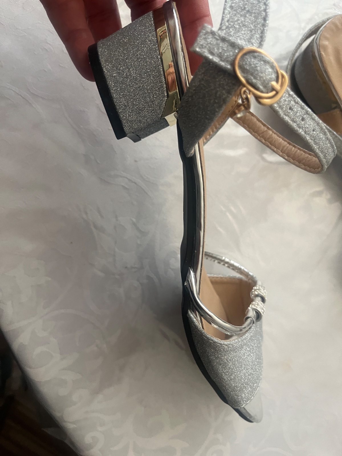 Krásne sandale objednane s amswer, pôvodná cena 35,obuté len v kostole pol hodinu, výška opetku 11cm
