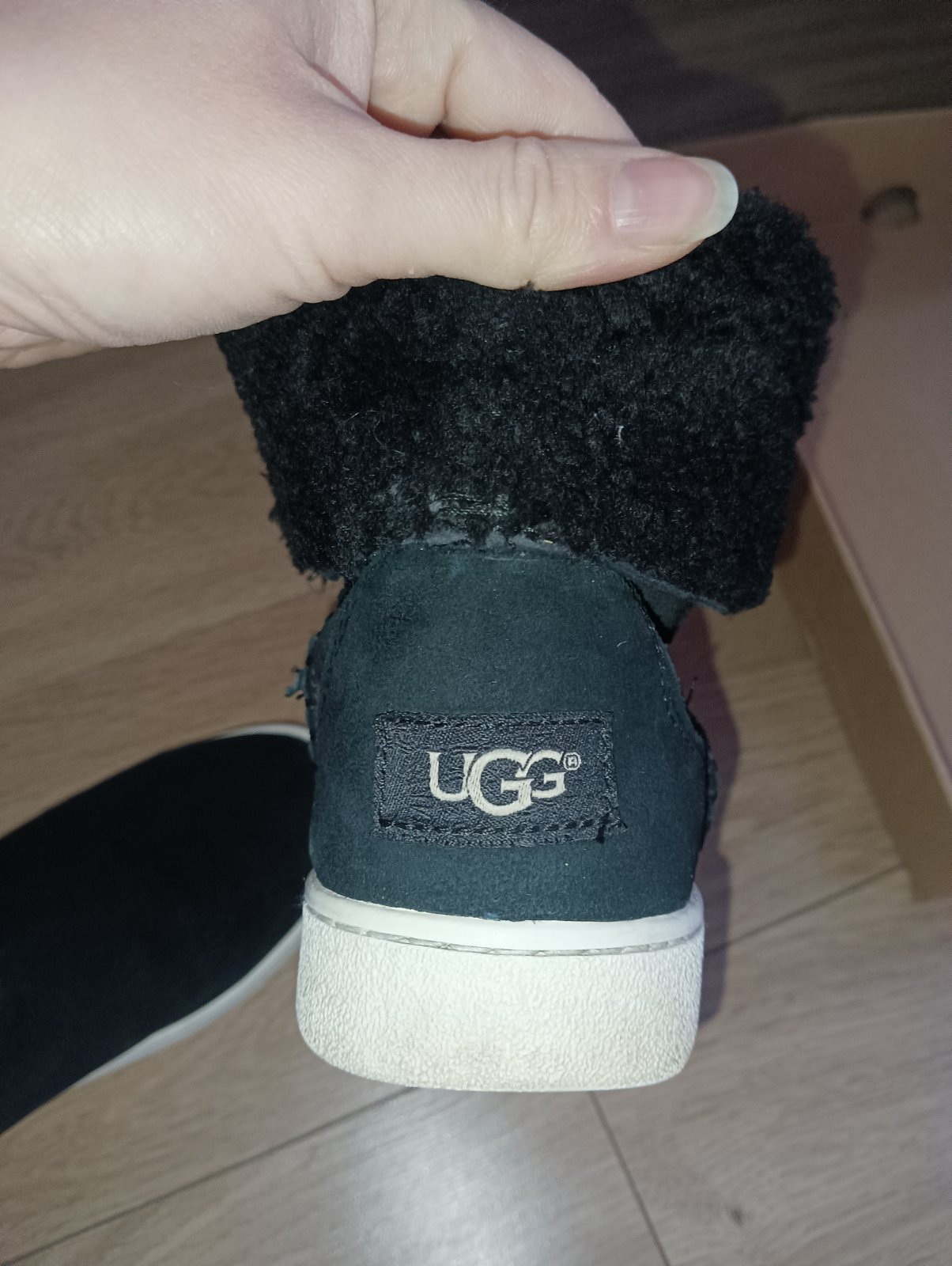 Kozene snehule UGG v ciernej farbe, velkost 38, pekny noseny stav. Vo vnutri je ovcie runo, su teplucke a nepremokave