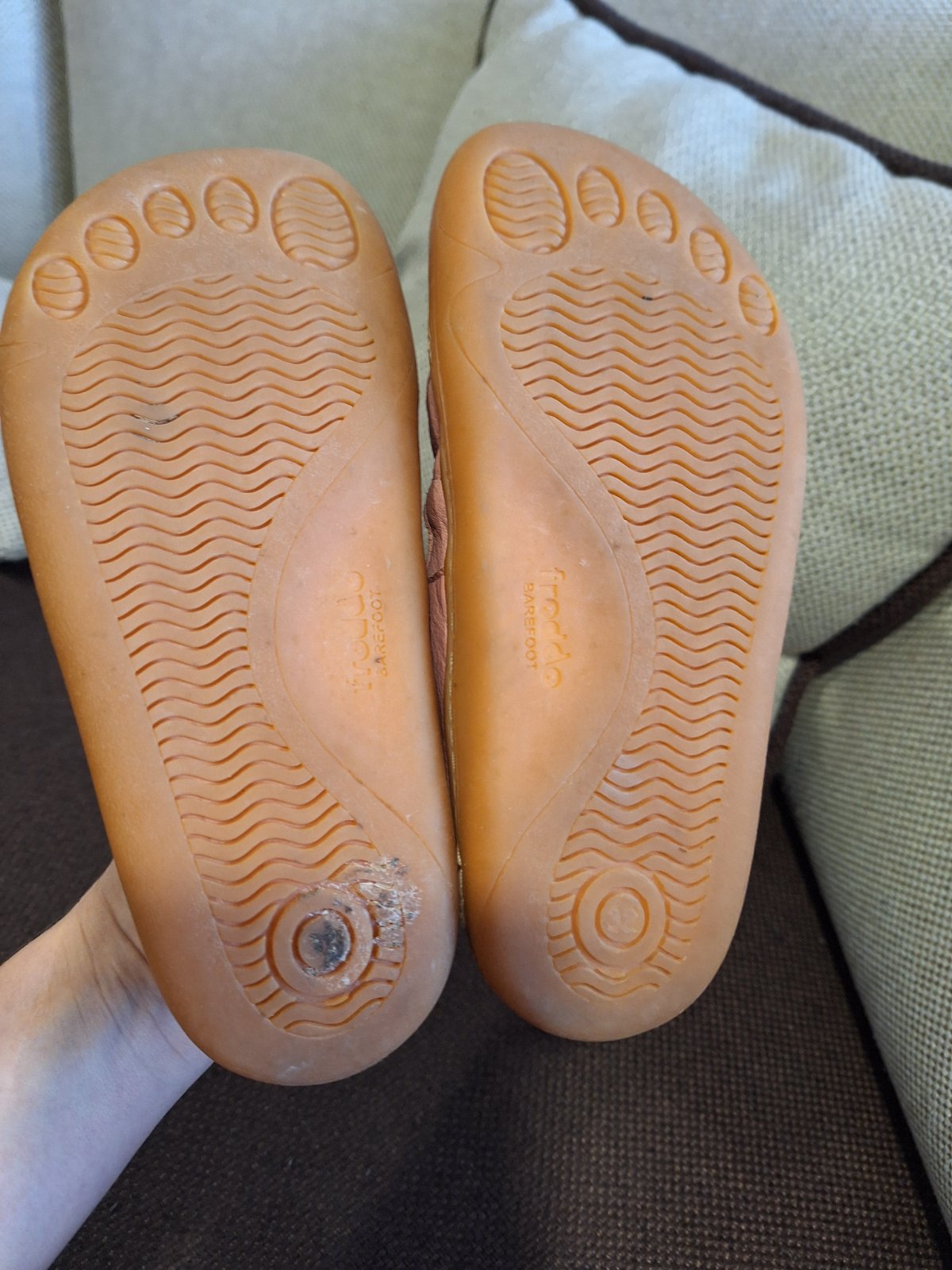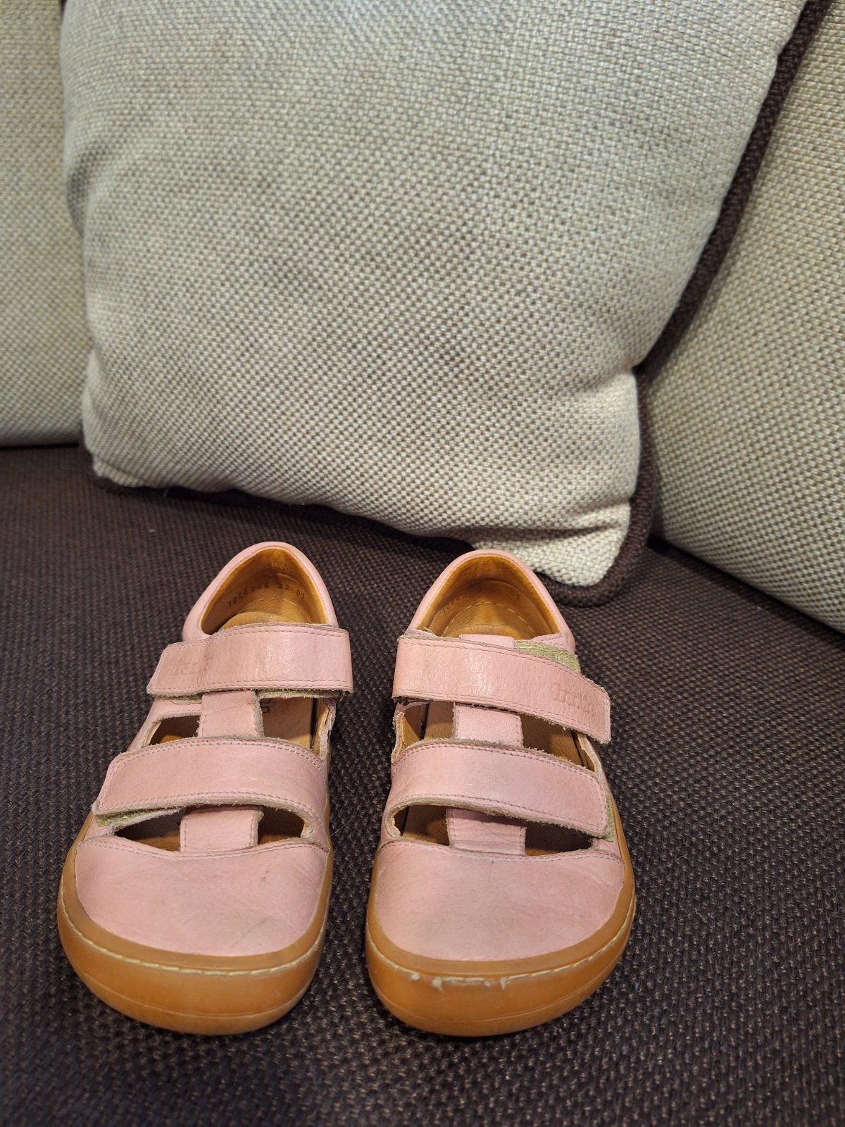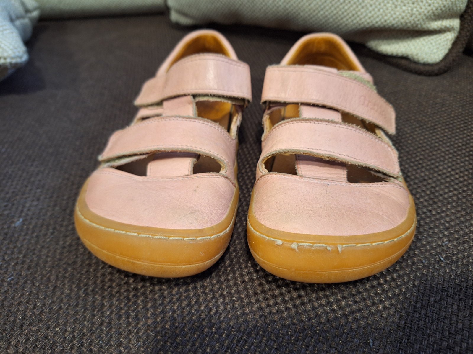 Kožené barefoot sandále,nosené bez poškodenia.Dĺžka vložky 21,2cm,šírka 7,9cm.