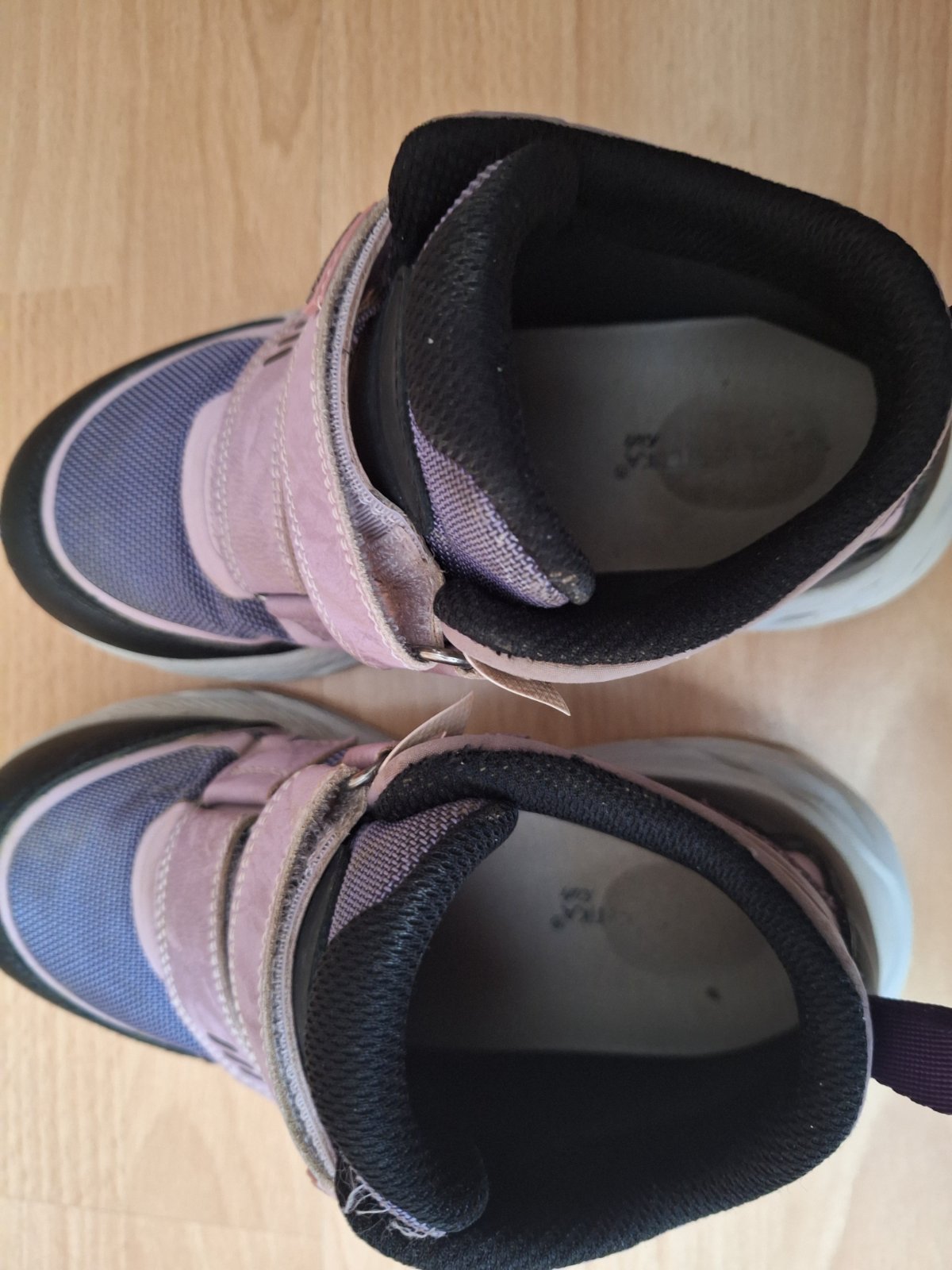 Topánky nie sú vyteplené, určené skôr na prechodné obdobie. Sú vo veľmi dobrom stave, akurát na jednej špičke je malá odreninka. Známky nosenia sú viditeľné pri podrobnejšom prezeraní, najskôr povrchové šmuhy po praní. Všetko je zachytené na fotkách.