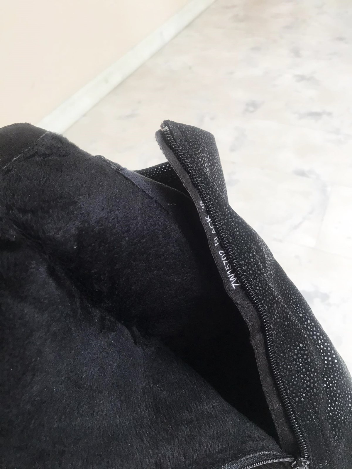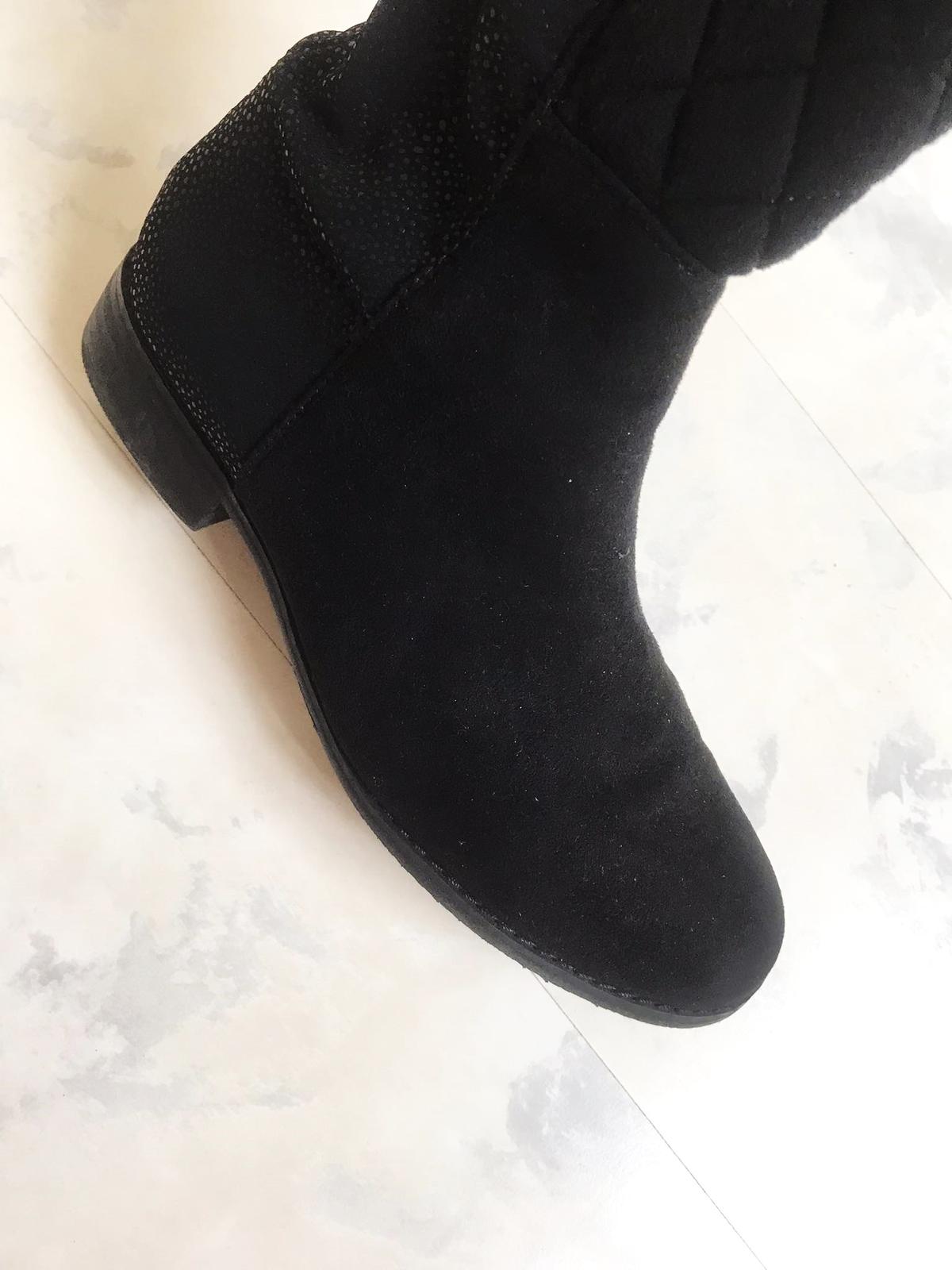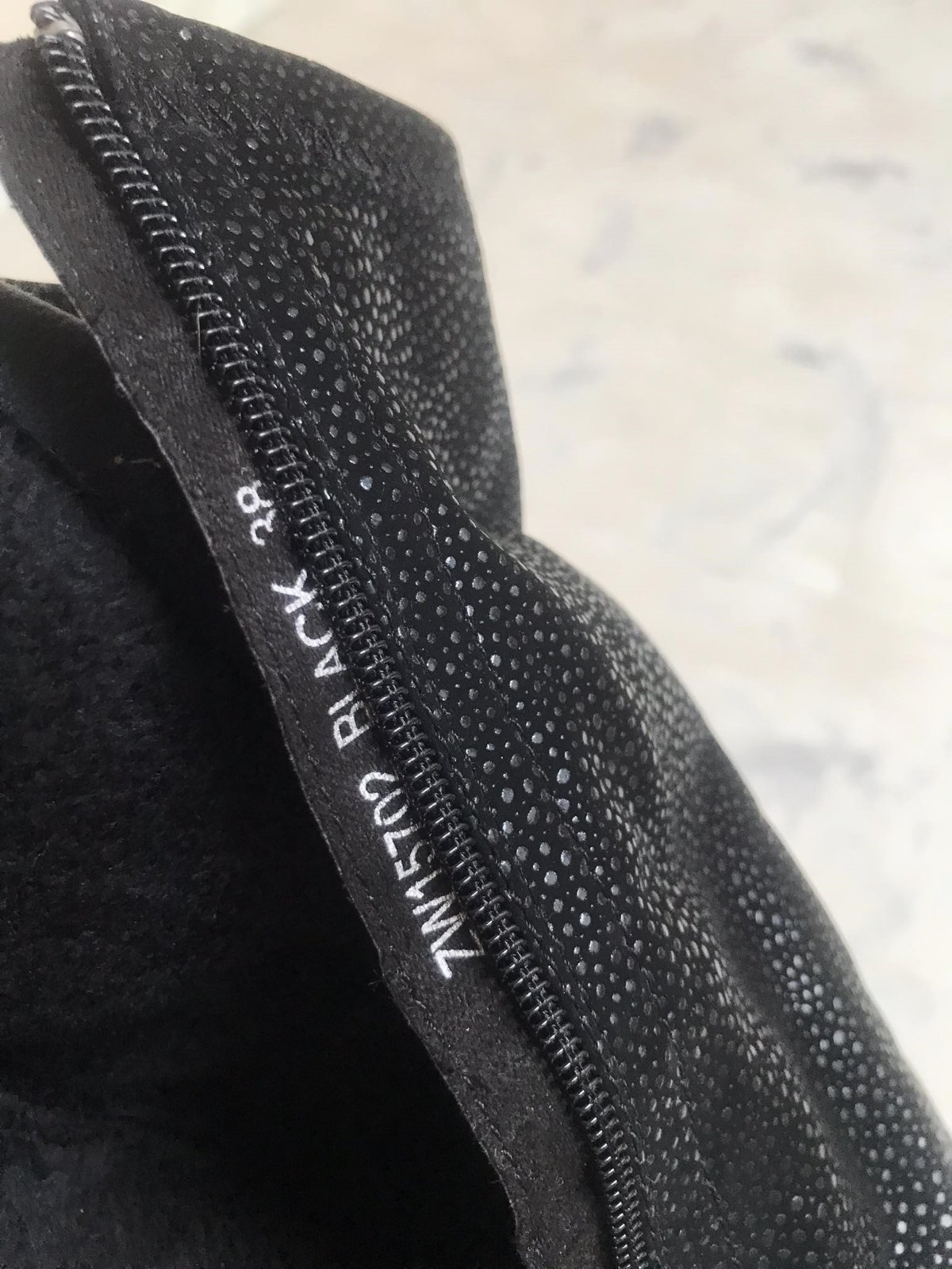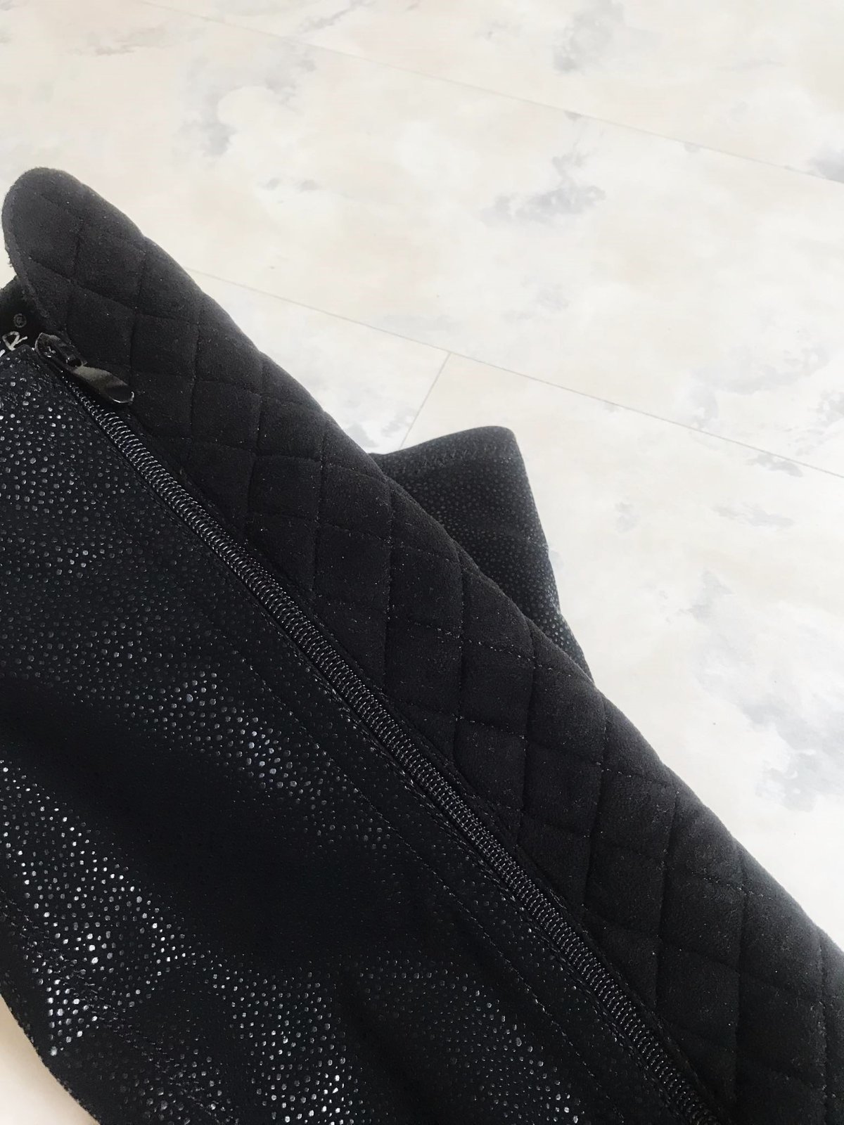 vysoké vpredu zateplené moderné jazdecké čižmy,1 x obuté - ako nové, zvnútra zips,na povrchu látkový semiš preštepovaný - v prednej časti,zadná časť impregnovaná látka s jemnými trblietkami,veľmi efektné a trendové,top kúsok,krásne sedia na nohe,tzv. jazdecký štýl,ľahúčke,super údržba,porch v látkovej úprave podobnej nízkovlasovému semišu.