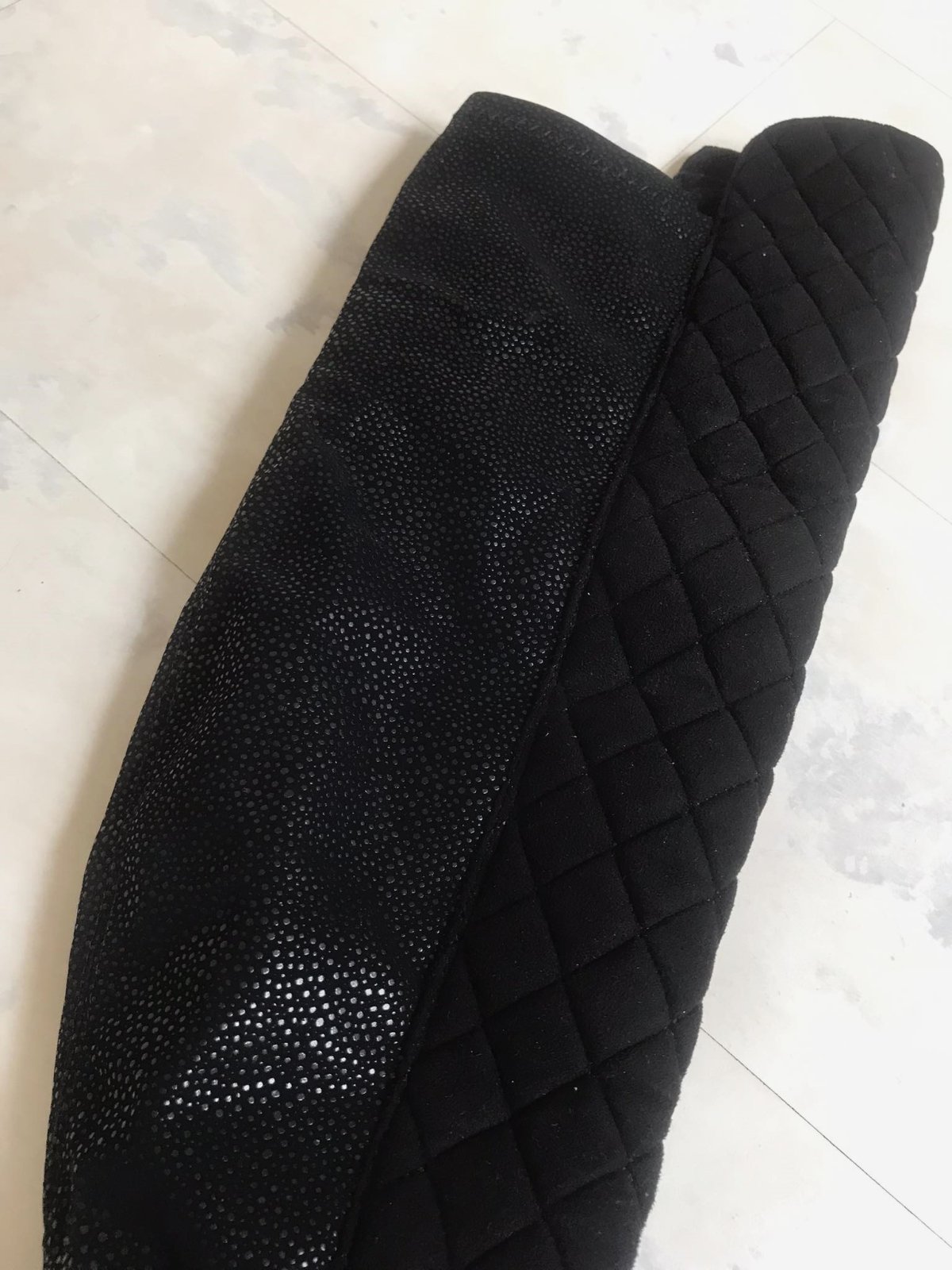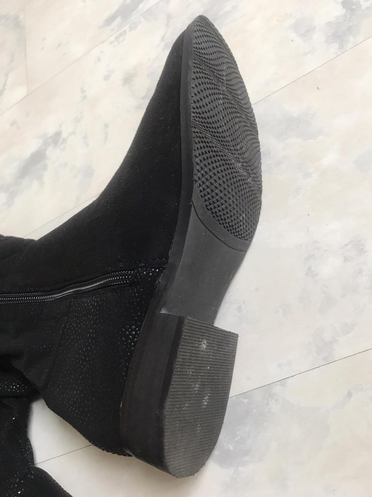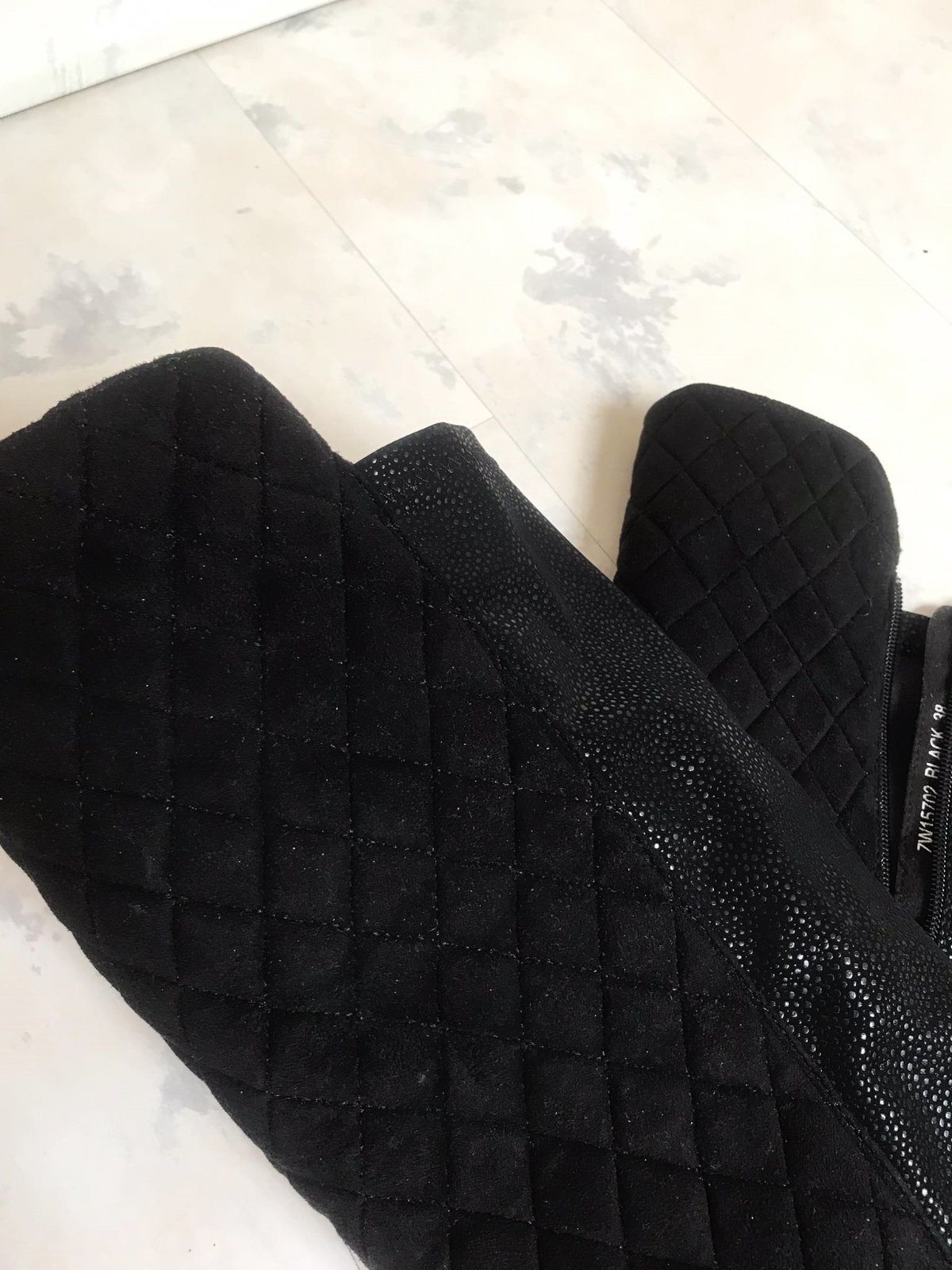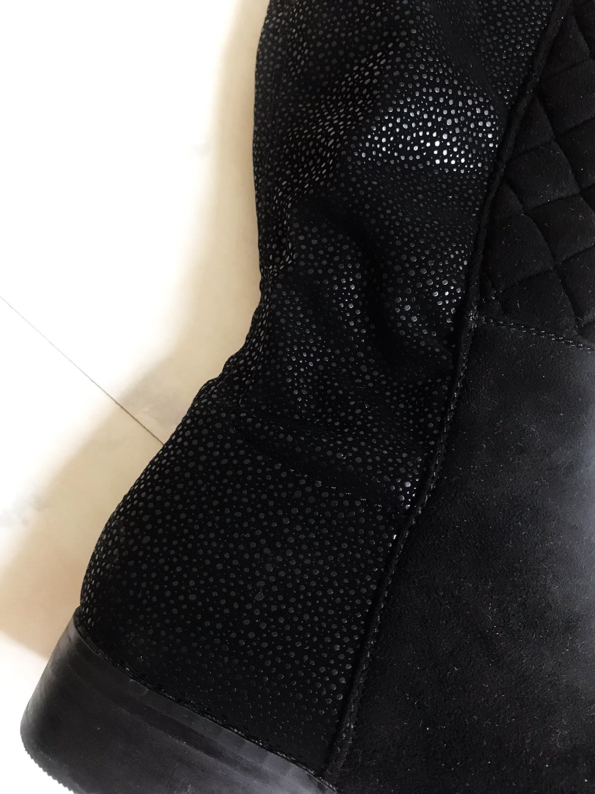vysoké vpredu zateplené moderné jazdecké čižmy,1 x obuté - ako nové, zvnútra zips,na povrchu látkový semiš preštepovaný - v prednej časti,zadná časť impregnovaná látka s jemnými trblietkami,veľmi efektné a trendové,top kúsok,krásne sedia na nohe,tzv. jazdecký štýl,ľahúčke,super údržba,porch v látkovej úprave podobnej nízkovlasovému semišu.