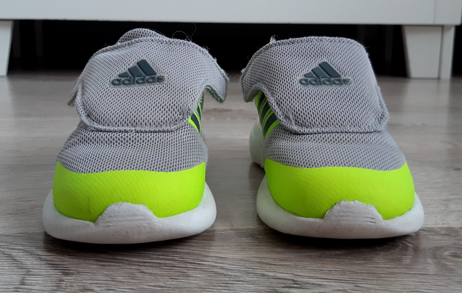 Pohodlné chlapčenské tenisky vo veľmi dobrom nosenom stave (už na 1. pohľad vidieť, že nie sú ako nové - trčiace nitky, obdraté špičky (pre lepšiu predstavu treba detailne popozerať všetky fotky)). Tenisky sú určené na každodenné nosenie; majú okrúhlu gumenú špičku a zapínanie na suchý zips. Vďaka systému priedušných otvorov sa v nich synčekovi vôbec nepotili nohy, čo bolo v našom prípade ozaj veľké plus.
