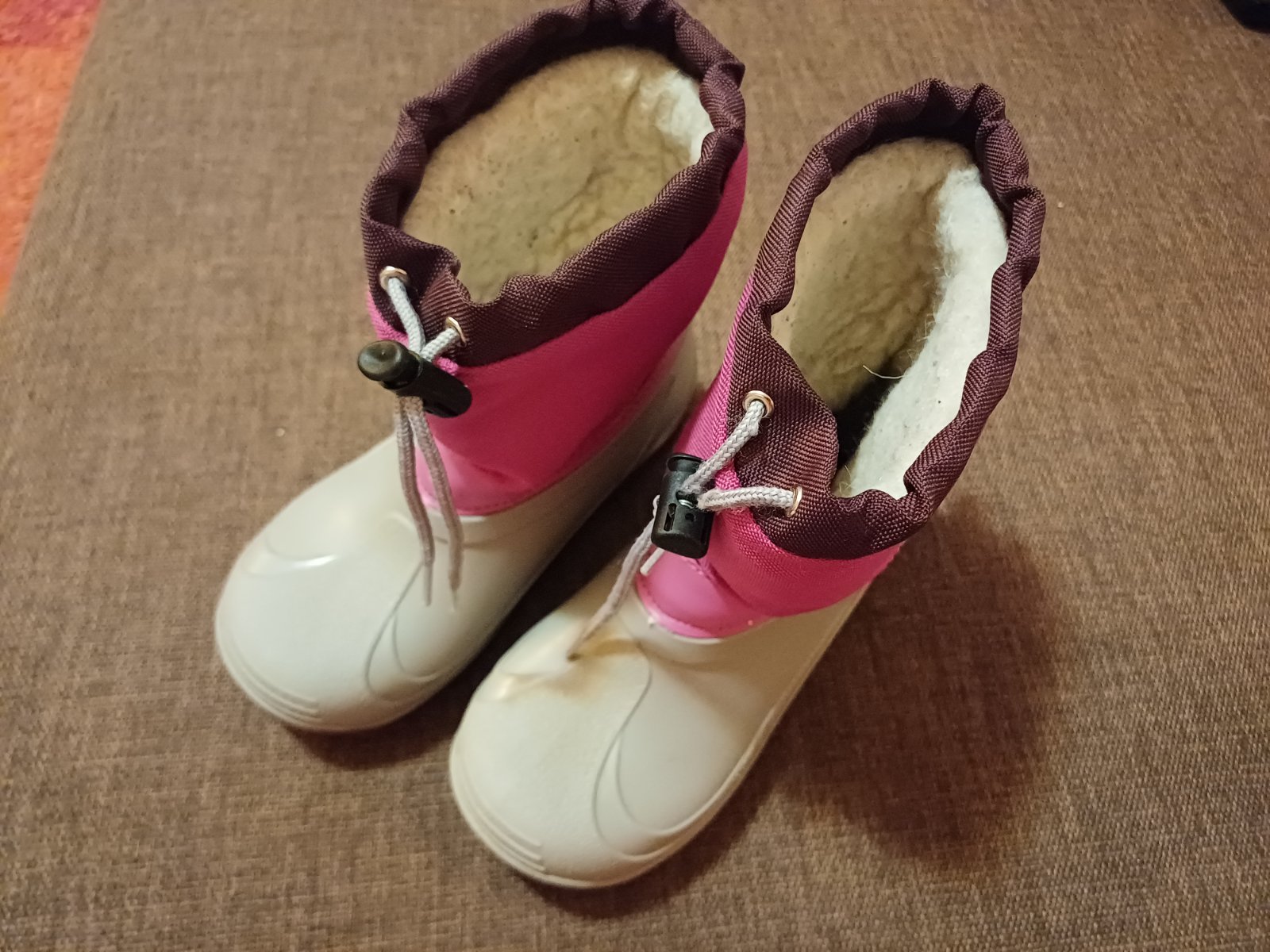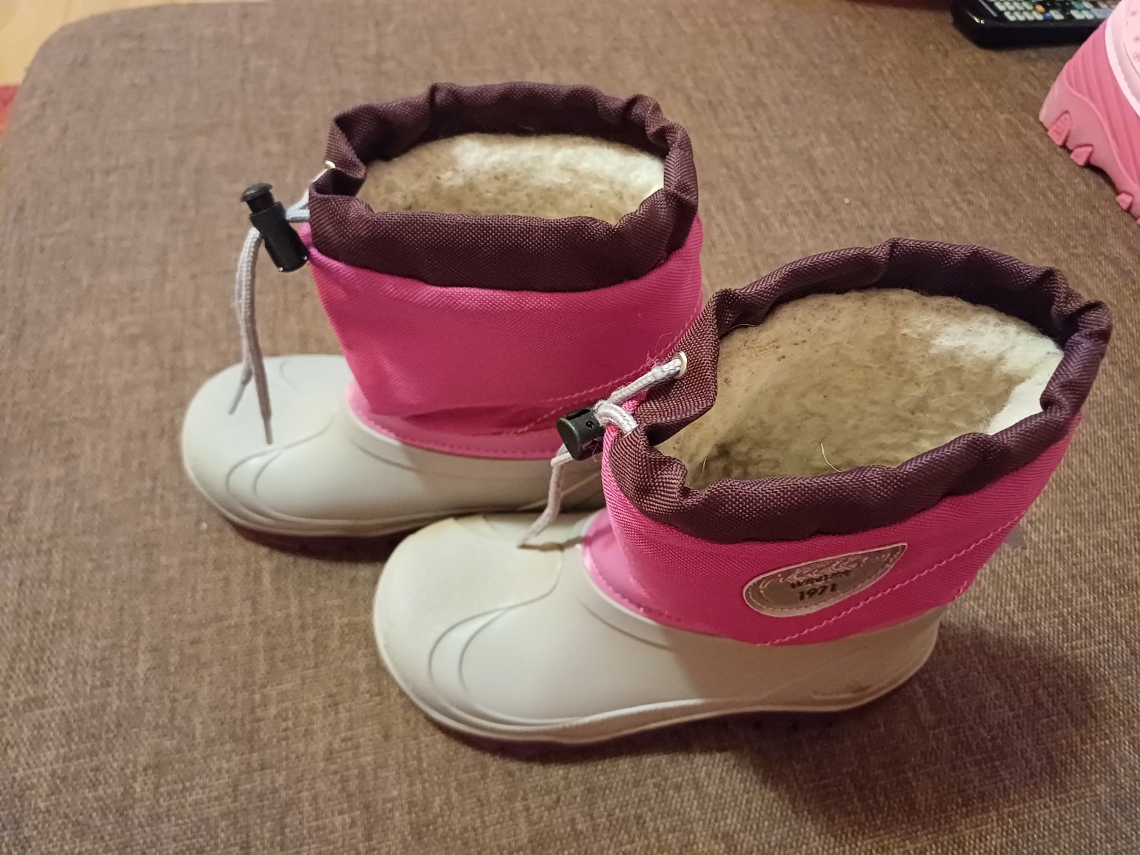 Ponúkam nosene zimné čižmičky. Suché zipsy držia. V predu málinko okopane ale myslím že na doma stále super :) Teraz som si všimla (kuk foto) jedna topánočka vpredu vyzerá že sa ide odlepiť ta šp...