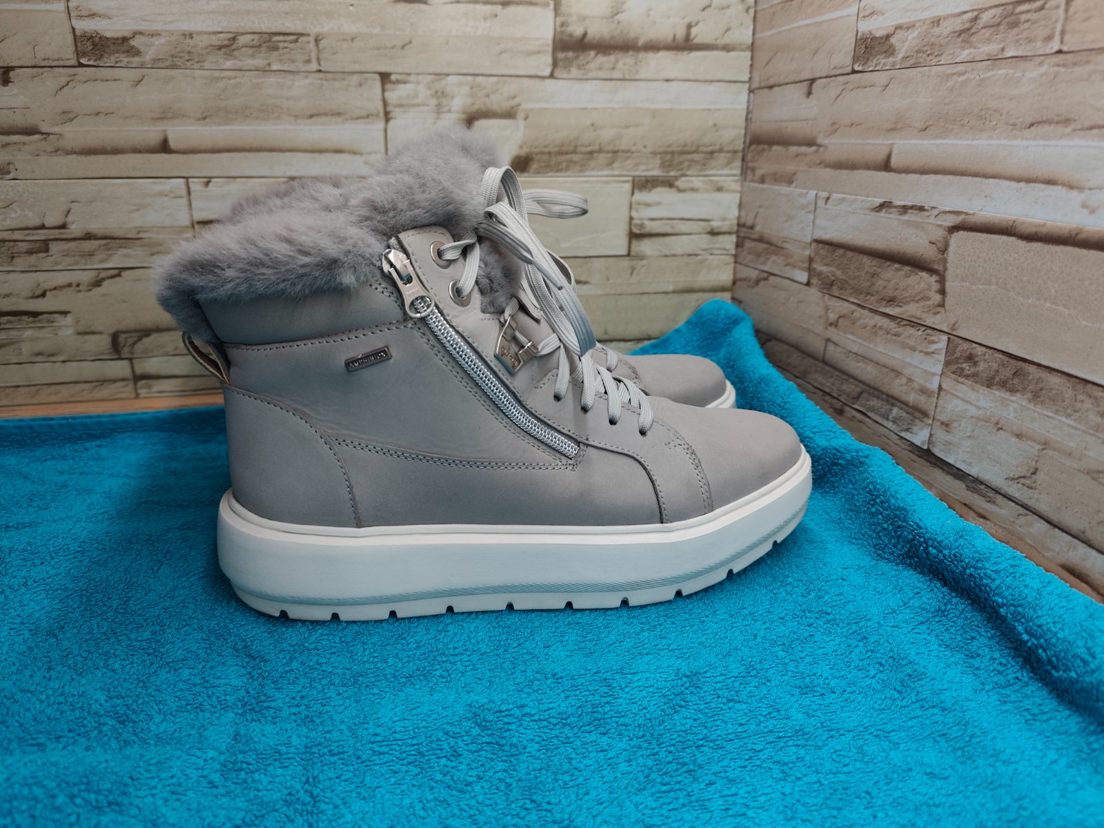 Geox 40 - dámske kožené šedé členkové zimné topánk
