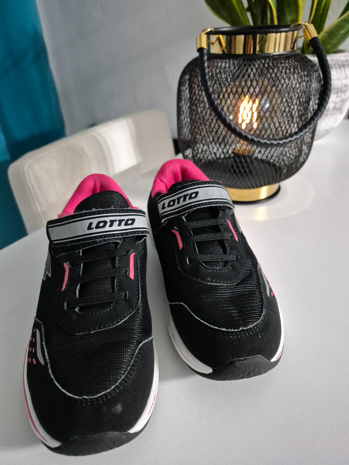 Tenisky Lotto vo veľmi dobrom stave. Ľahké, praktické. Ľahko sa obúvajú - gumičky a suchý zips, všetko v super stave. VD cca 21,5 cm