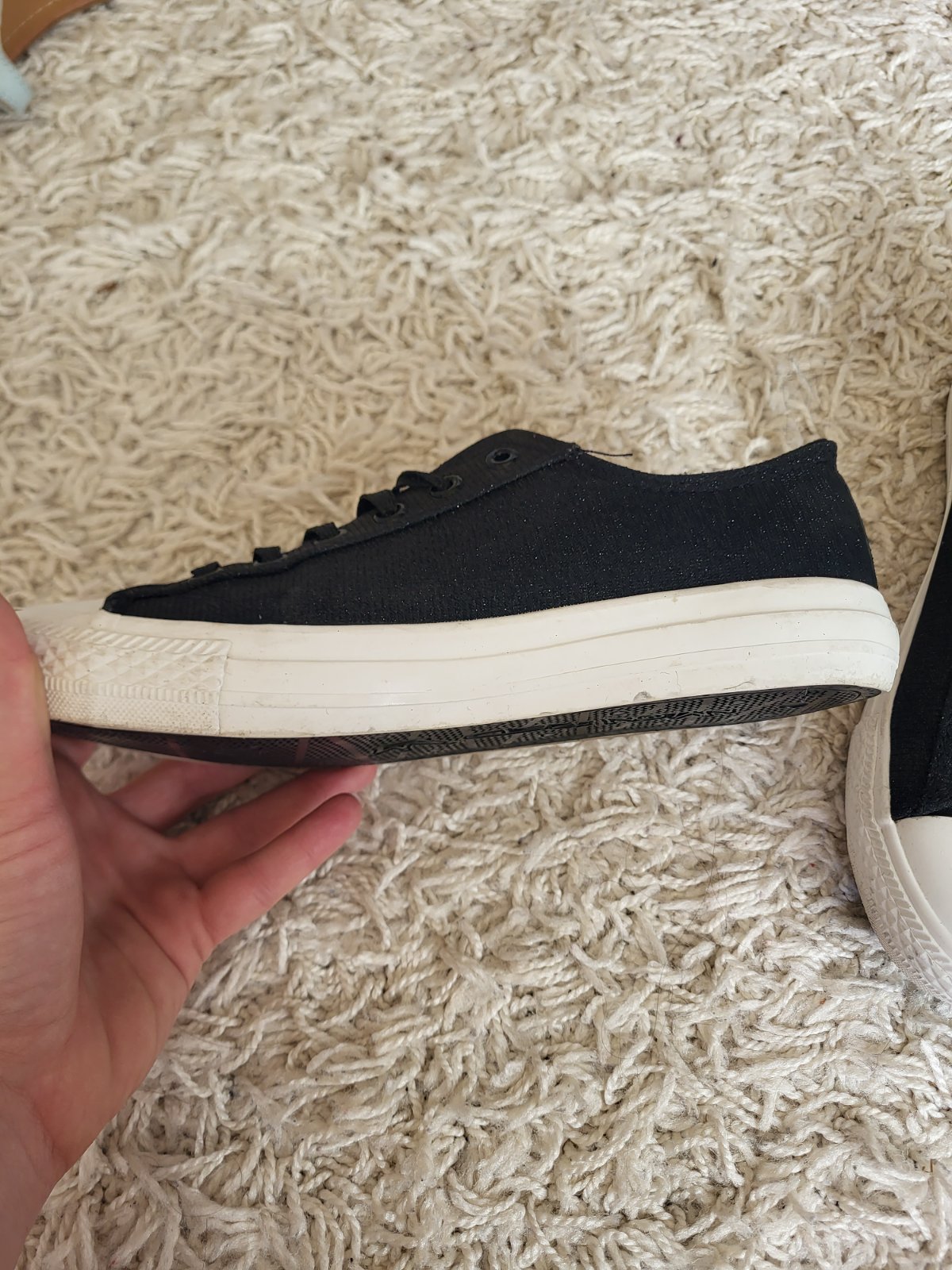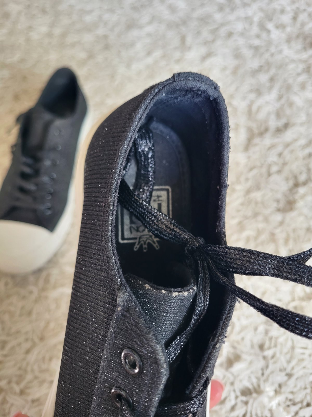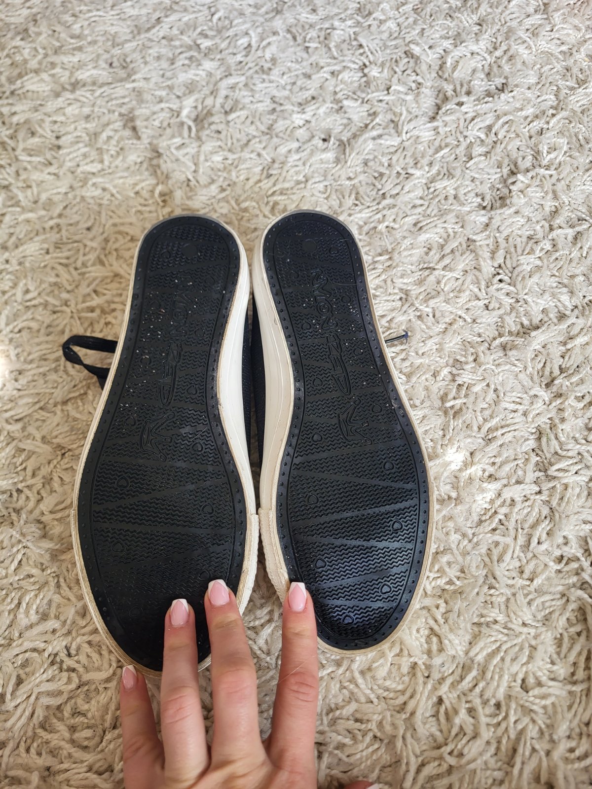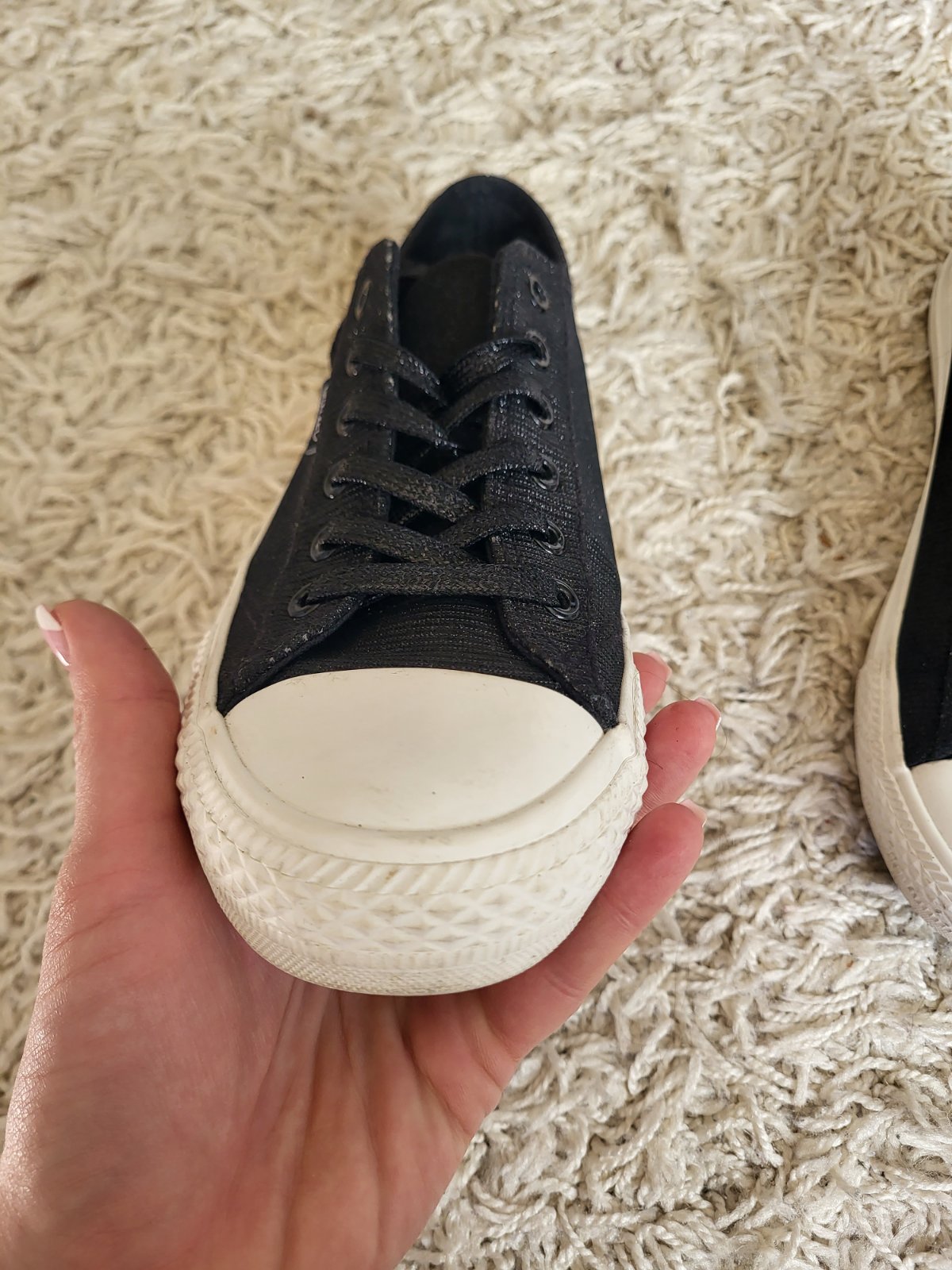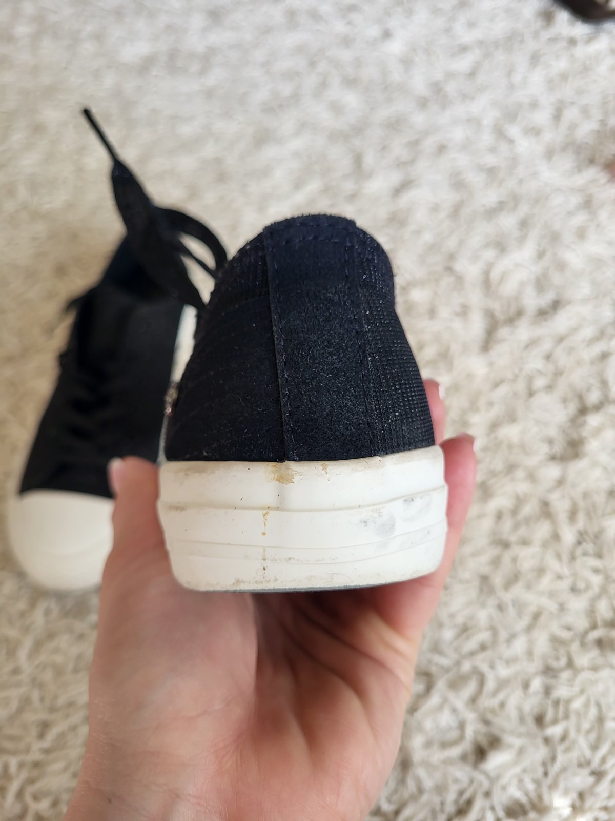 -stav vidno na fotkách, majú známky nosenia: šmuhy na podrážke, strata farby/trblietok ako je jazyk a okolie viď fotky, na prvý pohľad to nie je nejak extra vidieť