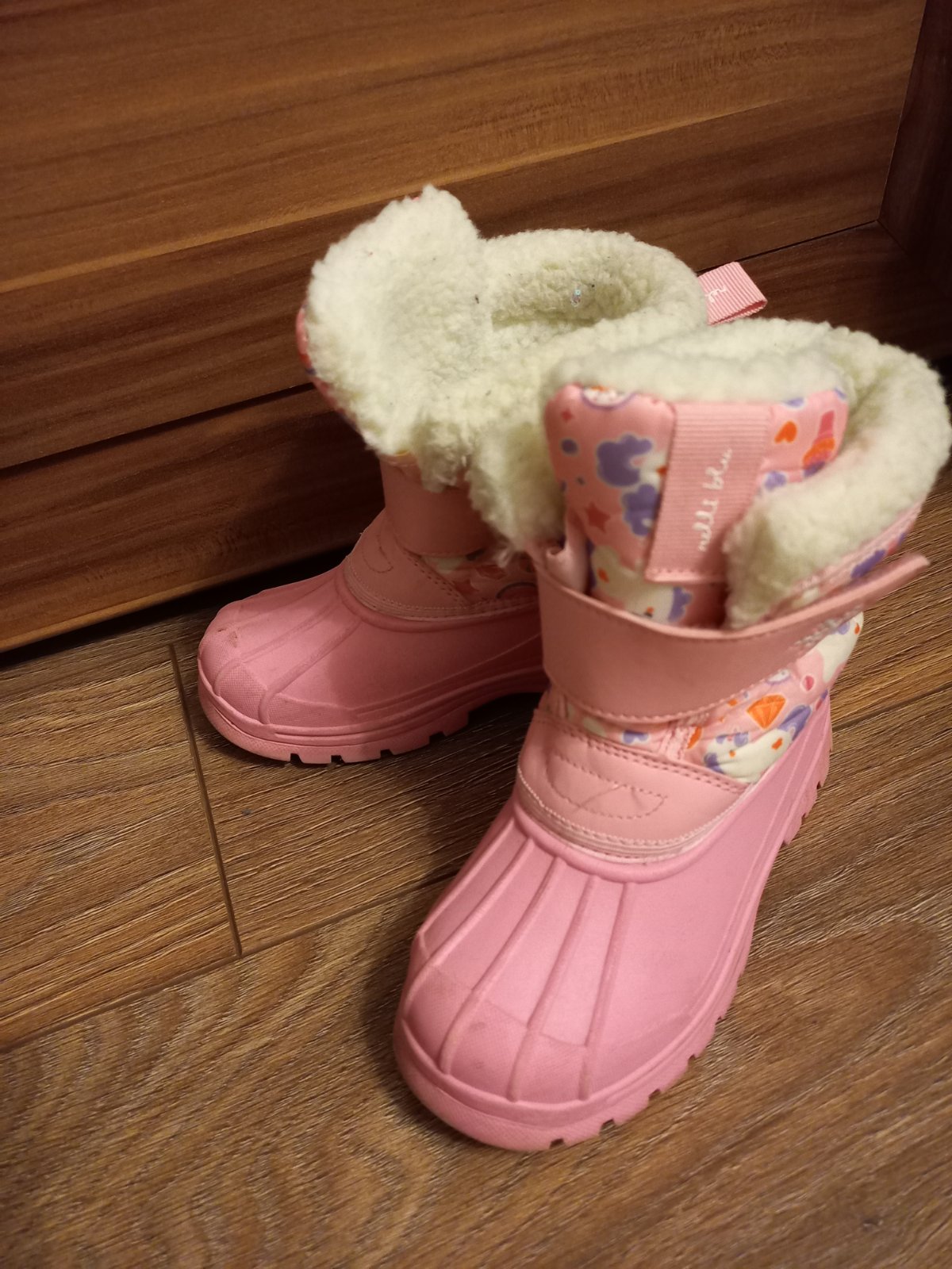 V predu trošku okopané , ale stále veľmi pekné,zateplené.Do škôlky ešte určite poslúžia. Vnútorná dĺžka 18cm