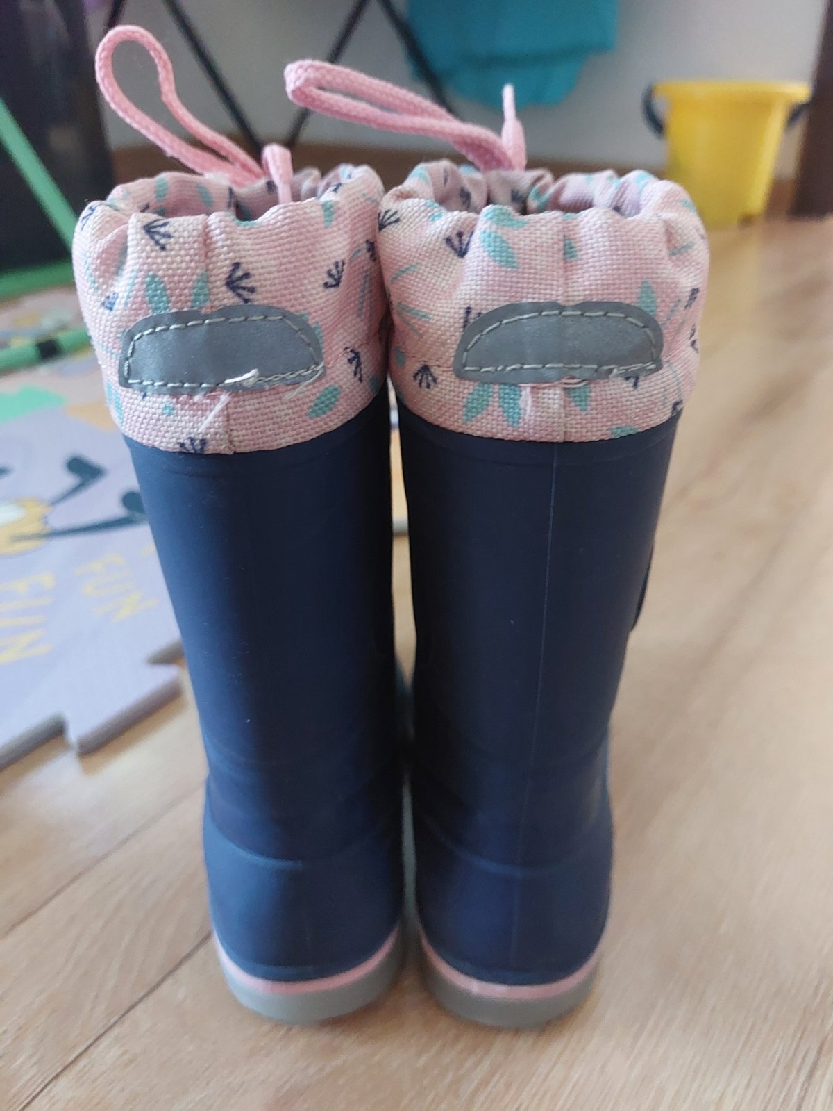 Gumáky sú nosené, na pohľad super, len nálepky na boku sú trochu ošúchané. Stále pekne blikajú. Podrážky na pätách sú zošúchané, lebo detská najradšej v gumákoch blikali :) Ale netrčie do nich. Cen...