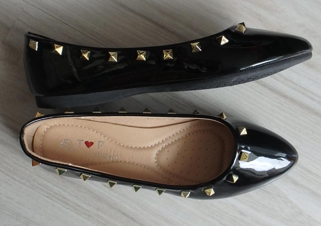 Čierne lakované balerínky, v. 38