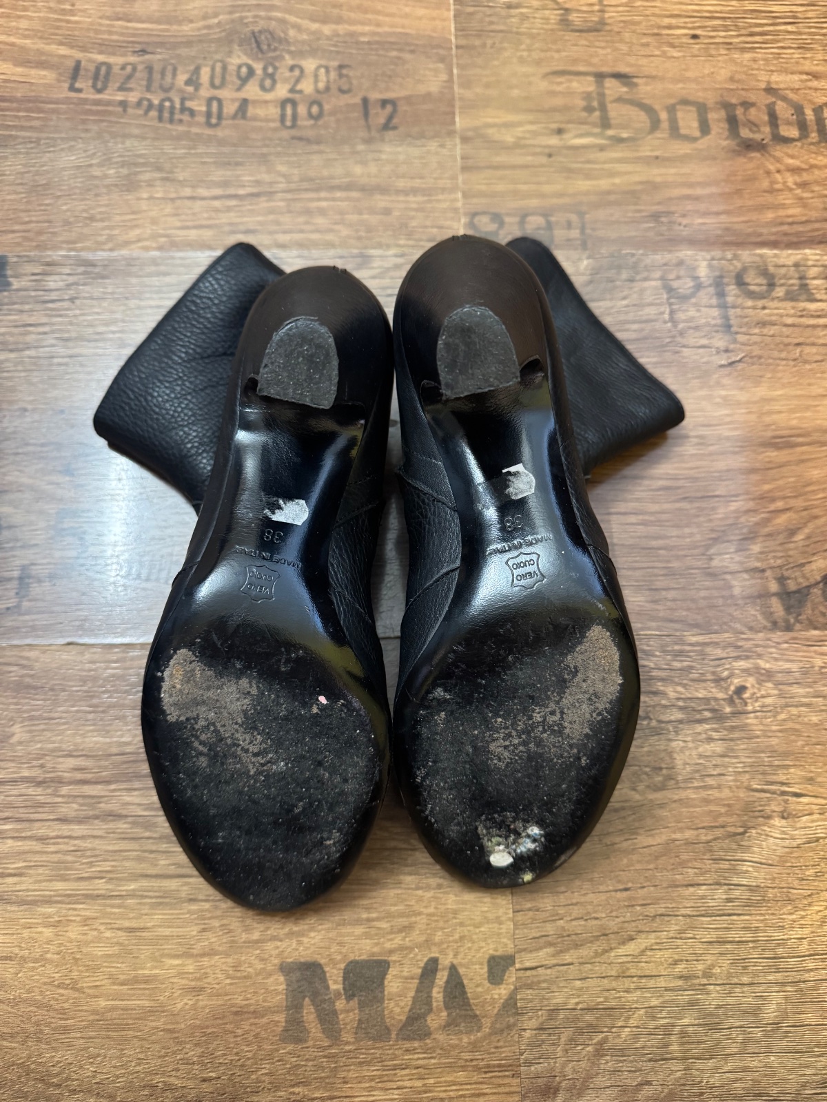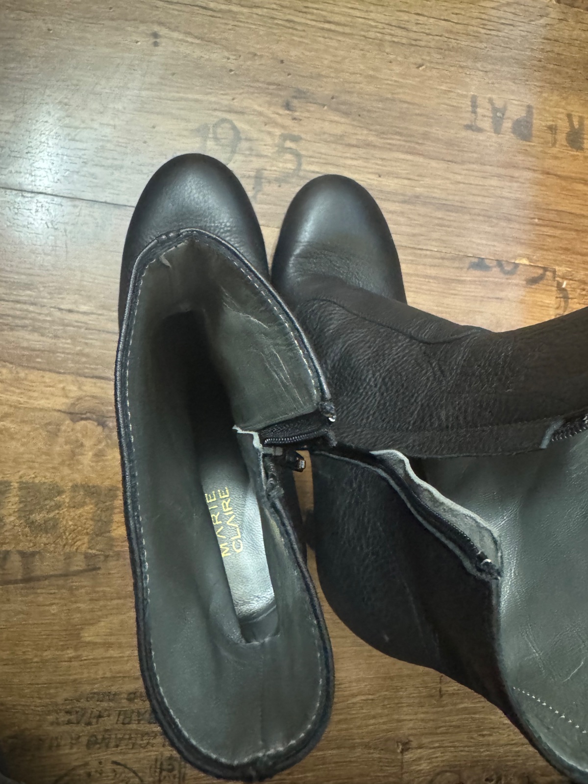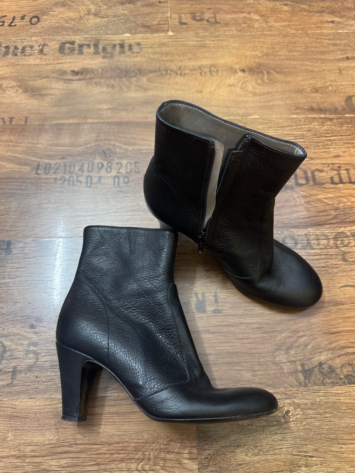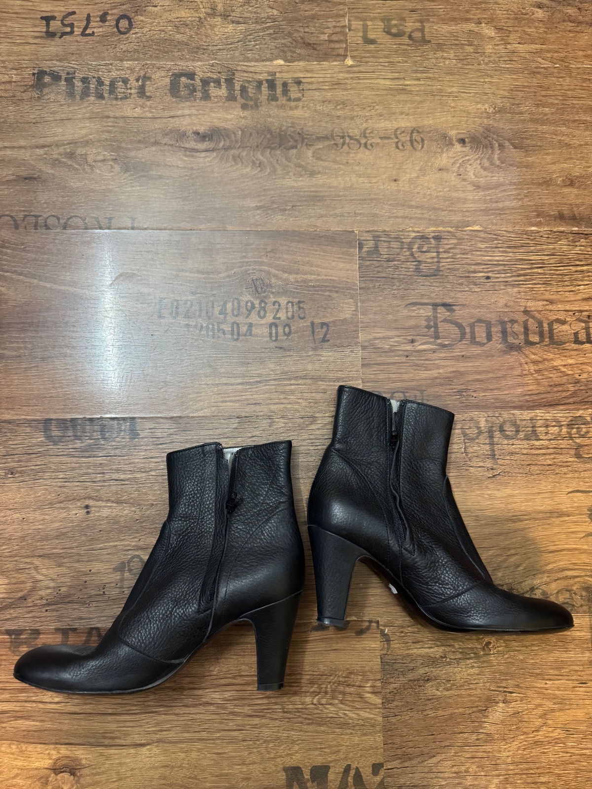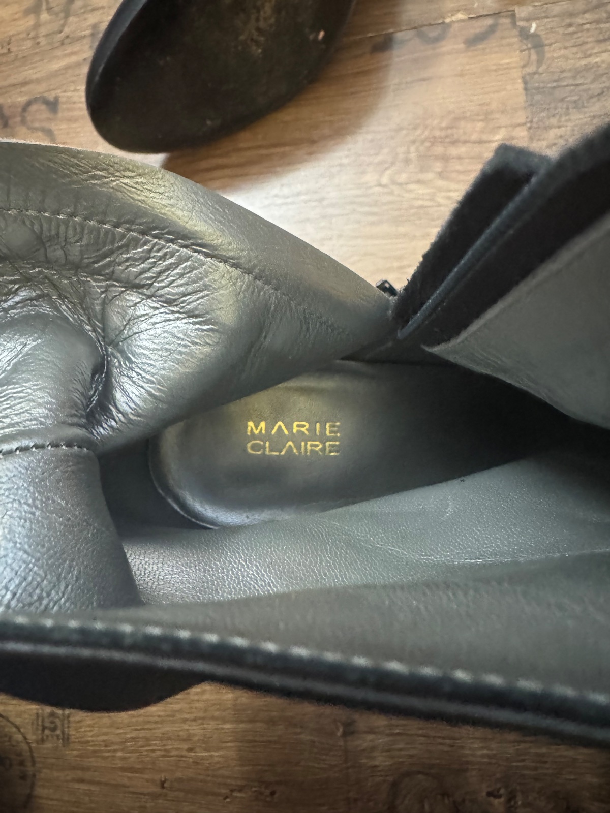 Ponúkam krásne talianske topánočky Marie Claire na podpätku. Čižmicky sú čiernej farby. Sú kožené, na zips pre ľahšie obúvanie. Boli sem-tam nosené ale naďalej vo veľmi peknom stave. Veľkosť je 38. Poštovné podľa taríf.