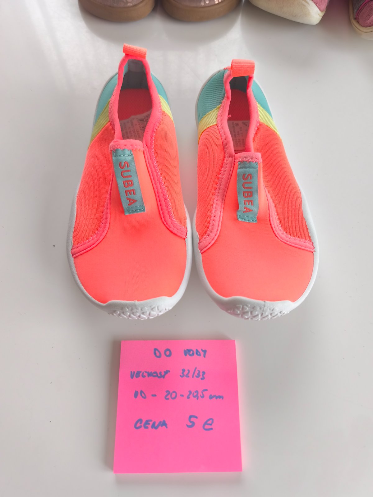 Krásne topánky do vody neonovej oranžovej farby Decathlon veľkosť 32-33, obuté len raz