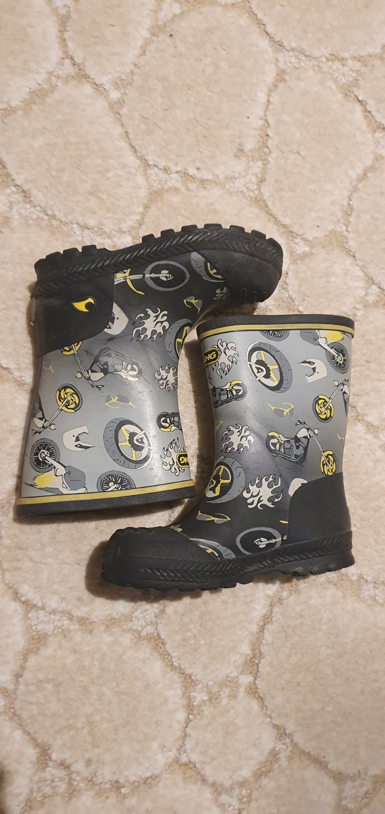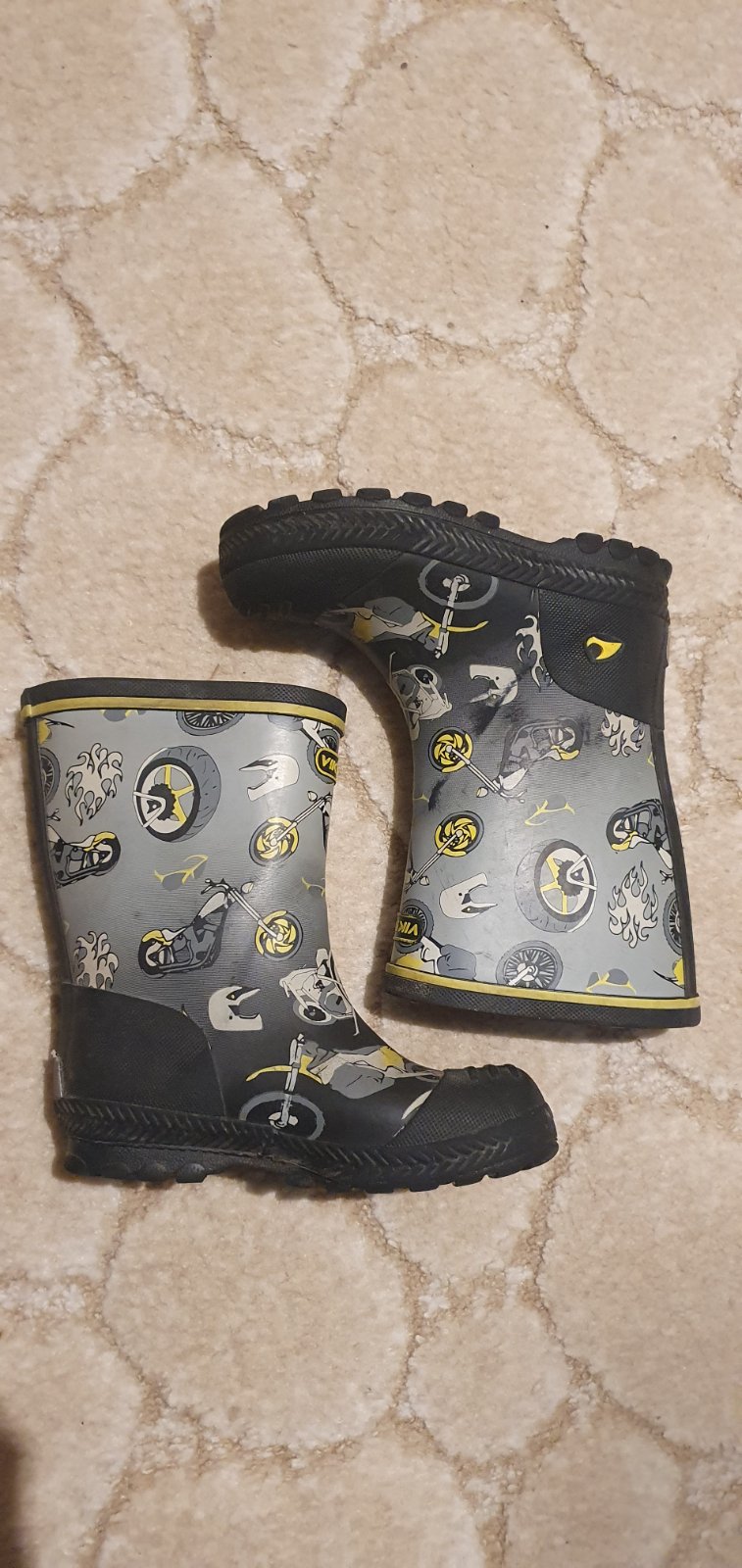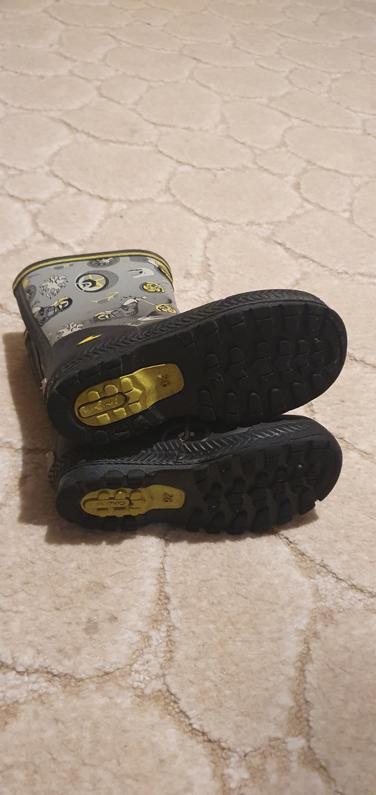 Gumáky v zachovalom stave, so spevnenou špičkou a pätou, netečie do nich. VD 16,5, VŠ 6,5 cm.